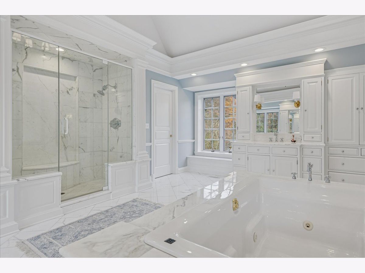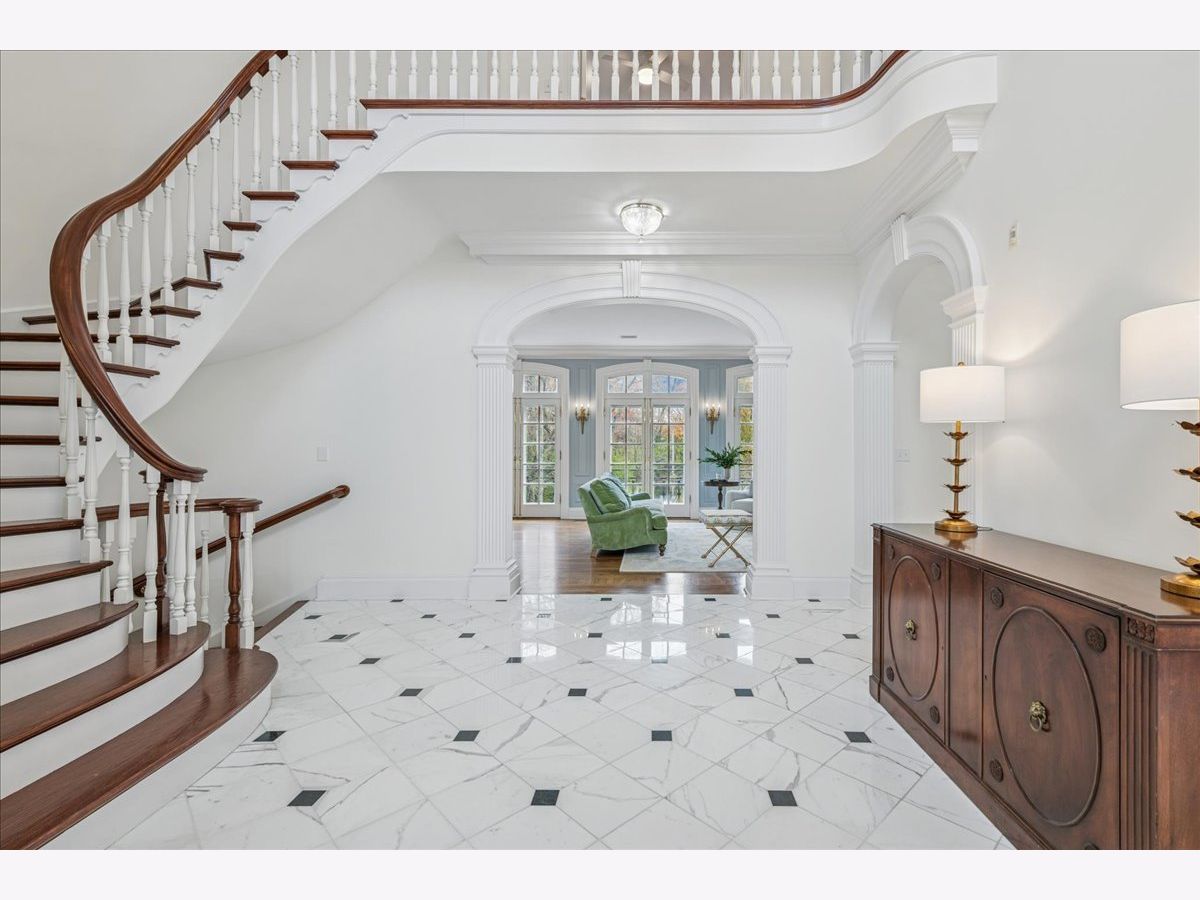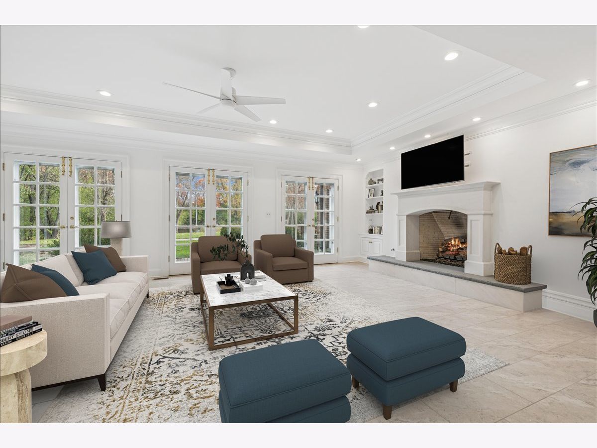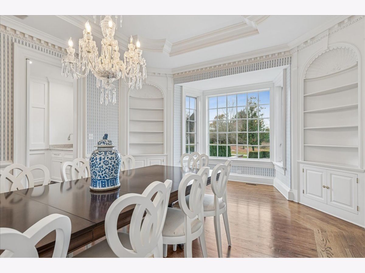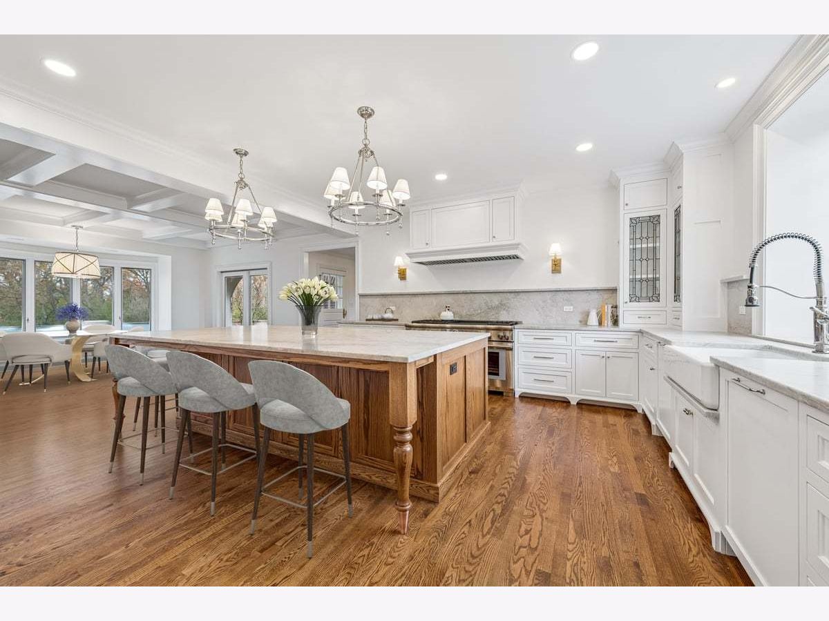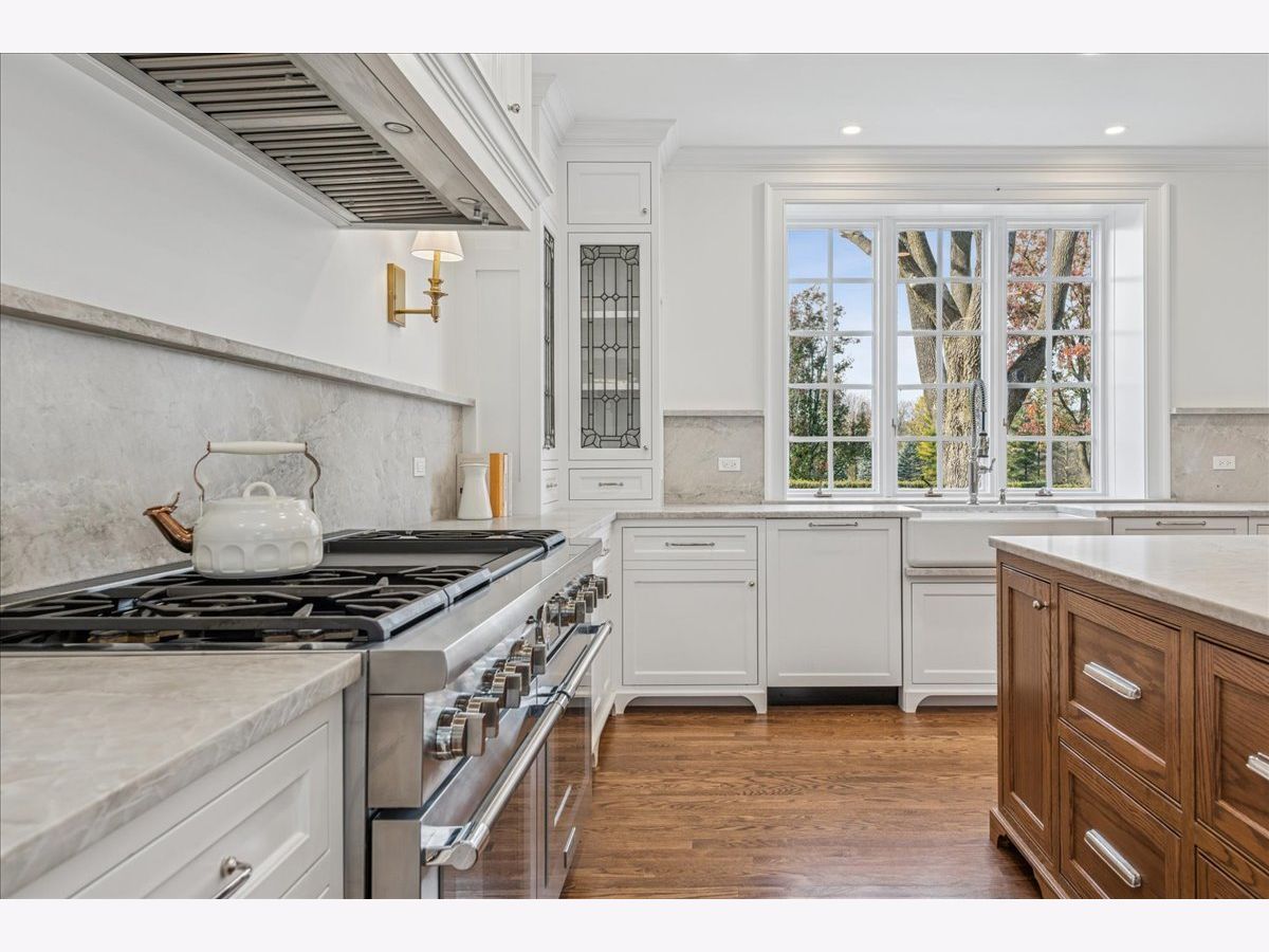 Luxurious, sophisticated, and timeless, this magnificent Barrington Hills estate is perfectly sited on a premier 5-acre waterfront setting-offering sweeping views, extraordinary privacy, and exceptional craftsmanship throughout. Custom millwork, arched passageways, gleaming hardwood floors, and five fireplaces create an atmosphere of warmth and refinement, while the home's flowing, light-filled layout invites effortless indoor/outdoor living. A grand two-story foyer with a curved staircase sets an elegant tone, revealing beautiful sightlines to the rear grounds. Formal living and dining rooms are complemented by a well-appointed butler's pantry with wet bar-ideal for hosting with ease. The striking great room impresses with soaring beamed cathedral ceilings, a dramatic brick fireplace, and an inviting, rustic-chic ambiance perfect for intimate gatherings. The newly renovated chef's kitchen is a true showpiece with custom inset cabinetry, quartzite counters, an oversized island with breakfast bar, high-end Thermador appliances, and a walk-in pantry. The adjoining breakfast room, wrapped in windows and featuring a charming bay window seat, frames picturesque views. Step directly outside to the bluestone patio and covered grilling station for seamless al fresco dining. A richly appointed main-floor library with cherry built-ins offers a quiet retreat or refined work-from-home space, conveniently located near a full bath. A spacious laundry room, mudroom with service entrance, rear staircase, and powder room complete the main level. Upstairs, the craftsmanship continues with a luxurious primary suite featuring a cozy fireplace, spa-like bath with whirlpool tub, glass door shower, and dual walk-in closets. Three generously sized secondary bedrooms-one ensuite and two sharing a Jack-and-Jill bath-along with a nursery or second office provide exceptional flexibility. A private guest wing enhances the home's versatility with its own living room, full kitchen, and ensuite bedroom, making it ideal for in-laws, long-term guests, or nanny. The expansive walkout lower level delivers even more living and entertaining space with a large recreation area, second kitchen, dining space, and direct access to the bluestone patio. A dedicated media/theater room, game or fitness room, wine cellar, half bath, and ensuite bedroom round out this impressive level. A heated 4-car garage with epoxy flooring, plus a large carport, accommodates guests and gatherings with ease. Multiple terraces, blue stone patios and pathways invite you to savor tranquil views of the pond and natural surroundings in every season. Meticulously maintained and thoughtfully updated, this remarkable estate offers a rare blend of beauty, privacy, and convenience-just minutes to town, train, riding trails, shopping, dining, and award-winning District 220 schools.