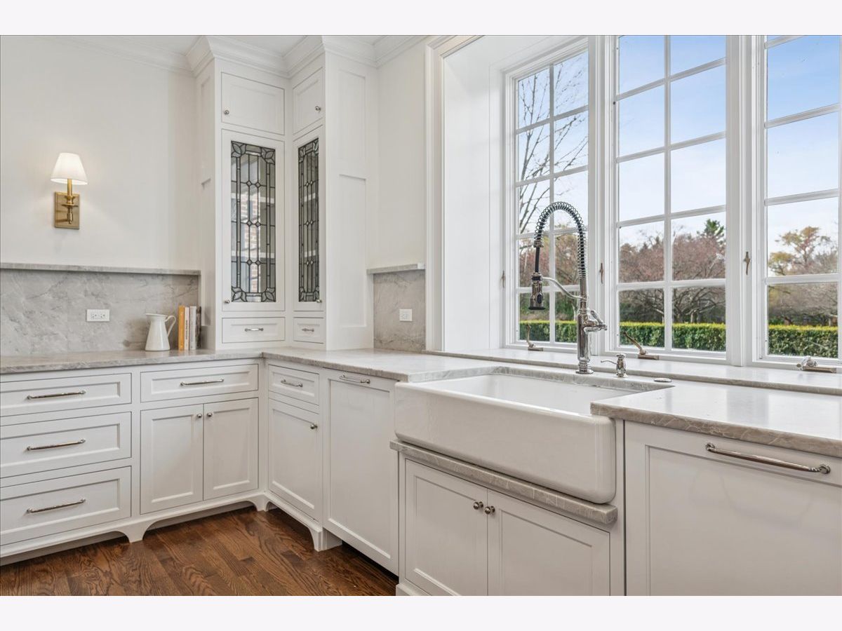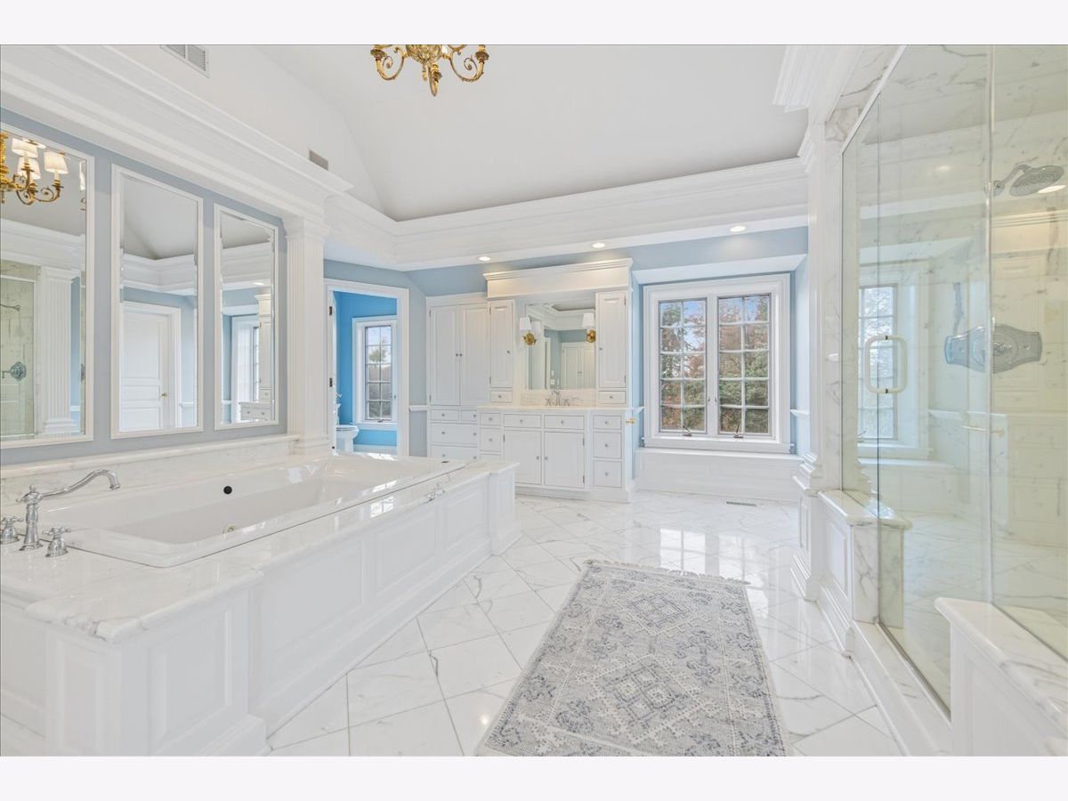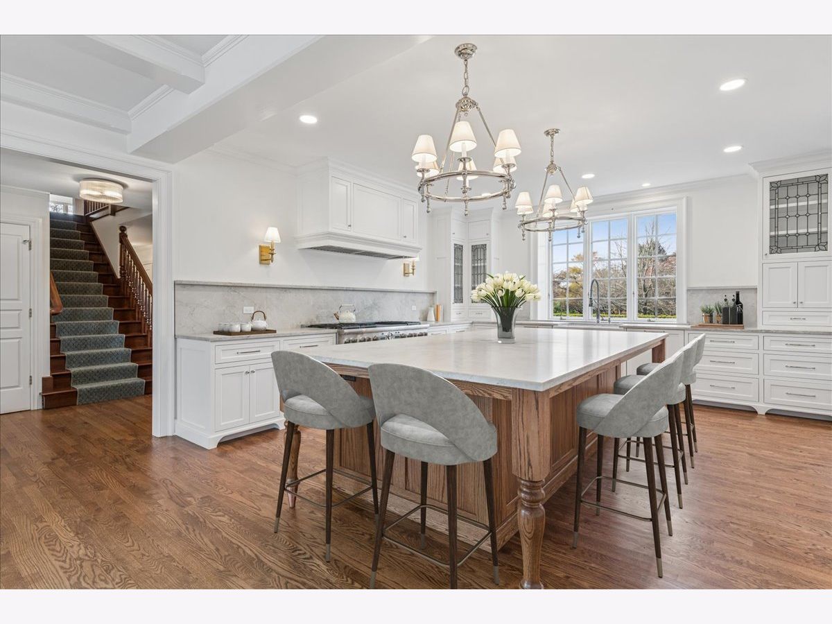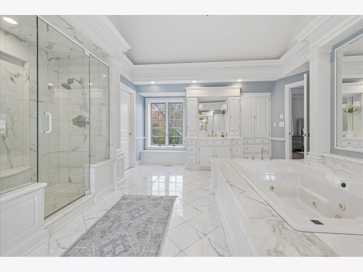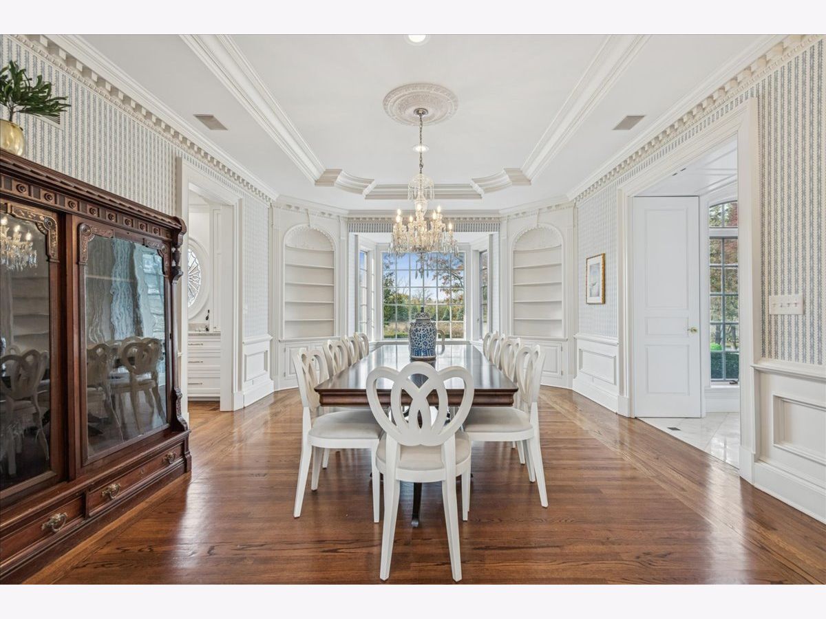 Luxurious, sophisticated, and timeless, this magnificent Barrington Hills estate is perfectly sited on a premier 5-acre waterfront setting-offering sweeping views, extraordinary privacy, and exceptional craftsmanship throughout. Custom millwork, arched passageways, gleaming hardwood floors, and five fireplaces create an atmosphere of warmth and refinement, while the home's flowing, light-filled layout invites effortless indoor/outdoor living. A grand two-story foyer with a curved staircase sets an elegant tone, revealing beautiful sightlines to the rear grounds. Formal living and dining rooms are complemented by a well-appointed butler's pantry with wet bar-ideal for hosting with ease. The striking great room impresses with soaring beamed cathedral ceilings, a dramatic brick fireplace, and an inviting, rustic-chic ambiance perfect for intimate gatherings. The newly renovated chef's kitchen is a true showpiece with custom inset cabinetry, quartzite counters, an oversized island with breakfast bar, high-end Thermador appliances, and a walk-in pantry. The adjoining breakfast room, wrapped in windows and featuring a charming bay window seat, frames picturesque views. Step directly outside to the bluestone patio and covered grilling station for seamless al fresco dining. A richly appointed main-floor library with cherry built-ins offers a quiet retreat or refined work-from-home space, conveniently located near a full bath. A spacious laundry room, mudroom with service entrance, rear staircase, and powder room complete the main level. Upstairs, the craftsmanship continues with a luxurious primary suite featuring a cozy fireplace, spa-like bath with whirlpool tub, glass door shower, and dual walk-in closets. Three generously sized secondary bedrooms-one ensuite and two sharing a Jack-and-Jill bath-along with a nursery or second office provide exceptional flexibility. A private guest wing enhances the home's versatility with its own living room, full kitchen, and ensuite bedroom, making it ideal for in-laws, long-term guests, or nanny. The expansive walkout lower level delivers even more living and entertaining space with a large recreation area, second kitchen, dining space, and direct access to the bluestone patio. A dedicated media/theater room, game or fitness room, wine cellar, half bath, and ensuite bedroom round out this impressive level. A heated 4-car garage with epoxy flooring, plus a large carport, accommodates guests and gatherings with ease. Multiple terraces, blue stone patios and pathways invite you to savor tranquil views of the pond and natural surroundings in every season. Meticulously maintained and thoughtfully updated, this remarkable estate offers a rare blend of beauty, privacy, and convenience-just minutes to town, train, riding trails, shopping, dining, and award-winning District 220 schools.
