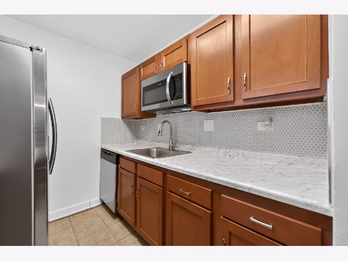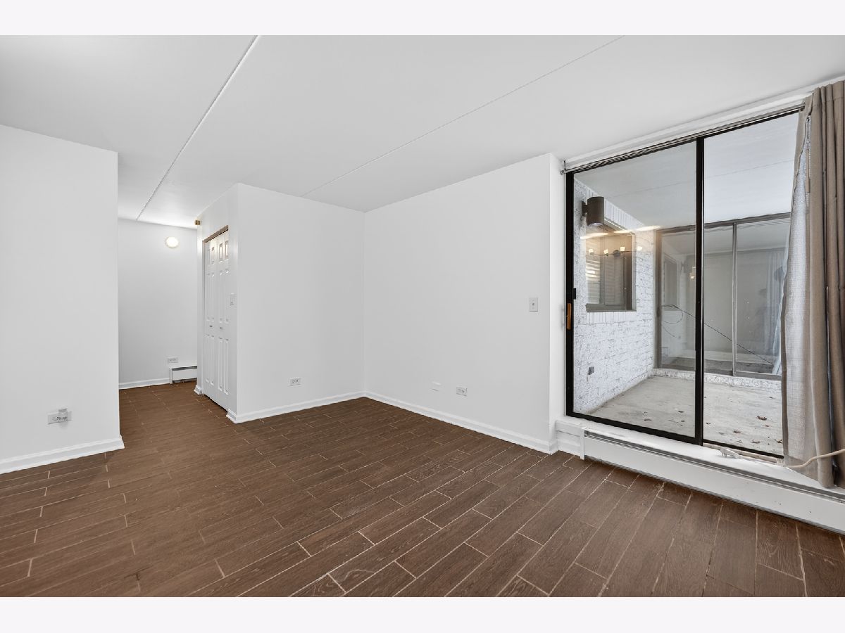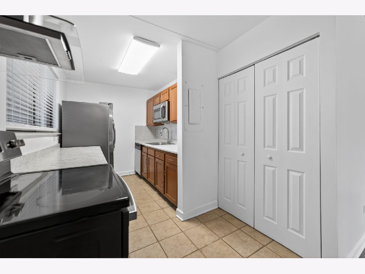 Prime Location and Move In Ready! Enjoy the convenience of being just steps from the Metra, restaurants, and shopping. This spacious first floor condo features porcelain tile flooring throughout and an updated kitchen complete with modern cabinetry, stainless steel refrigerator, dishwasher, and newer countertops. Relax on your private patio with access from both the living room and bedroom, perfect for morning coffee or evening unwinding. The generously sized bedroom offers abundant closet space, and the bathroom has been updated with new wall tile. Additional highlights include two newer AC units, electric heating, laundry facilities in the building, and two parking spaces. The HOA permits rentals, making this a great opportunity for both homeowners and investors. Quick close possible!