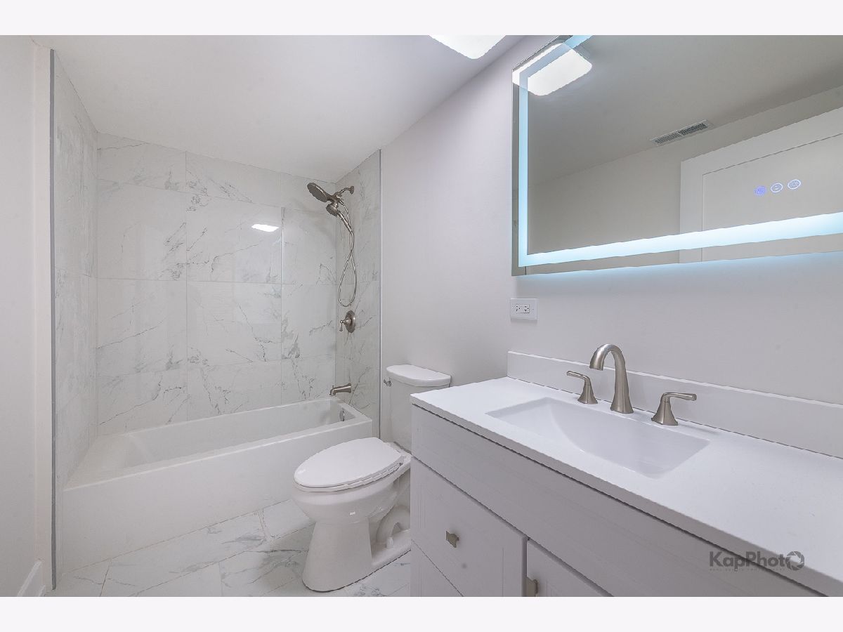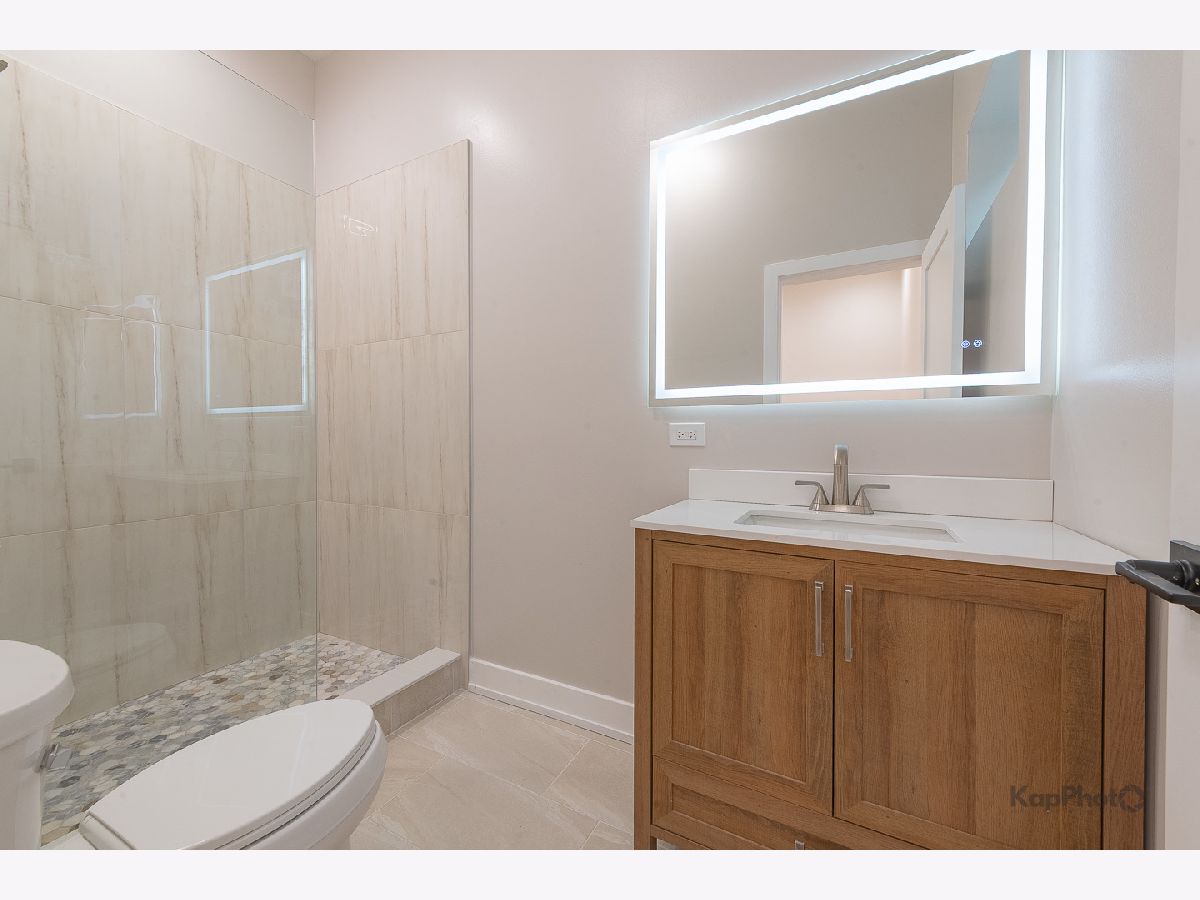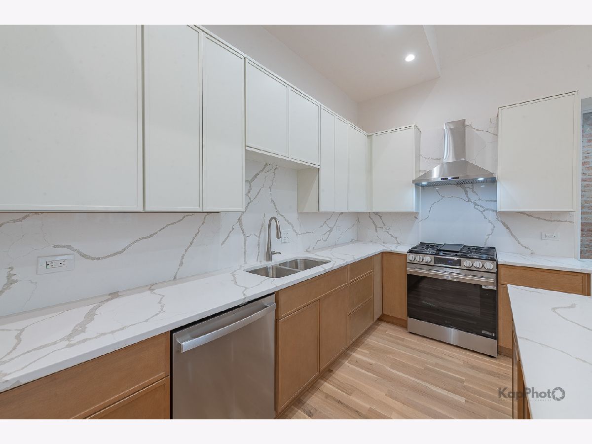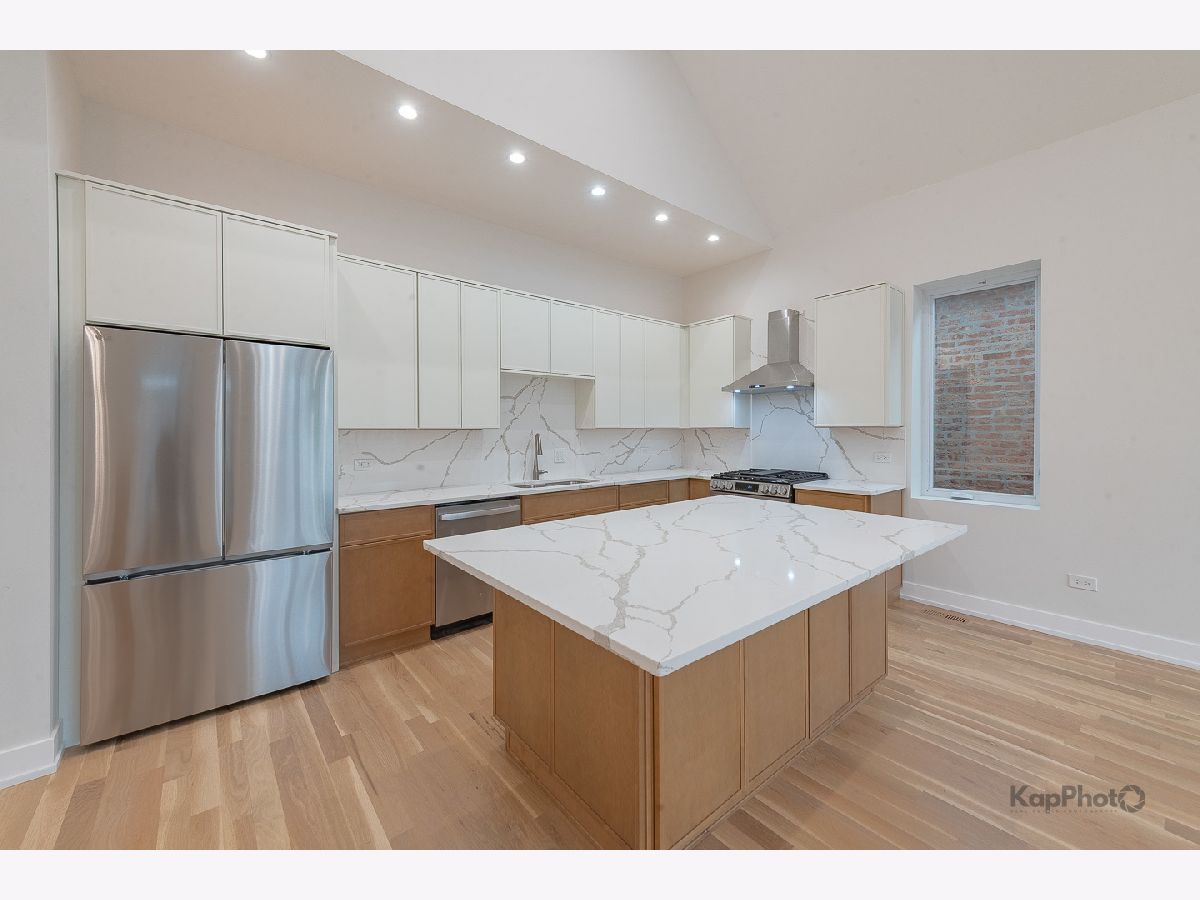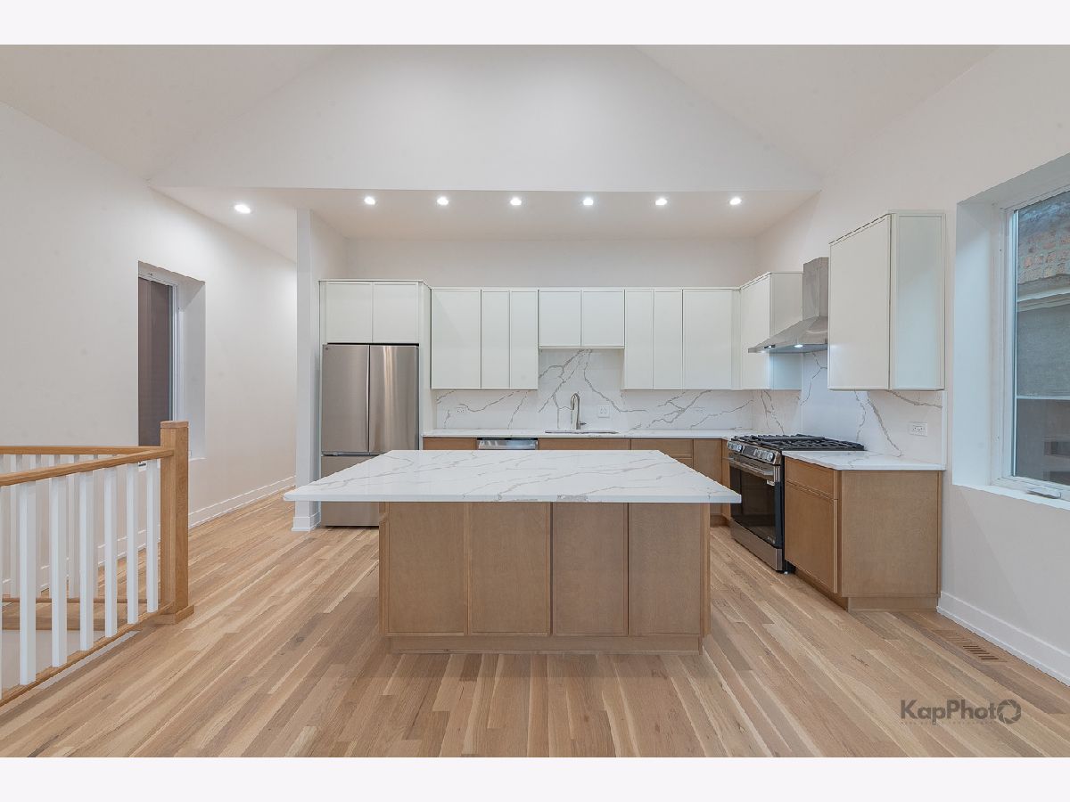 The transformation is now complete! This fully renovated and thoughtfully designed 4 bed / 2.5 bath single-family home offers exceptional curb appeal with a stately facade that sets the stage for the sophistication within. A gracious foyer welcomes you into a dramatic great room boasting 14-foot ceilings and 3.25" white oak hardwood floors, creating an immediate and lasting impression. The ideal floor plan features two bedrooms on the main level and two on the lower level, perfectly balancing function and flexibility. The chef's kitchen showcases two-tone cabinetry, a large center island, LG/GE Profile stainless steel appliances, and sleek calacatta Quartz countertops. A hallway leads to the primary suite, an additional bedroom, a powder room, and access to a spacious rear deck and backyard with fresh sod-ideal for outdoor dining or relaxation. The primary suite offers ample closet space and a luxurious bath with a walk-in shower, Kohler fixtures, glass shower panel, and designer porcelain tile. The expansive lower level is perfect for entertaining or unwinding, complete with a large family room, recessed lighting, storage, and more. This level also includes two additional bedrooms, a full bath, a laundry area, and a mechanical room. This home isn't just stunning, it has great bones with features that include a brand new 2-car garage, drain tile with waterproof membrane, new concrete slab, tankless water heater, new 200 amp electrical service, new plumbing systems, spray foam insulation, new windows by Lang, new furnace, 2-ton condenser, new gas service and meter, 5.25" baseboards, custom lighting throughout, new fencing, and so much more. Perfectly located in the heart of Bridgeport, just steps Joseph T. McKeon Jr. Park, Guaranteed Rate Field, local shops, restaurants, and so much more. This home truly combines modern luxury with neighborhood charm.