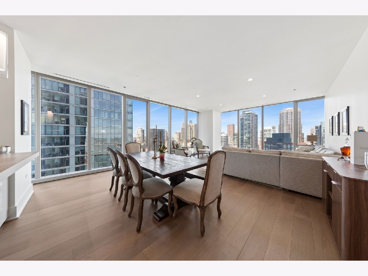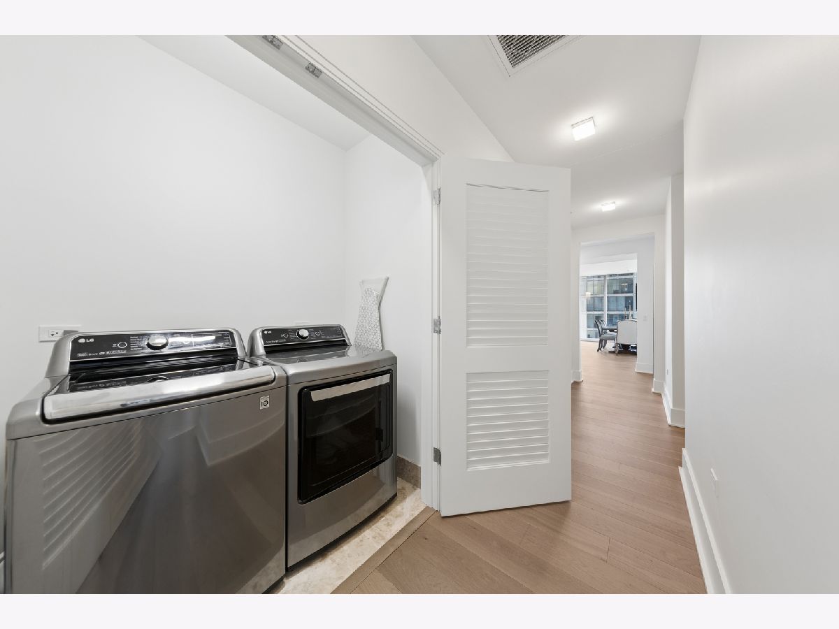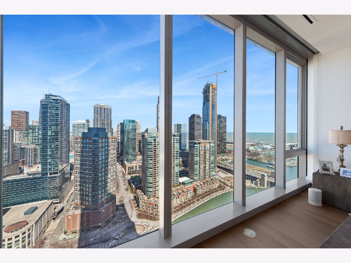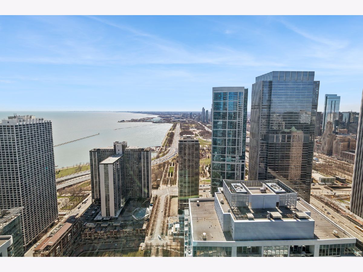 Lakeshore East's highest standard of living offered at the St. Regis with all of the hotel amenities and two award winner and exclusively rated restaurants, Tre Dita and Miru within the building. This tower offers floor to ceiling glass curtain walls recessed terraces and stunning, unobstructed views of Lake Michigan, Navy Pier glorious fireworks shows, and the north end's city scape, Chicago River east and west, water cannon and fountain, iconic and some of the most significant buildings of the skyline including the Chicago Tribune Tower, Wrigley Building the "Bean". True 10' ceilings. This s northwest corner, Residence 2802 features contemporary interior design execution including wide plank 6" hardwood floors, Shaidero cabinetry throughout, Gaggenau five-burner, high output cooktop with vented culinary hood, peninsula with waterfall edge, under mount sink, disposal, breakfast bar, large storage pantry cabinetry, Thermador fridge with water dispenser, Gaggenau double ovens, overhead flip cabinets, open shelving. Floor to ceiling, uninterrupted glass curtain walls, formal entry with contemporary frayed ceilings, all built-out closets, Classic Contemporary panel doors, layered moldings with satin steel door hardware. Guest Bathroom dressed dressed in floor to ceiling stone, FRanless glass, large shower. Custom wood vanity, mitered edge, stone counter, Kohler, Toto plumbing fixtures, wall hung mirror. Laundry room with side by side LG washer and dryer and additional storage. Primary suite offers two fully built out all in closets, sumptuous spa-like bathroom with dual vanity, make up stain in the middle with seating space, but in, recessed medicine cabinets with built in lighting, mitered edge 3" counter, separate shower with rain feature, infinity drain, floor to ceiling large format marble, separate soaking tub. Enjoy all of the amenities of the 5 Star St. Regis including its room service, renown restaurants. Building offers 24 hour doorstaff, onsite management, maintenance, engineer, scheduled valet parking for your ease, two pools, complete gym, common entertainment rooms, sun terrace. Valet garage parking additional $55,000. Please inquire with lister about lease in place to learn specifics and options/alternitives.
