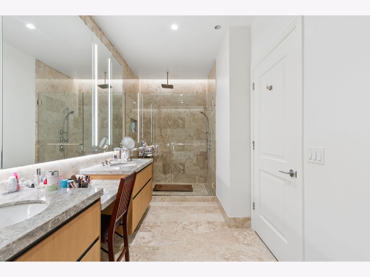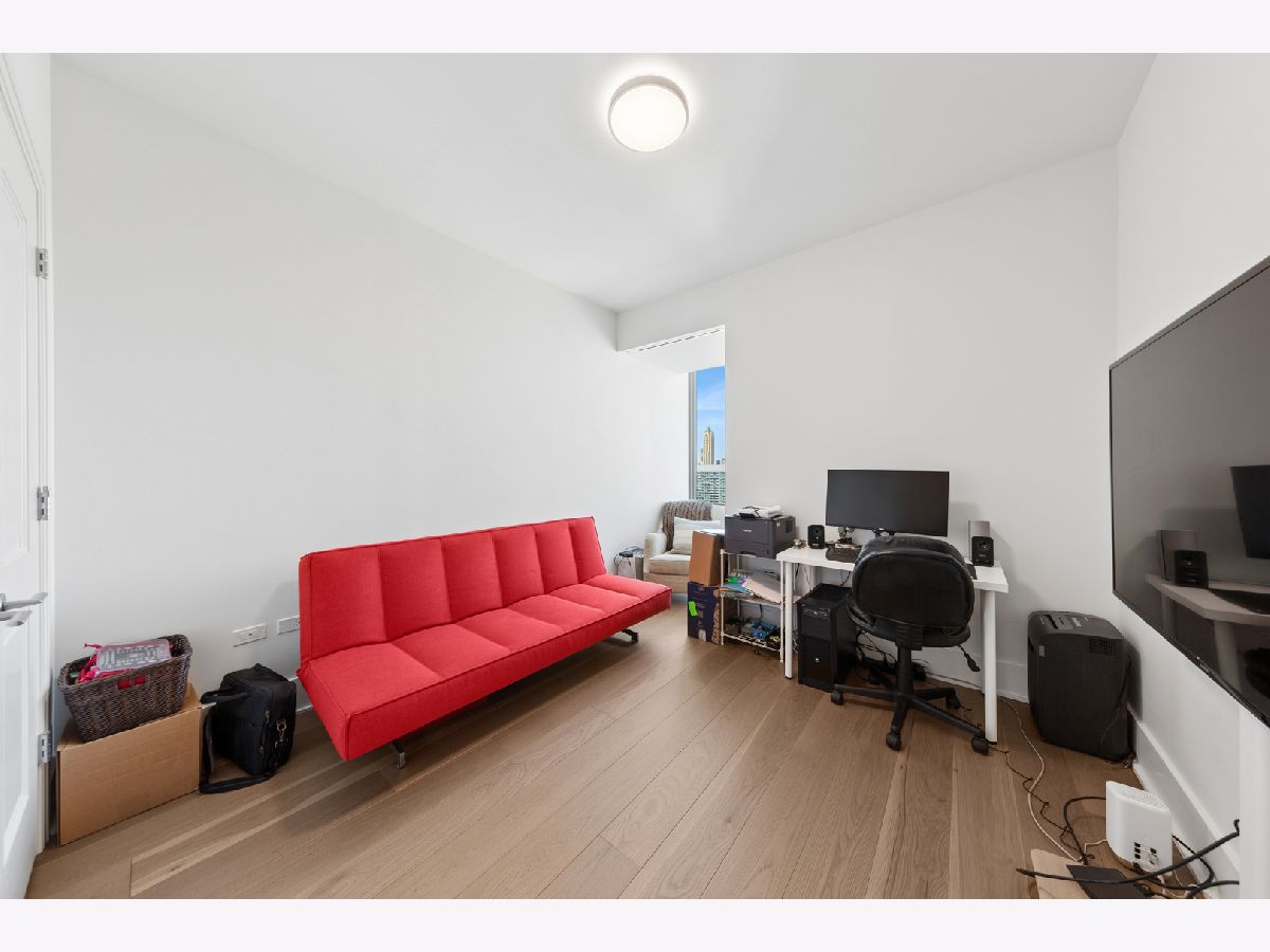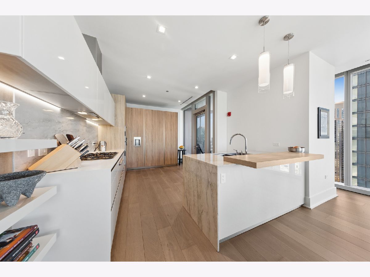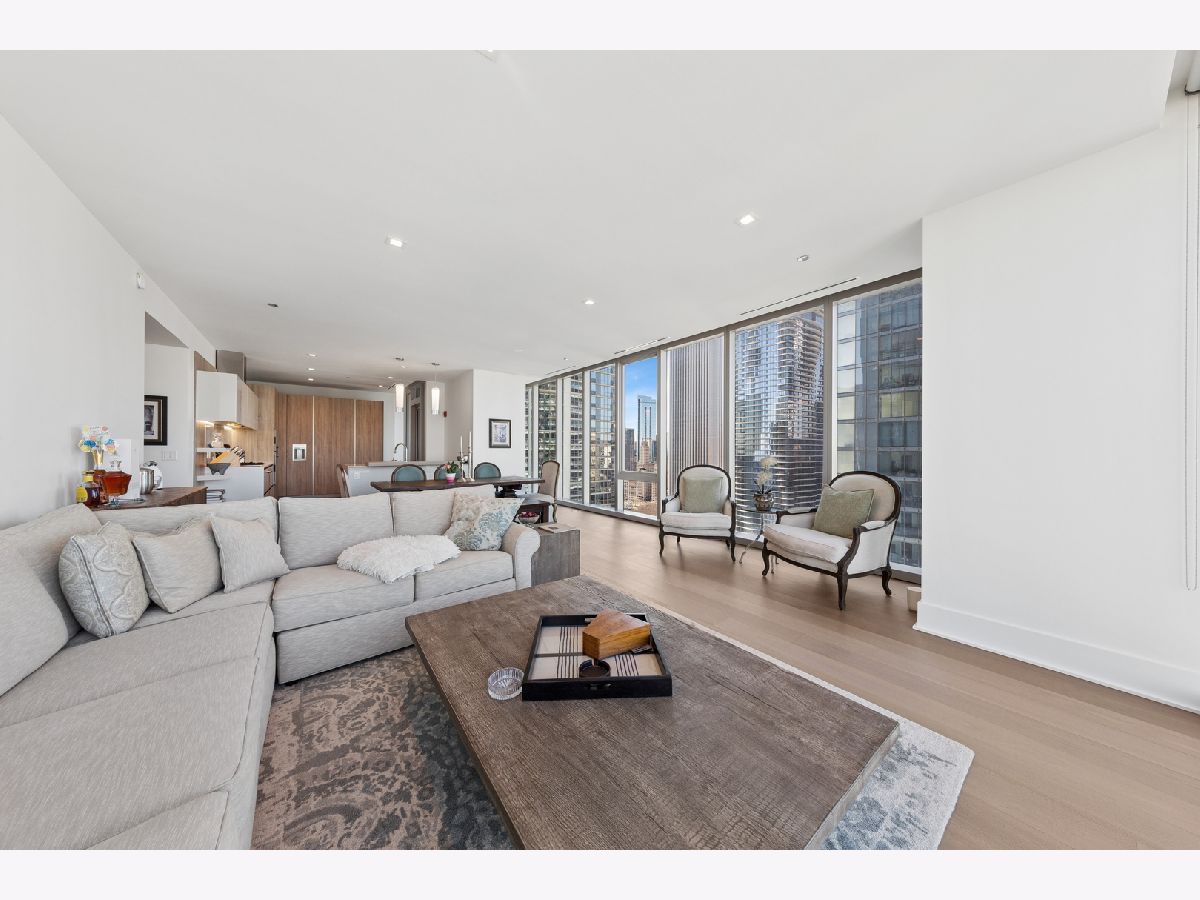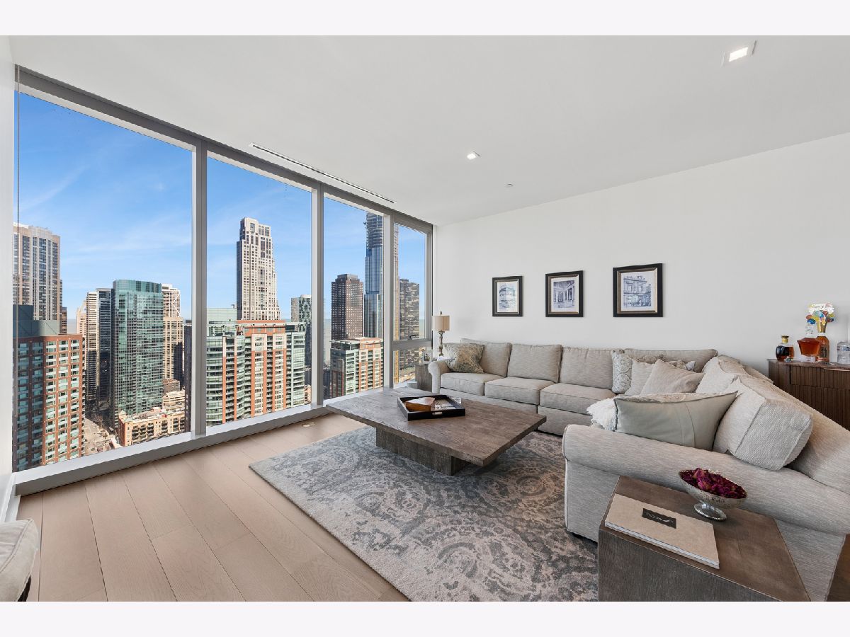 Lakeshore East's highest standard of living offered at the St. Regis with all of the hotel amenities and two award winner and exclusively rated restaurants, Tre Dita and Miru within the building. This tower offers floor to ceiling glass curtain walls recessed terraces and stunning, unobstructed views of Lake Michigan, Navy Pier glorious fireworks shows, and the north end's city scape, Chicago River east and west, water cannon and fountain, iconic and some of the most significant buildings of the skyline including the Chicago Tribune Tower, Wrigley Building the "Bean". True 10' ceilings. This s northwest corner, Residence 2802 features contemporary interior design execution including wide plank 6" hardwood floors, Shaidero cabinetry throughout, Gaggenau five-burner, high output cooktop with vented culinary hood, peninsula with waterfall edge, under mount sink, disposal, breakfast bar, large storage pantry cabinetry, Thermador fridge with water dispenser, Gaggenau double ovens, overhead flip cabinets, open shelving. Floor to ceiling, uninterrupted glass curtain walls, formal entry with contemporary frayed ceilings, all built-out closets, Classic Contemporary panel doors, layered moldings with satin steel door hardware. Guest Bathroom dressed dressed in floor to ceiling stone, FRanless glass, large shower. Custom wood vanity, mitered edge, stone counter, Kohler, Toto plumbing fixtures, wall hung mirror. Laundry room with side by side LG washer and dryer and additional storage. Primary suite offers two fully built out all in closets, sumptuous spa-like bathroom with dual vanity, make up stain in the middle with seating space, but in, recessed medicine cabinets with built in lighting, mitered edge 3" counter, separate shower with rain feature, infinity drain, floor to ceiling large format marble, separate soaking tub. Enjoy all of the amenities of the 5 Star St. Regis including its room service, renown restaurants. Building offers 24 hour doorstaff, onsite management, maintenance, engineer, scheduled valet parking for your ease, two pools, complete gym, common entertainment rooms, sun terrace. Valet garage parking additional $55,000. Please inquire with lister about lease in place to learn specifics and options/alternitives.