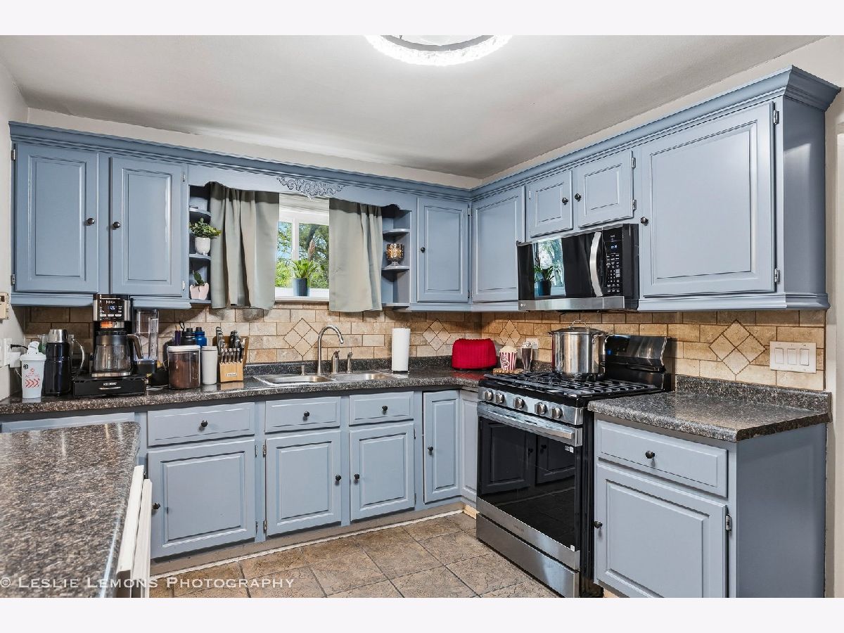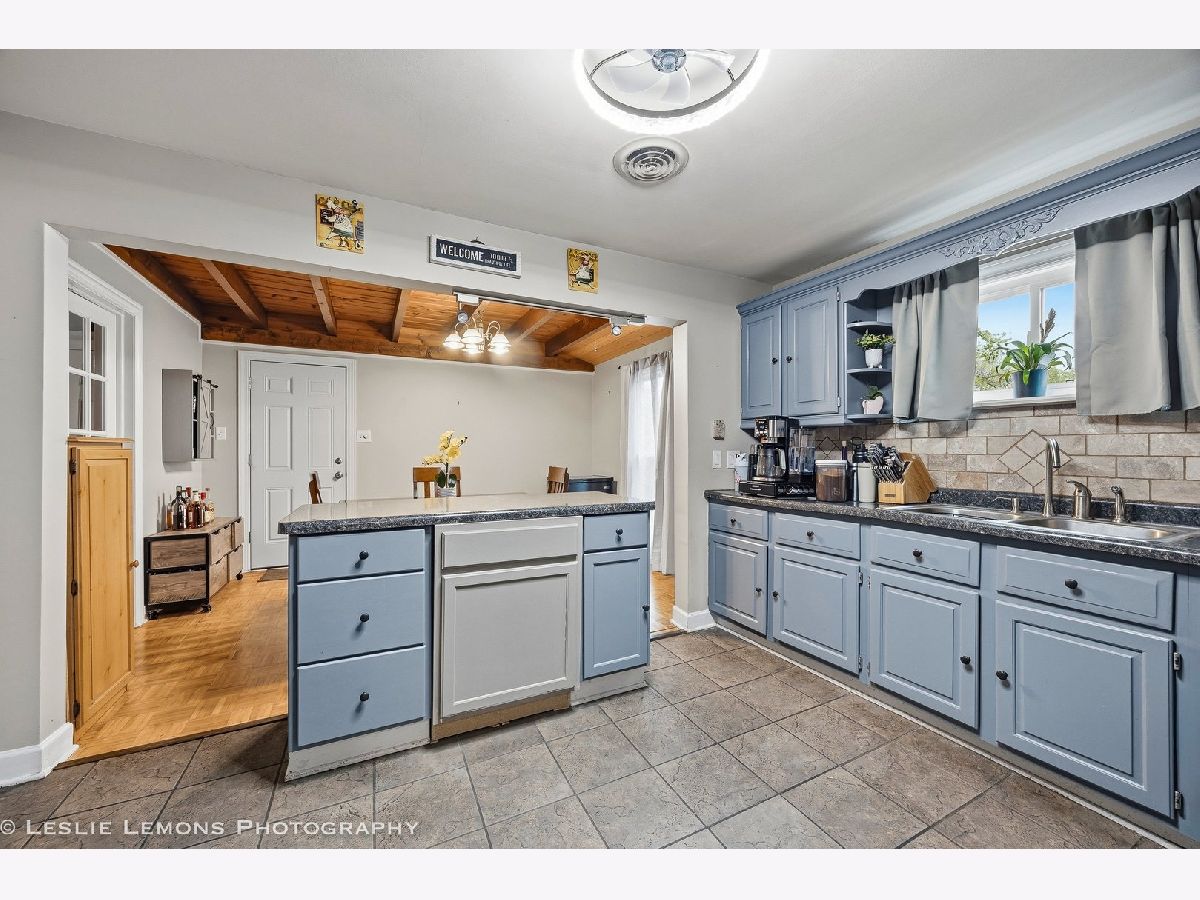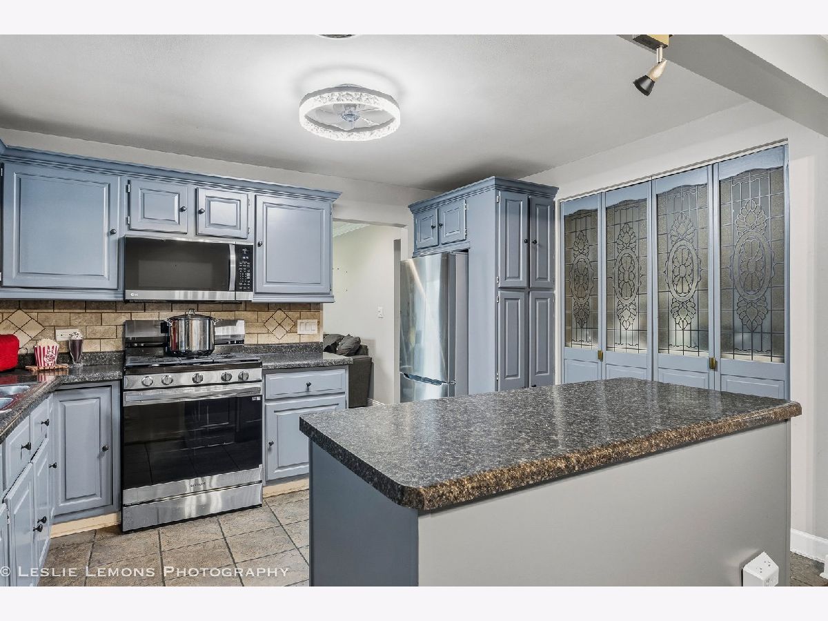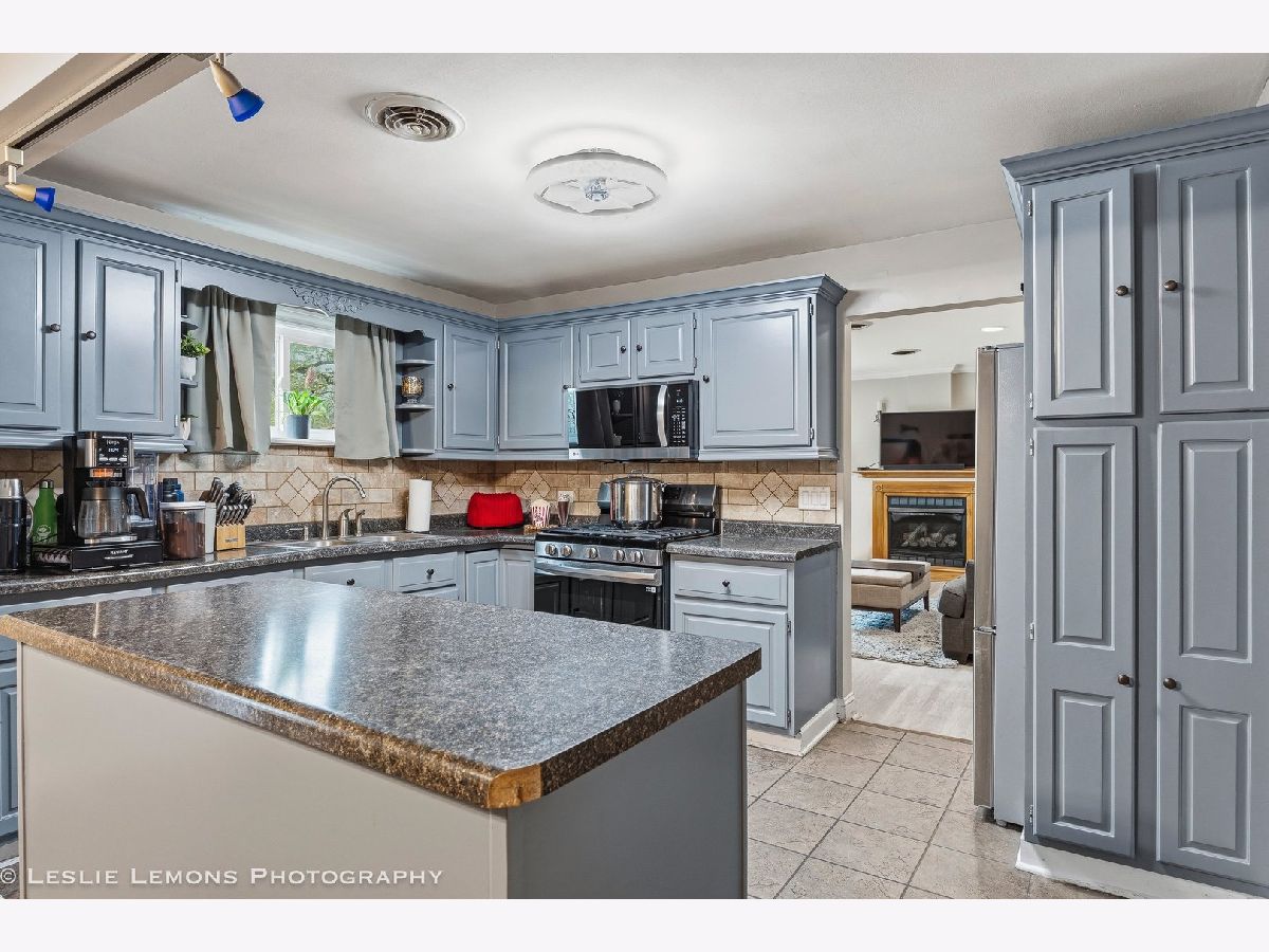 Welcome to this charming and well-maintained home in Wood Dale! The spacious kitchen offers abundant counter space, a convenient island for extra storage, newer appliances, and a generous dining area-ideal for everyday living and entertaining. The inviting living room features a cozy fireplace and recessed lighting, creating a warm and comfortable atmosphere. Step outside to enjoy the expansive fenced backyard, complete with a large deck for gatherings and a shed for additional storage. Enjoy easy access to Wood Dale Grove Forest Preserve with its stocked fishing lake, as well as nearby Oak Meadows Golf Course. Metra station, expressways and shopping are only minutes away, making commuting and errands a breeze. Recent updates include newer attic insulation, roof, gutters, and downspouts (2019), new siding, soffit and fascia (2021), and a hot water heater (2021).