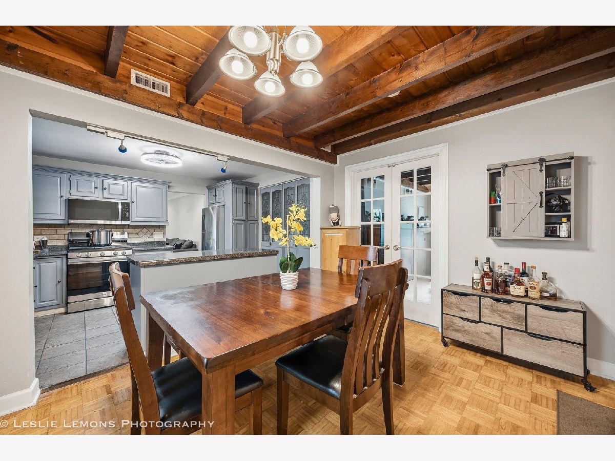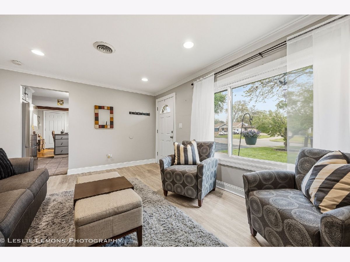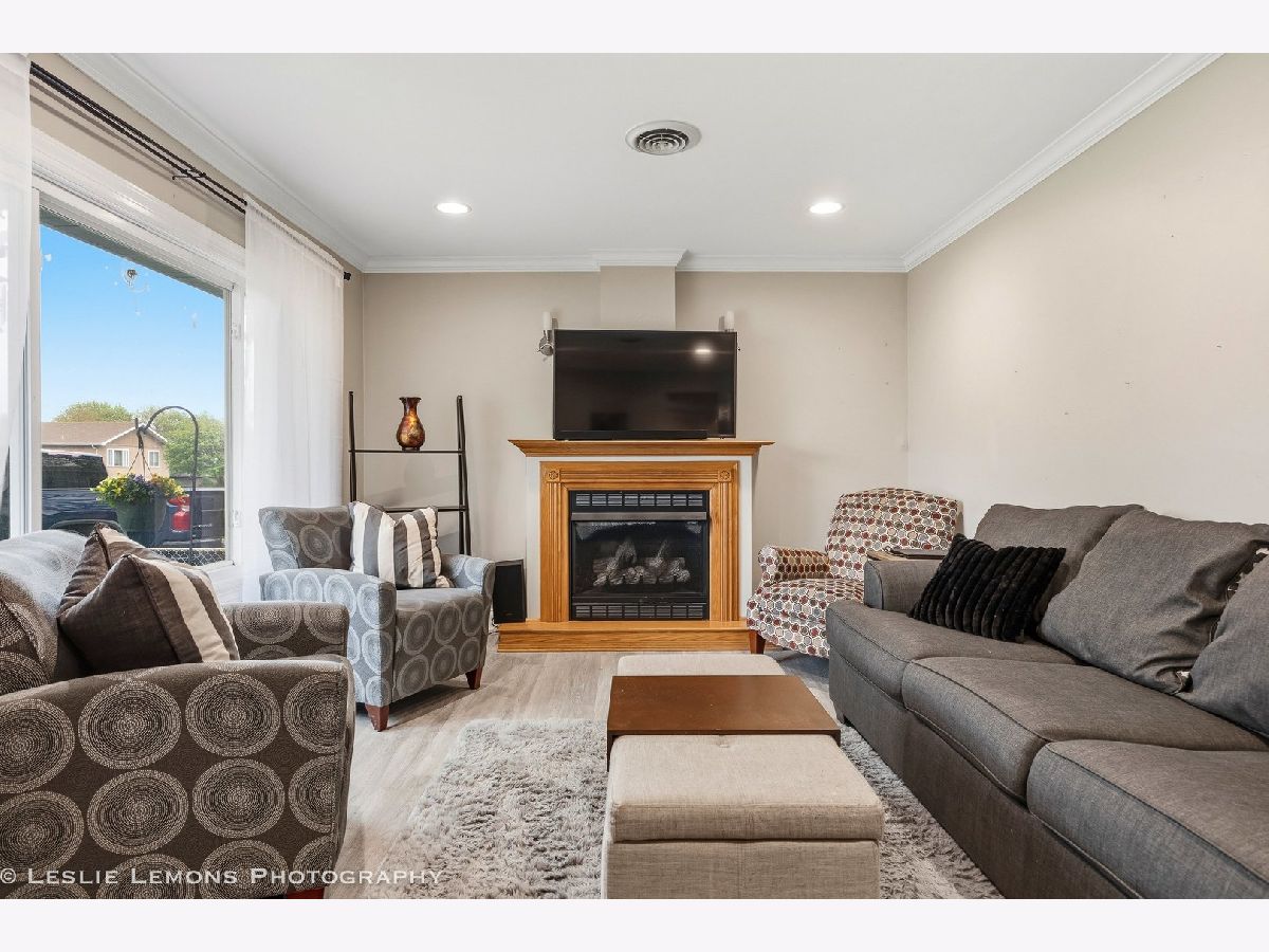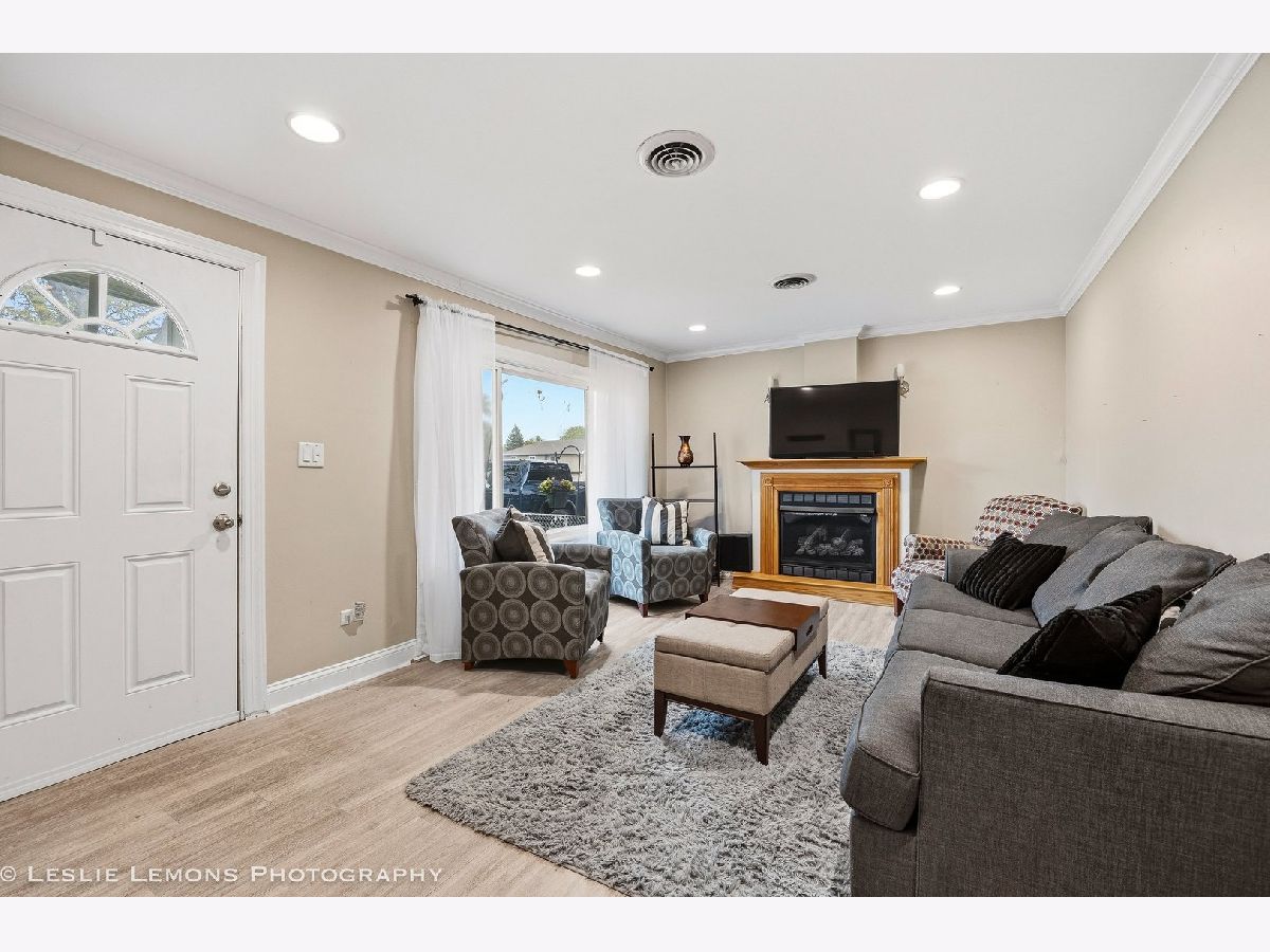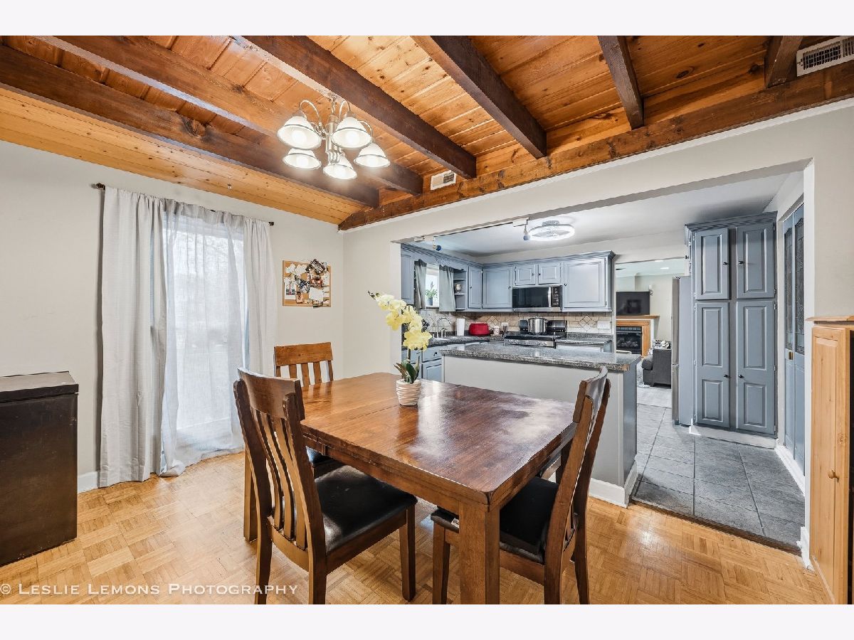 Welcome to this charming and well-maintained home in Wood Dale! The spacious kitchen offers abundant counter space, a convenient island for extra storage, newer appliances, and a generous dining area-ideal for everyday living and entertaining. The inviting living room features a cozy fireplace and recessed lighting, creating a warm and comfortable atmosphere. Step outside to enjoy the expansive fenced backyard, complete with a large deck for gatherings and a shed for additional storage. Enjoy easy access to Wood Dale Grove Forest Preserve with its stocked fishing lake, as well as nearby Oak Meadows Golf Course. Metra station, expressways and shopping are only minutes away, making commuting and errands a breeze. Recent updates include newer attic insulation, roof, gutters, and downspouts (2019), new siding, soffit and fascia (2021), and a hot water heater (2021).