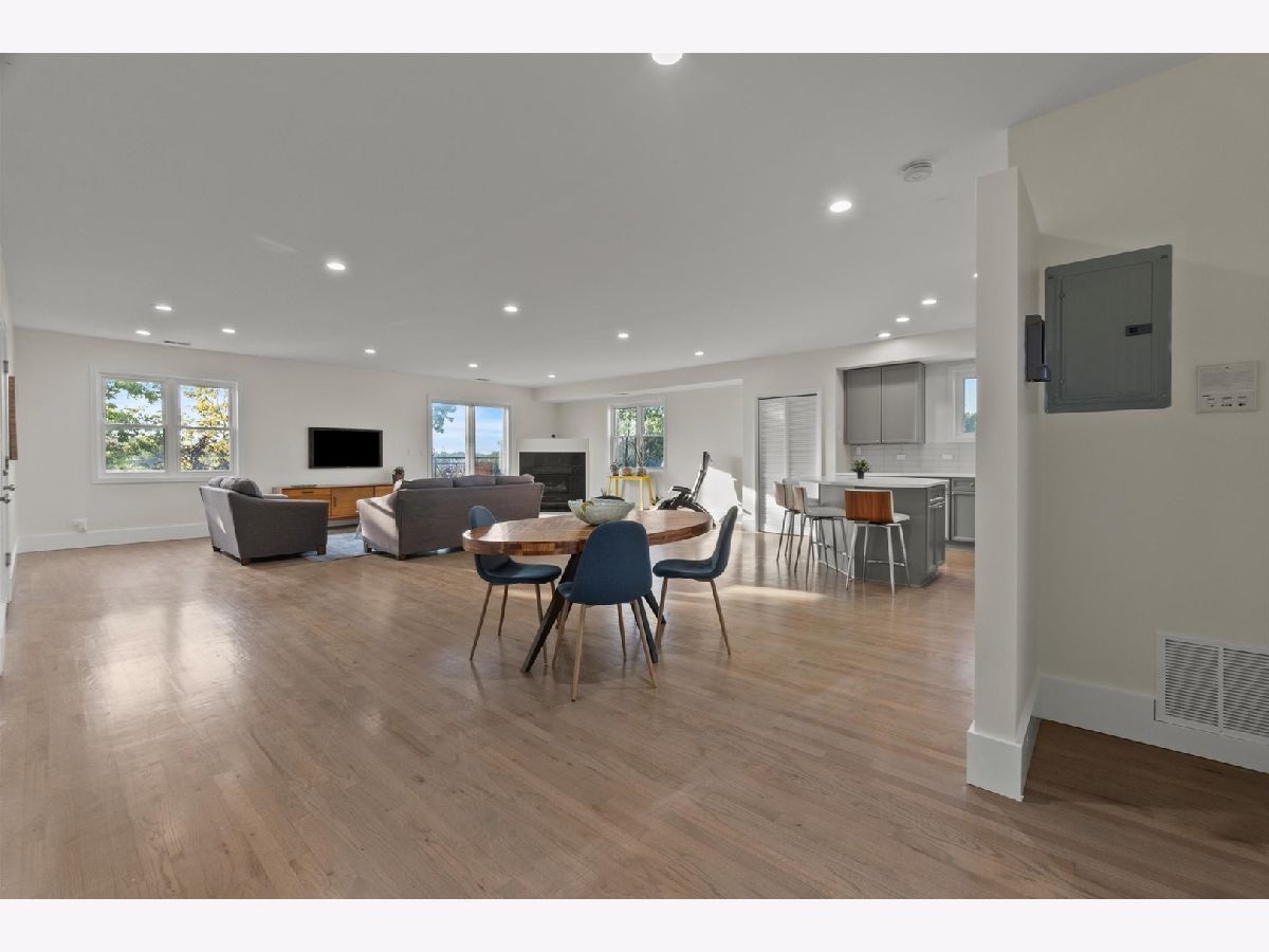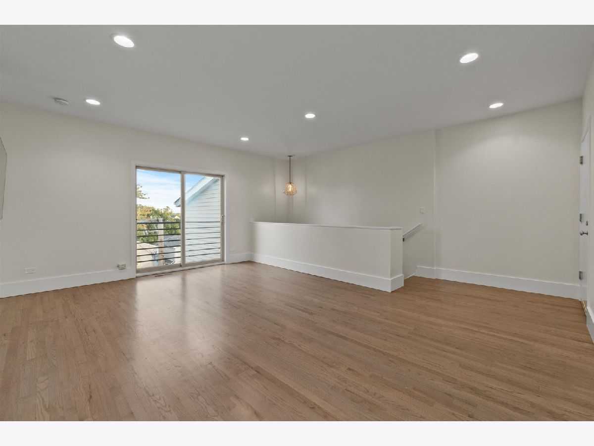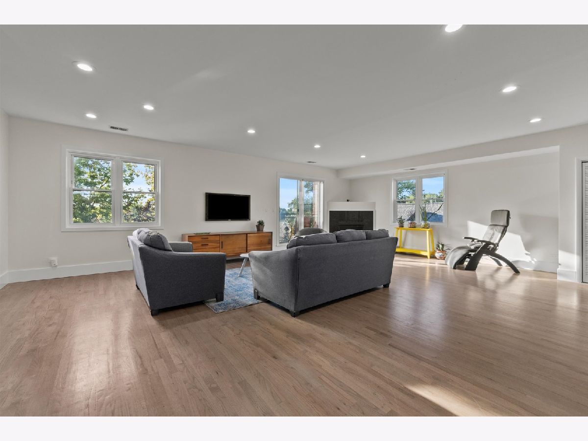 Welcome to this perfectly located condo in Irving Park! The super bright duplex offers over 2000 square feet of living! The unit has hardwood floors throughout and offers 3 bedrooms, 2.5 bathrooms plus a large family room! The main level is one large great room featuring your kitchen, living and dining areas as well as two separate balconies plus a half bath. Enjoy the outdoors or the quiet indoors with the unit's triple pane glass! Refreshed kitchen has 42" cabinetry, new quartz counters, a huge island, stainless steel appliances and is such a wonderful entertaining area! The living area has a gas fireplace for those chilly nights. Upstairs, you'll find all 3 bedrooms on the same level. A flexible lofted space can be used as home office, family room or workout area. The true en suite offers a custom walk in shower. There are 2 garage spaces included, as well as one exterior parking space. The fenced-in common grounds are wooded and include tons of space to roam around Newer 1,000 sq ft common Trex deck spans length of the entire building. Easy access to I 90/94Walk to the CTA/ Blue Line, Metra, LA Fitness, Jewel, Disney School, Independence Park, Murphy School, Athletic Field Park with playground, field house, tennis, basketball courts and close to Independence Park. Come see this before it is gone!