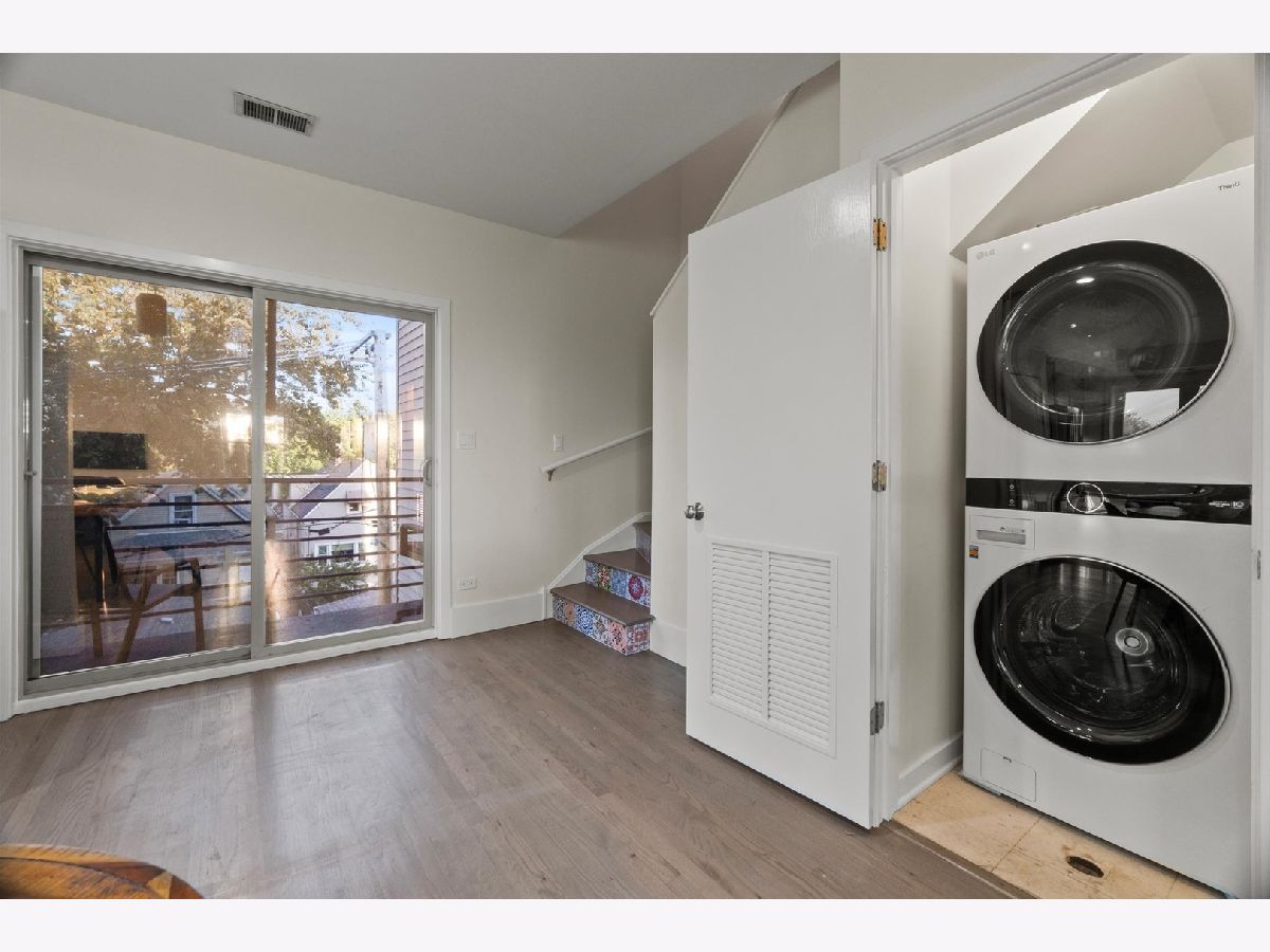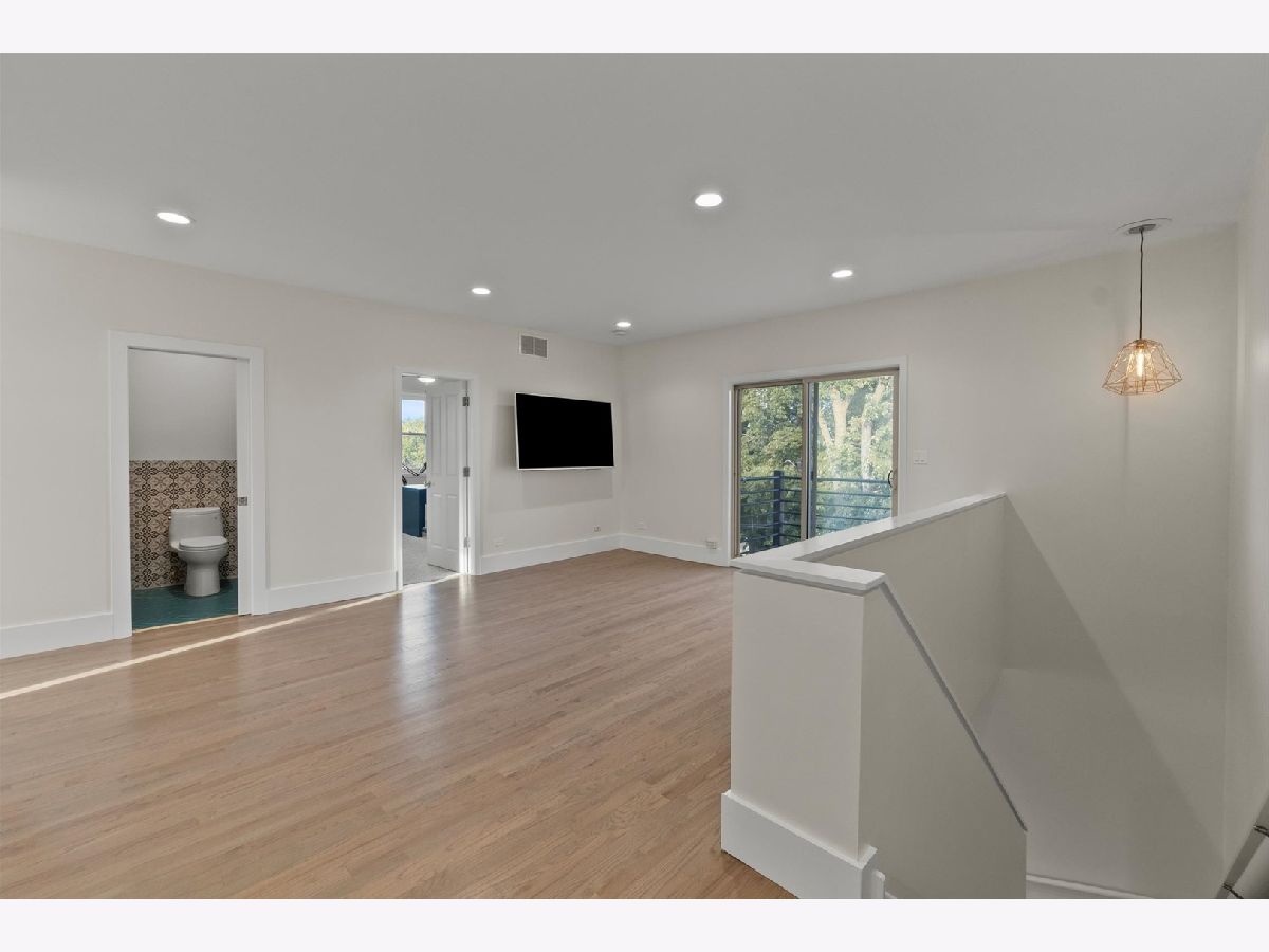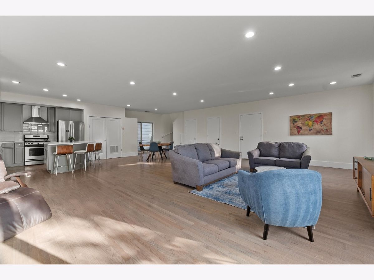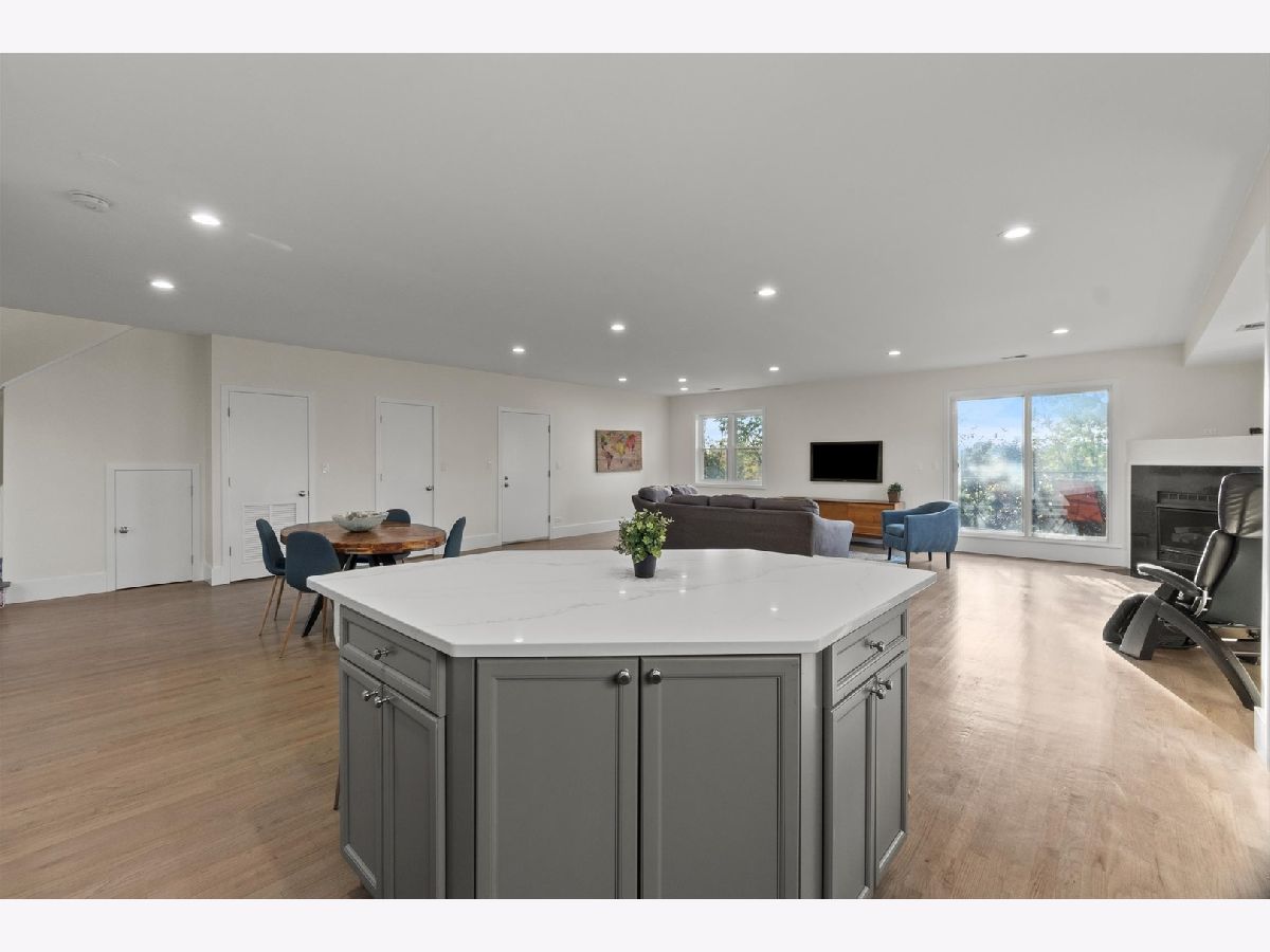 Welcome to this perfectly located condo in Irving Park! The super bright duplex offers over 2000 square feet of living! The unit has hardwood floors throughout and offers 3 bedrooms, 2.5 bathrooms plus a large family room! The main level is one large great room featuring your kitchen, living and dining areas as well as two separate balconies plus a half bath. Enjoy the outdoors or the quiet indoors with the unit's triple pane glass! Refreshed kitchen has 42" cabinetry, new quartz counters, a huge island, stainless steel appliances and is such a wonderful entertaining area! The living area has a gas fireplace for those chilly nights. Upstairs, you'll find all 3 bedrooms on the same level. A flexible lofted space can be used as home office, family room or workout area. The true en suite offers a custom walk in shower. There are 2 garage spaces included, as well as one exterior parking space. The fenced-in common grounds are wooded and include tons of space to roam around Newer 1,000 sq ft common Trex deck spans length of the entire building. Easy access to I 90/94Walk to the CTA/ Blue Line, Metra, LA Fitness, Jewel, Disney School, Independence Park, Murphy School, Athletic Field Park with playground, field house, tennis, basketball courts and close to Independence Park. Come see this before it is gone!
