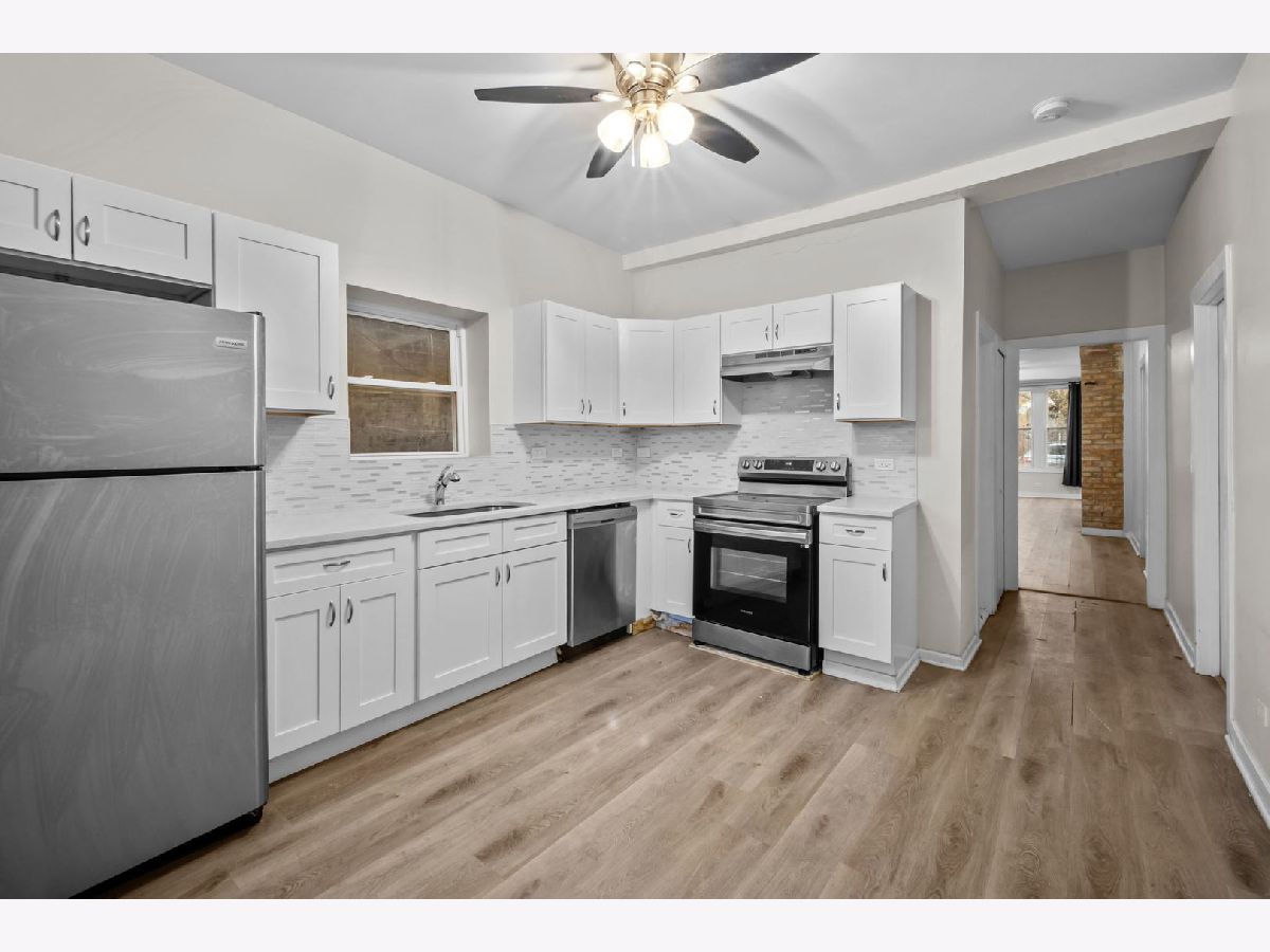 Well-maintained three-unit building located at 3646 W Wabansia in Chicago, offering a total of 10 bedrooms and 4 bathrooms across spacious units with functional layouts and a full gut renovation completed in 2022. Interiors feature bright living areas with durable LVP flooring, neutral paint tones, and ample natural light, along with updated kitchens equipped with white cabinetry, solid-surface countertops, and stainless steel appliances. Bathrooms have been modernized with contemporary fixtures and tilework, and each unit includes convenient in-unit laundry. The property combines classic exterior character with fully renovated interiors, offering separate entrances and flexible living spaces. Situated near the 606 Trail, the location provides convenient access to outdoor recreation, neighborhood amenities, dining, and transportation options.