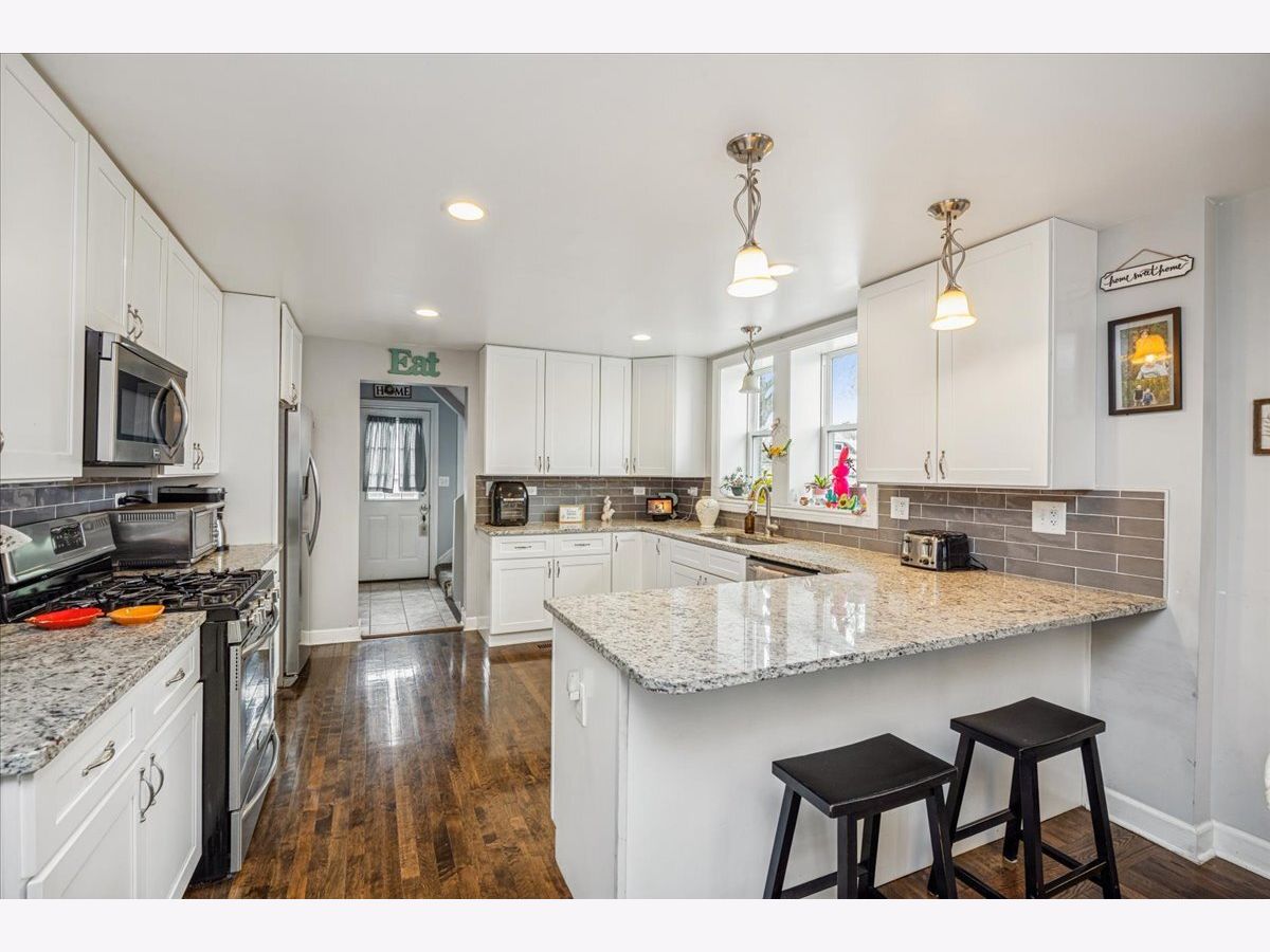 This is one you do not want to miss! Open concept bungalow with beautiful kitchen featuring stainless steel appliances, artisan backsplash, granite counters, gleaming hardwood floors, peninsula with seating, opens up to dining room which leads into living room. All you've ever wanted in one home! 2 bedrooms and full bath on main level. Heading upstairs, master suite with it's own living room! Very versatile, can be office or huge walk in closet, nursery, dressing room etc. Full bath as well with double sinks and shower. Everything you need to relax, in one space after a long day. Basement, finished for rec room/ family room etc. Two additional rooms in lower level currently being used as bedrooms. Full bath as well in lower level, perfect for teenagers or related living, guest quarters etc. Nothing is missing from this wonderfully decorated corner brick bungalow in south Berwyn. Min from I55 and 290. Walk to bus, metra, dining, grocery etc. Completely ready to move in! Nothing to do here! Last but not least, fenced in yard for kids/ dogs/ entertaining!