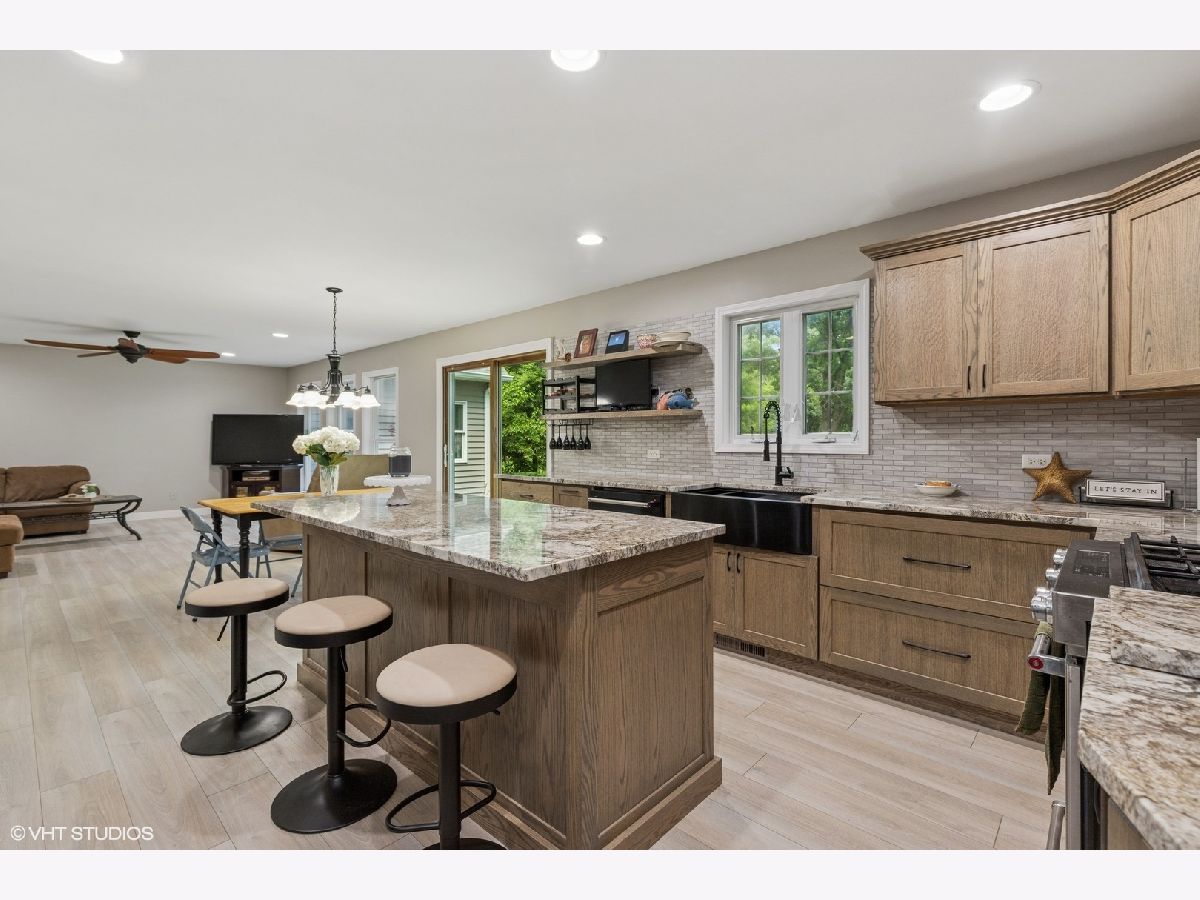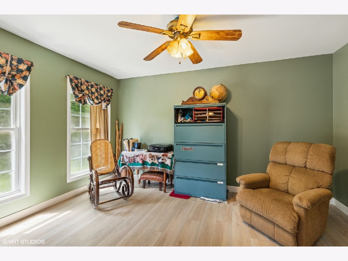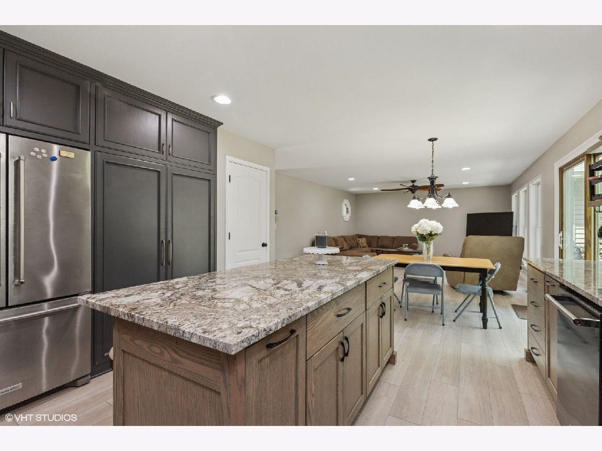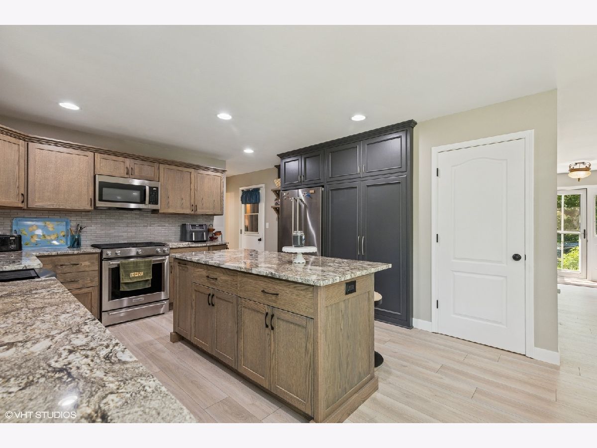 Come discover this beautiful custom-built home surrounded by mature Oak trees and forest preserve. On the first floor you will find a peaceful living room/den adjacent to the foyer for quiet moments. Step into the newly remodeled open design kitchen just completed in 2025, with new cabinets, granite countertops, tile backsplash, breakfast bar, and a huge pantry closet. Beautiful tall windows make the home light and bright with an amazing view of the beautifully landscaped yard. New wood laminate flooring and fresh paint throughout the first floor. The powder room has been recently updated with a new vanity and wainscoting. Large first-floor laundry room with ample cabinets and closet space. Huge unfinished basement awaits your finishing touches. One of the features that sets this home apart is the huge 20x40 heated workshop, perfect for an at home business, workshop, studio or car-enthusiast. The space could also be finished off to add additional living space. Above the workshop is 800 square feet of floored attic space, that can also be accessed through the 2nd floor bedroom. Upstairs you will find a large primary en-suite bedroom with 10" Ceilings, large walk-in closet and private bath with an additional flex-space room that would make a great office, nursery or exercise room. Two additional ample size bedrooms and hall bath complete the second floor. More recent improvements include roof, paint, carpet, and wood laminate flooring, kitchen and powder room.Beautiful landscaped yard with two sheds, mature trees, garden, patio and an invisible fence for your pets. Amazing location surrounded by Lake County Forest Preserve, with access to miles of walking trails and bike paths. Truly a rare find and an amazing opportunity to make this your dream home today!