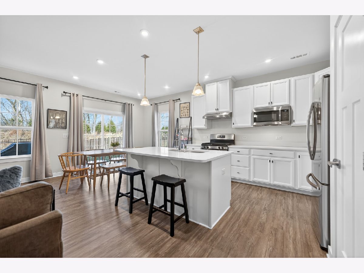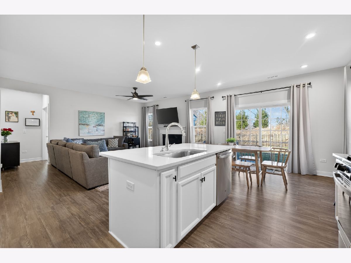 Welcome to 3656 Reddington Circle! No Need to Wait to Build. This nearly new, beautifully appointed 3-bedroom, 2 bath ranch style home features over 1400 interior square feet, an attached 2.5 car garage and a large, fenced backyard! As you enter the home, you'll immediately notice the 9 foot ceiling height, luxury plank flooring and natural light throughout. The crisp white kitchen with abundant cabinetry, quartz countertops, large island /breakfast bar with pendant lighting, stainless appliances, recessed lighting is open to the dining area with patio doors to backyard! The large open family room features its gas log fireplace focal point and pretty windows overlooking the back yard. The light filled primary suite with view of the backyard provides a private full bathroom with double sink vanity, large stand-up shower with double shower heads, and large walk-in closet. Two additional bedrooms with large closets and natural light plus 2nd full bathroom with shower/tub combo also included. Laundry room features lots of shelving + Champagne Washer & Dryer (2021). Gas Furnace & Central A/C (2021). 200 Amp Electrical, Cat 6 Internet, Insulated Garage with Epoxy Flooring and Storage Nook. The Reddington HOA fee includes: Lawn Mowing, Mulching and Snow Removal. With Highlands Woods Master HOA you can enjoy the clubhouse community, pools, fitness center, tennis, basketball, sand volleyball, parks and ponds for fishing. Great sense of community here. They have regular monthly food trucks come to the community for everyone to get together and to support local/small businesses. Country Trails Elementary School is nested within the community and just outside on Route 20, Kountry Pet Resort, an animal shelter used by many people here in the community to board your pets. Restaurants and lots of activities and fun happening all along Randall Road. Do not miss this opportunity!