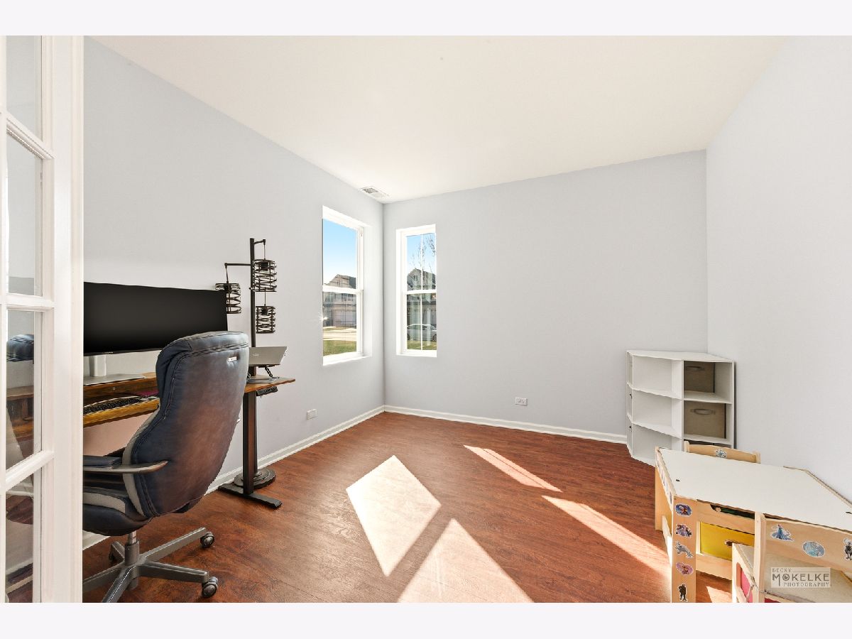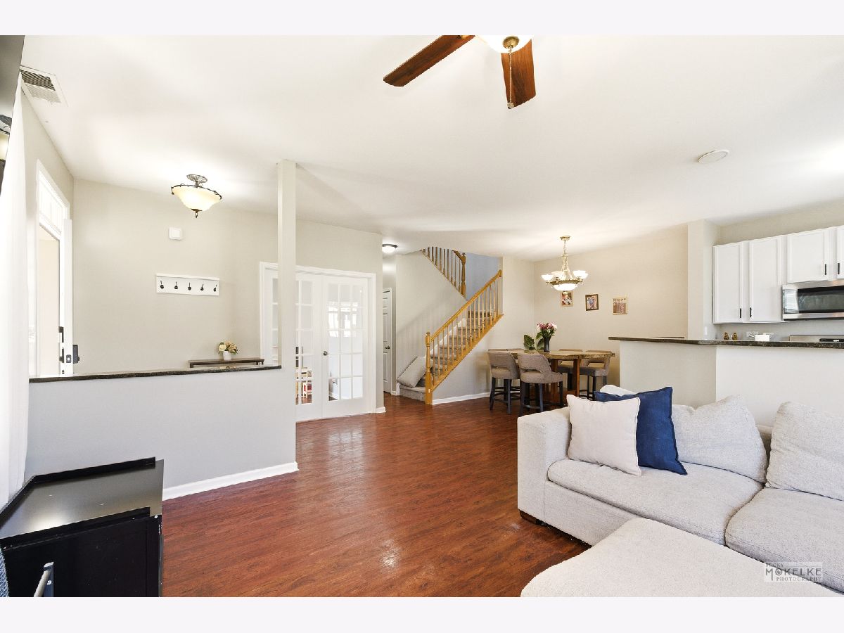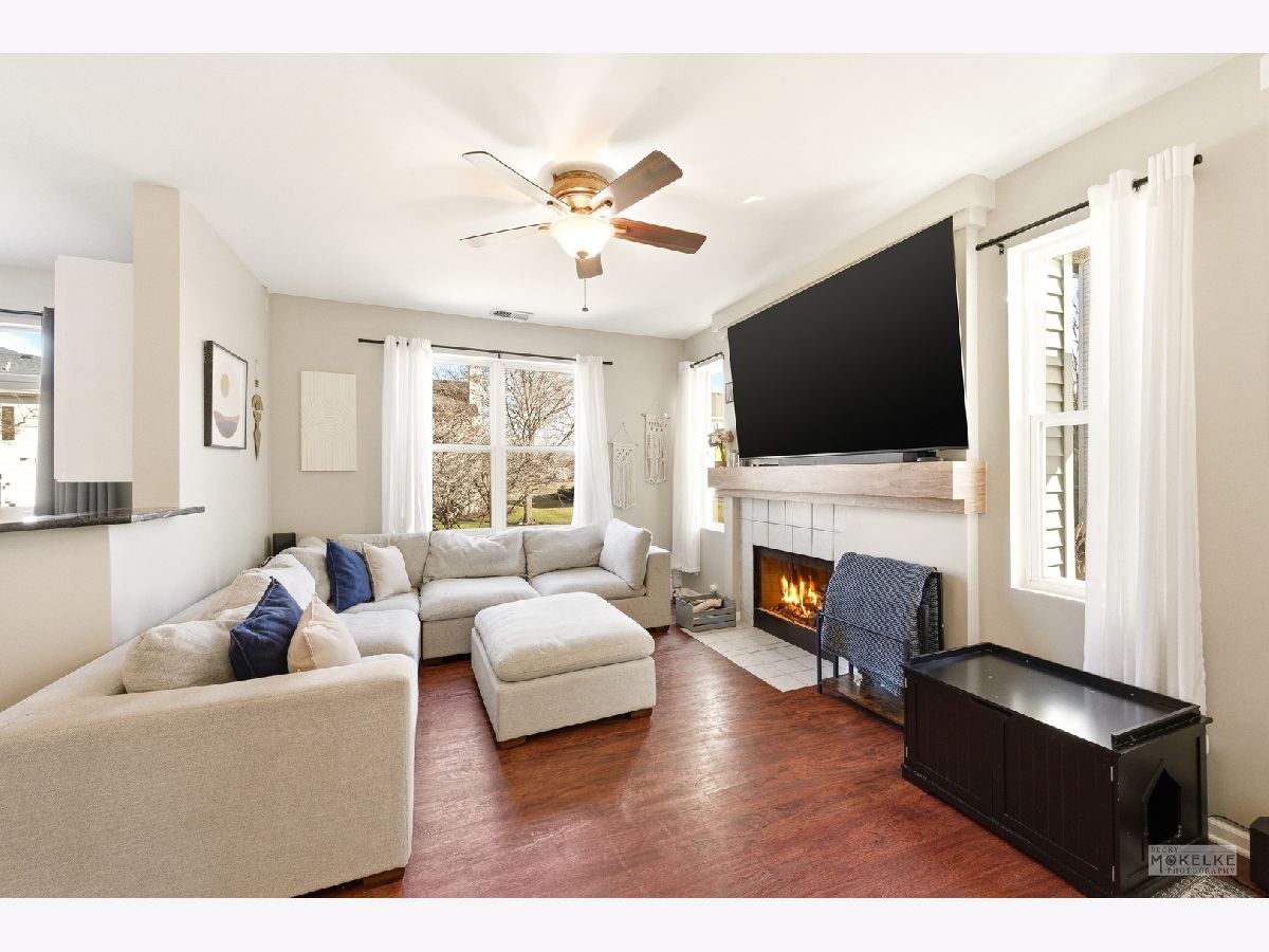 THIS ONE IS BETTER THAN ALL THE REST! In coveted Churchill Club, this 1949 sqft END UNIT townhome boasts 1949 sqft, 3 bedrooms, 2.1 bathrooms PLUS a rare offering of a main level office with french doors AND a fireplace!!! You will love the 9' ceilings, walk-in closets in every bedroom, the 2nd floor laundry and the sliding glass door which leads to a deck and green space. This unit was totally rebuilt after a small fire occurred outside of the garage in 2022. Drywall, carpet, insulation, electrical box, electrical wiring, windows, roof, siding, and gutters were all new in 2022. The amazing clubhouse Includes a professional workout facility, party room with full kitchen, game room with ping-pong and pool table, huge swimming pool w/slide & two kiddie pools, outdoor barbecue and party area, tennis & basketball courts, sand volleyball, etc. Excellent District 308 Schools. Walking distance to elementary & middle schools and several parks. This community is perfectly located. Schedule your showing...you will LOVE IT!
