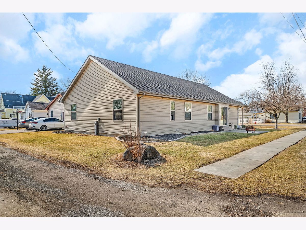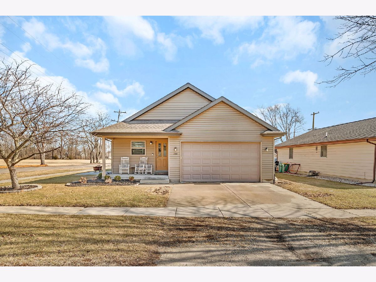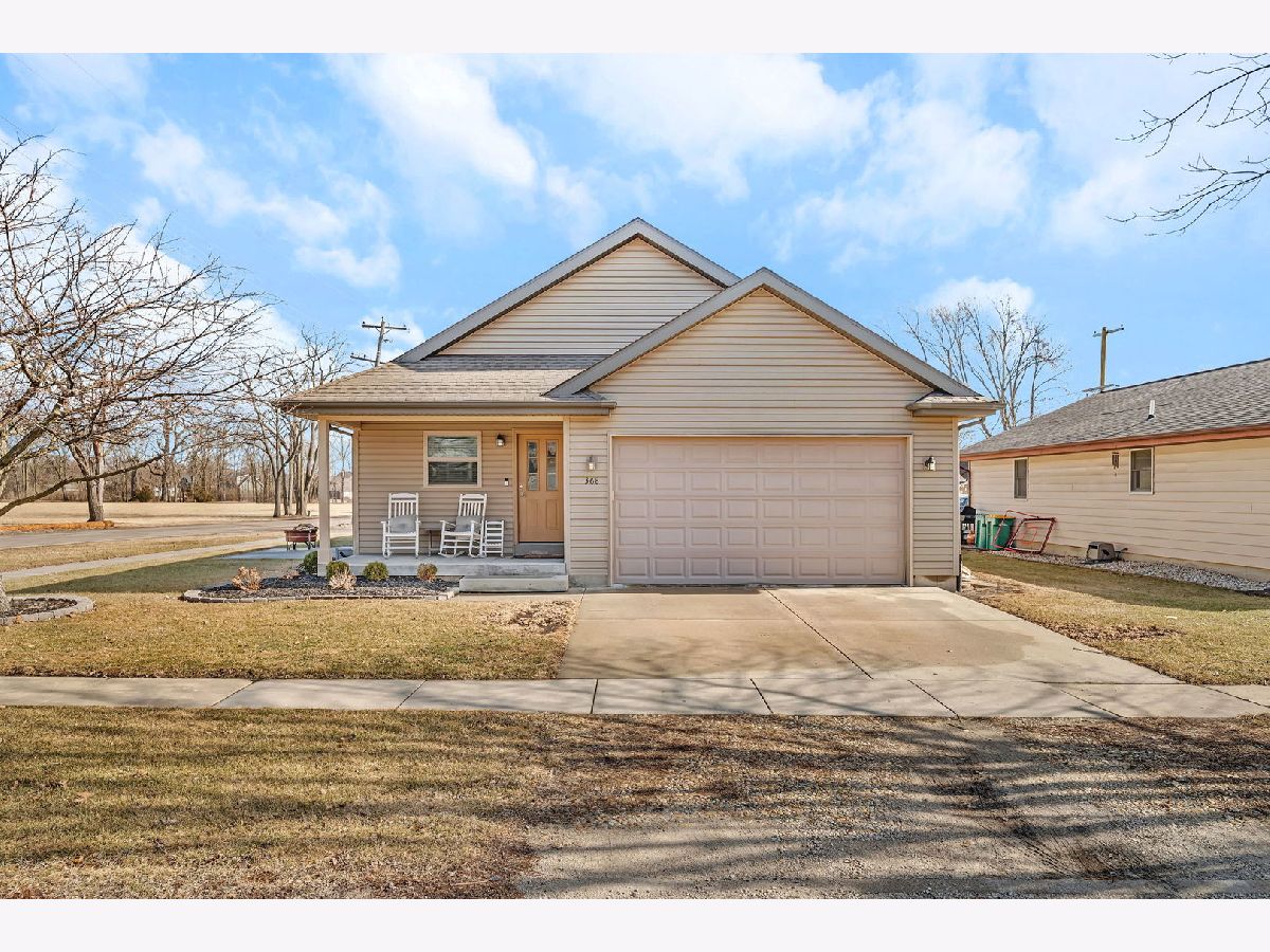 Well-maintained ranch home featuring covered front porch with space for rocking chairs. Located on a corner lot and built in 2008, this inviting home features an open-concept floor plan offering 3 bedrooms, 1.5 bathrooms, and a heated 2-car attached garage. The spacious living room showcases vaulted ceilings, abundant natural light, and durable flooring, creating a bright and welcoming atmosphere. The kitchen is designed for both everyday living and entertaining, featuring stainless steel appliances, a center island, and an eat-in dining area with sliding doors leading to the patio and outdoor space. The primary bedroom includes a large walk-in closet and convenient access to the full bath with double-bowl sinks. Two additional bedrooms offer comfortable living space. A dedicated laundry room and additional half bath add extra convenience. Additional highlights include a 4-foot poured crawl space providing excellent storage, a garage refrigerator that will remain, and a gas heater in the garage. Prime location just blocks from restaurants, parks, and the library.