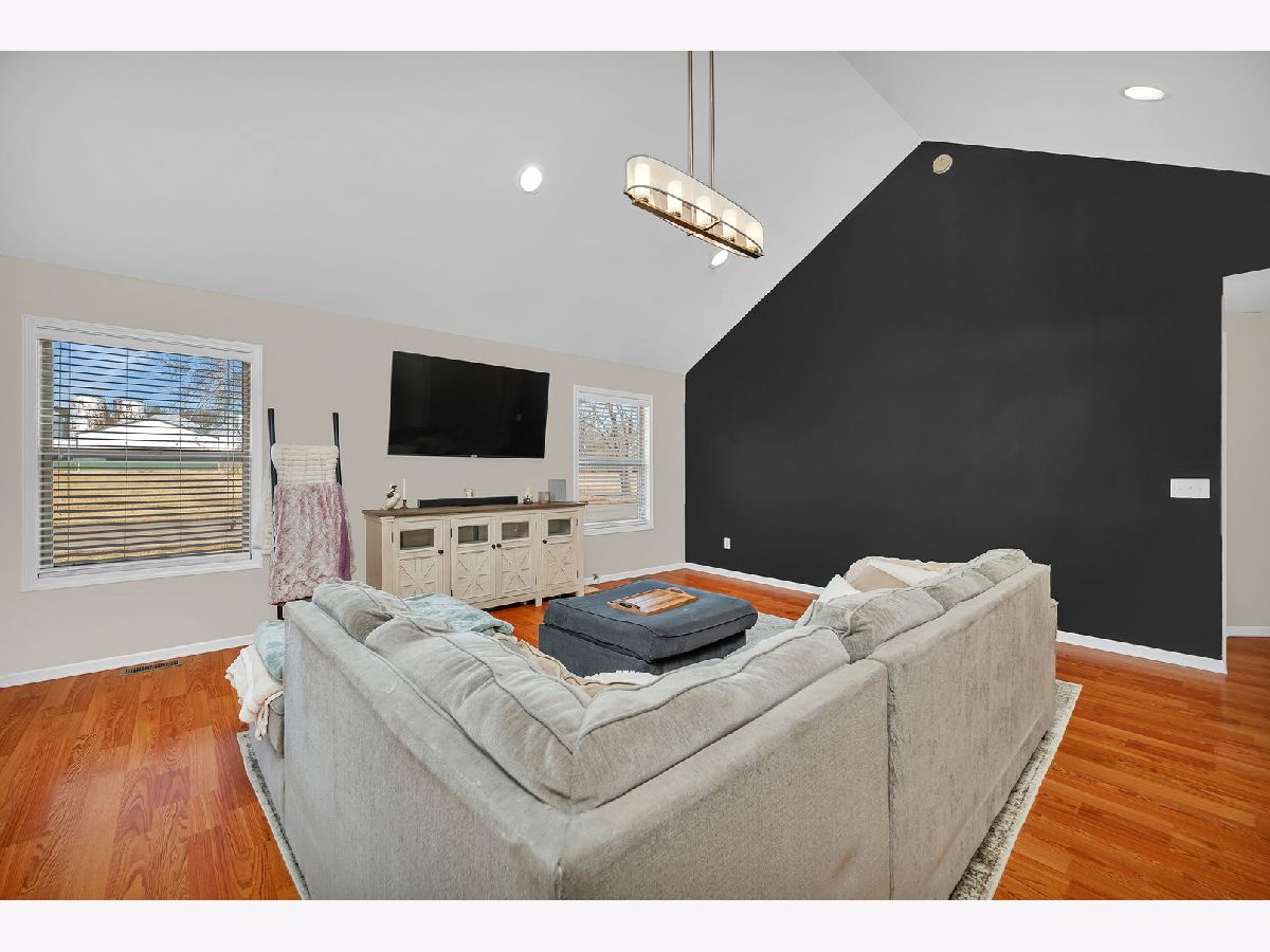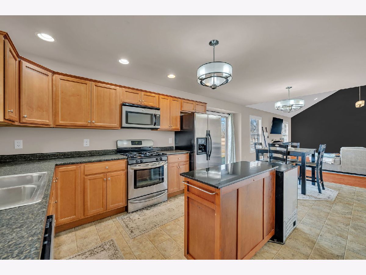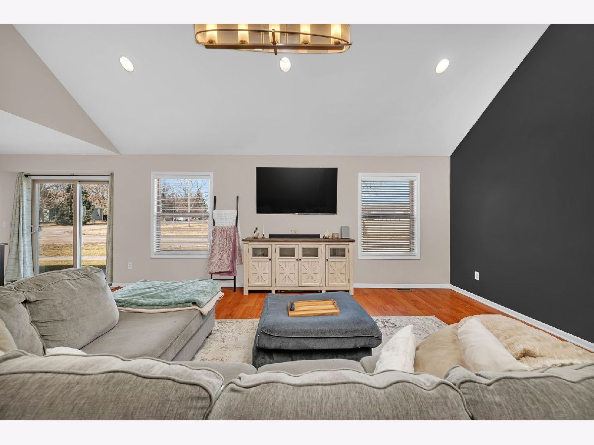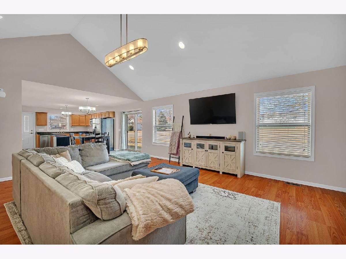 Well-maintained ranch home featuring covered front porch with space for rocking chairs. Located on a corner lot and built in 2008, this inviting home features an open-concept floor plan offering 3 bedrooms, 1.5 bathrooms, and a heated 2-car attached garage. The spacious living room showcases vaulted ceilings, abundant natural light, and durable flooring, creating a bright and welcoming atmosphere. The kitchen is designed for both everyday living and entertaining, featuring stainless steel appliances, a center island, and an eat-in dining area with sliding doors leading to the patio and outdoor space. The primary bedroom includes a large walk-in closet and convenient access to the full bath with double-bowl sinks. Two additional bedrooms offer comfortable living space. A dedicated laundry room and additional half bath add extra convenience. Additional highlights include a 4-foot poured crawl space providing excellent storage, a garage refrigerator that will remain, and a gas heater in the garage. Prime location just blocks from restaurants, parks, and the library.