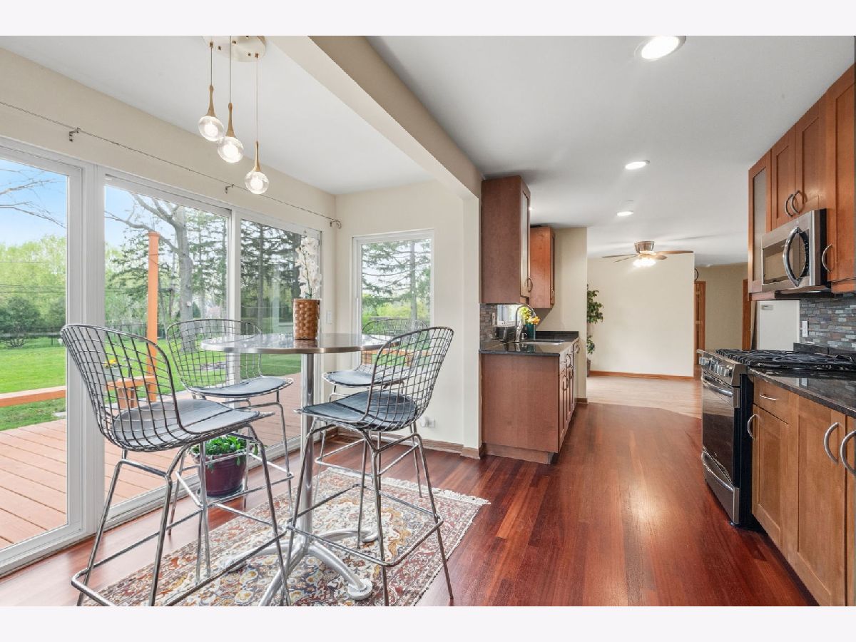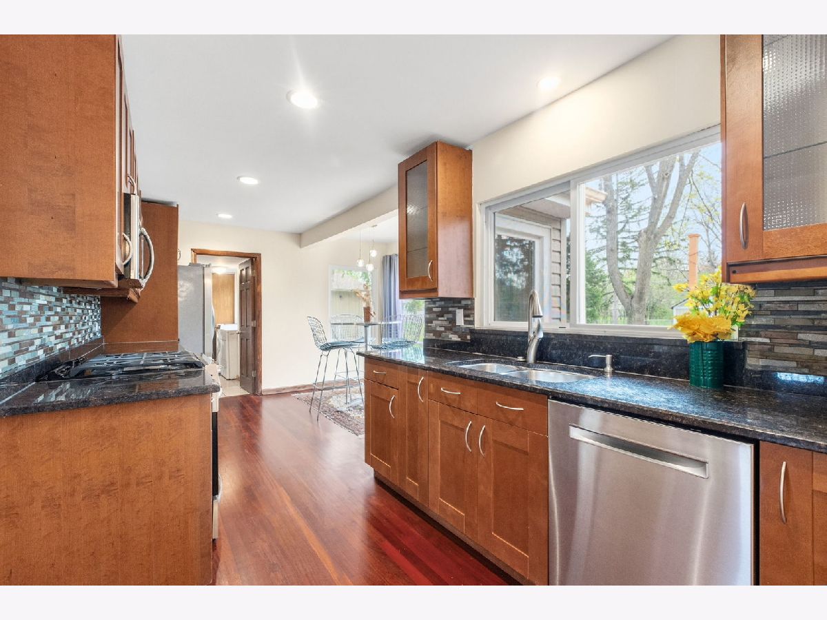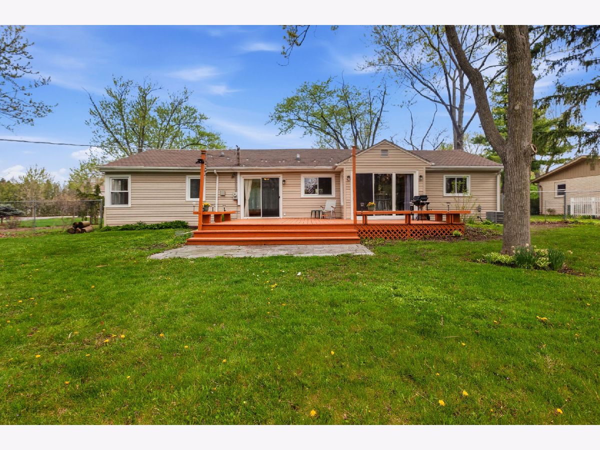 If you are looking for a ranch with peaceful backyard on 100'x200' lot, this spacious home offers tranquility and convenience in a great Northbrook location. So many updates including a stunning remodeled full bath with rain shower, newer stainless steel appliances in wonderful remodeled kitchen, New furnace & AC (2023), wood floors including kitchen with Brazilian cherry floor, windows & doors replaced and so much more. Charming Breakfast area with sliding doors to the huge deck and blue stone patio overlooking an expansive, serene fully fenced yard with 5' fence for pets & privacy, mature black walnut trees, firepit and shed. Close to award winning schools and parks including the newly renovated Leisure Center & 40+ acre Wood Oaks Park. Add on, build out, or just enjoy it as it is. A great place to call home.