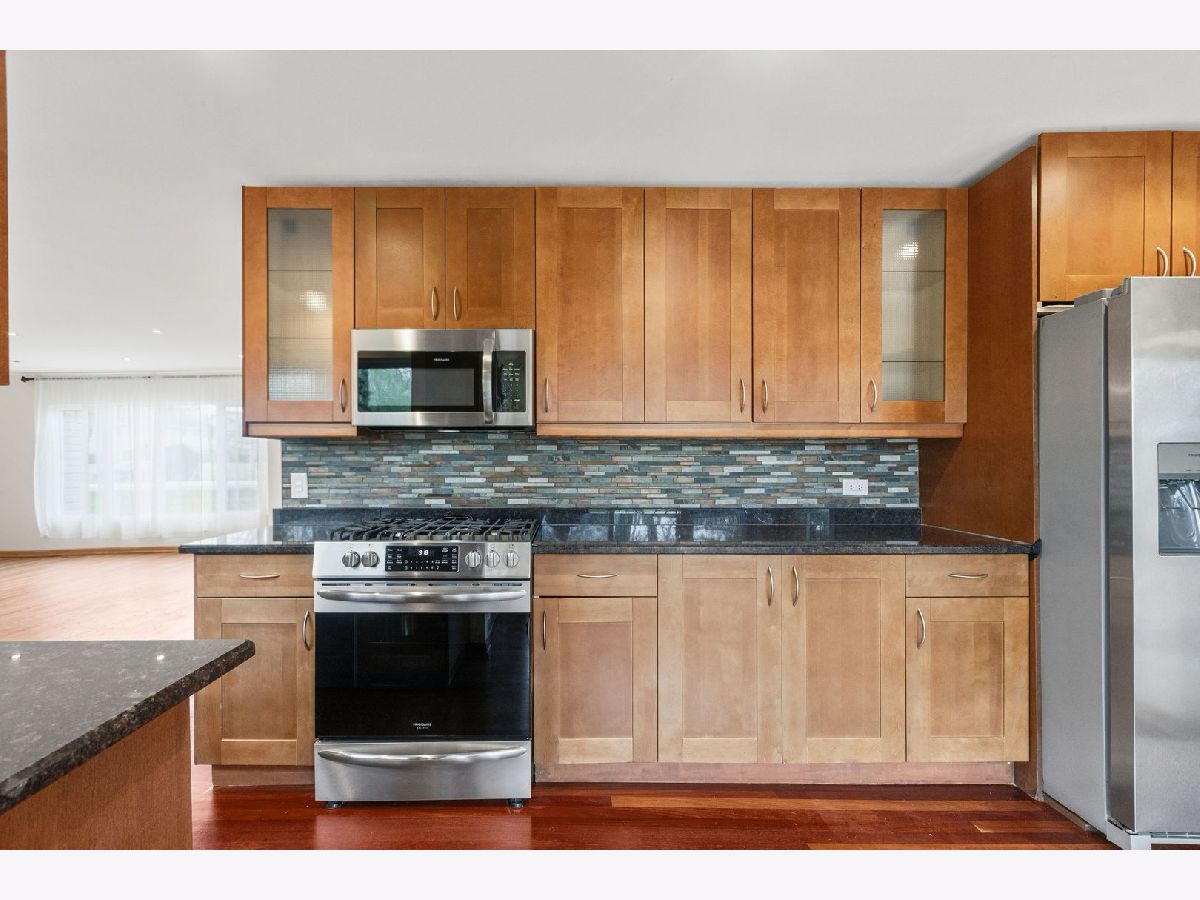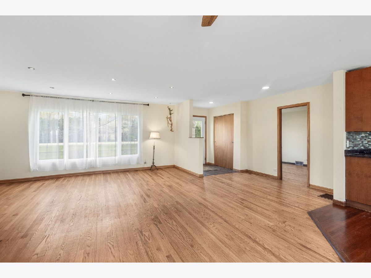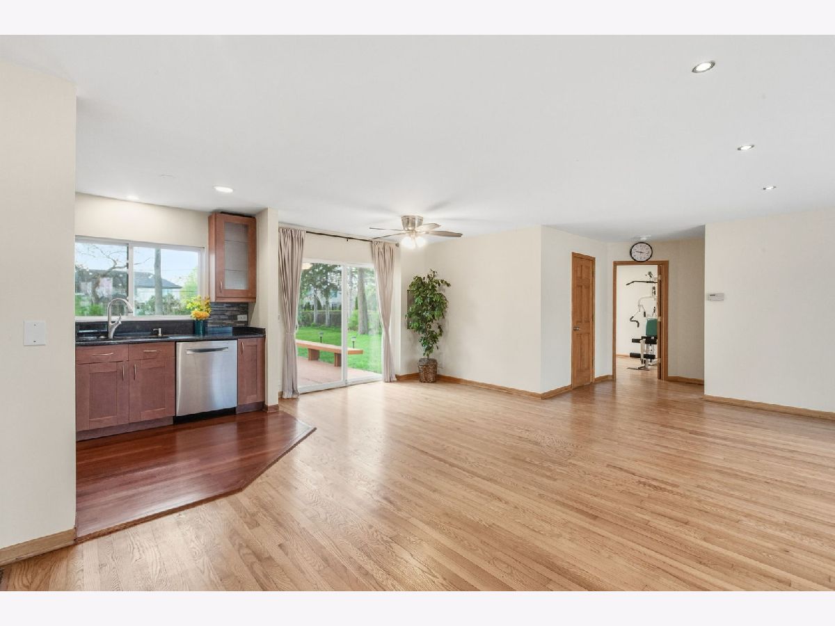 If you are looking for a ranch with peaceful backyard on 100'x200' lot, this spacious home offers tranquility and convenience in a great Northbrook location. So many updates including a stunning remodeled full bath with rain shower, newer stainless steel appliances in wonderful remodeled kitchen, New furnace & AC (2023), wood floors including kitchen with Brazilian cherry floor, windows & doors replaced and so much more. Charming Breakfast area with sliding doors to the huge deck and blue stone patio overlooking an expansive, serene fully fenced yard with 5' fence for pets & privacy, mature black walnut trees, firepit and shed. Close to award winning schools and parks including the newly renovated Leisure Center & 40+ acre Wood Oaks Park. Add on, build out, or just enjoy it as it is. A great place to call home.