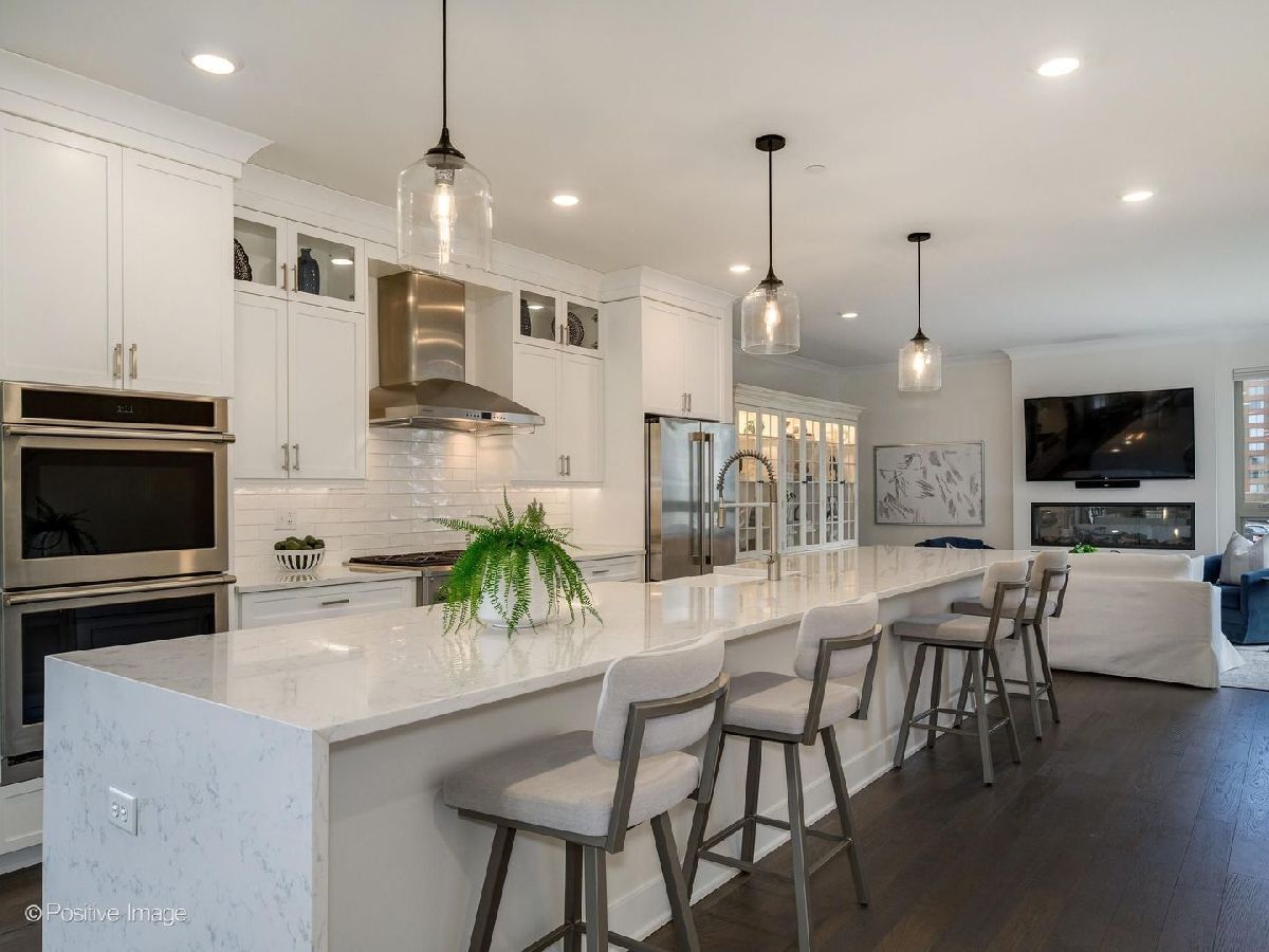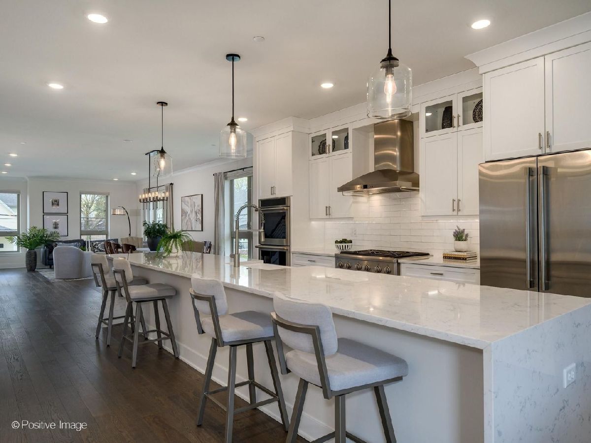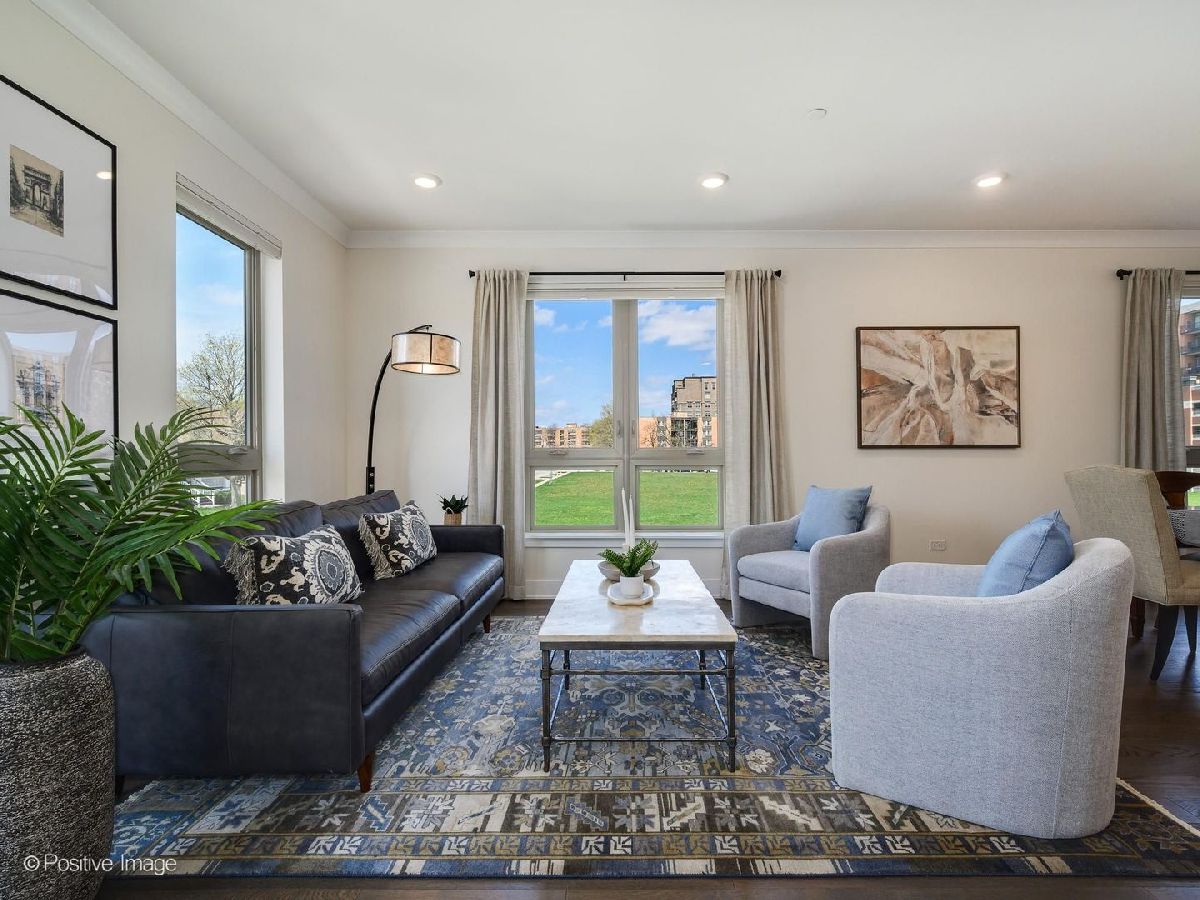 Rare end-unit newer construction in the heart of downtown Arlington Heights with unobstructed views and true walk-to-everything living - restaurants, shops, and the town's lively al fresco dining scene. This 2,753 sq ft four-story townhome stands out with the largest two rooftop terraces in the association and a rare 4-car garage with durable epoxy flooring - offering incredible flexibility for car enthusiasts, added storage, a home gym, or whatever fits your lifestyle. Inside, elevated finishes include engineered hardwood flooring throughout and a chef's kitchen with GE Monogram appliances, 16' waterfall quartz island, farmhouse sink, and custom cabinetry with rollout shelving. The open-concept main level flows into a warm, inviting family room with electric fireplace. The third level features dual primary suites, each with double vanity en suite bath and walk-in closet, two linen closets, and laundry. The top-floor flexible loft opens to a stunning wraparound rooftop terrace with water spigot - perfect for gardening or entertaining. Better than new with custom closet systems and designer window treatments throughout. A true single family home alternative - no hassle over lawncare, snow removal or exterior maintenance. Nothing left to do but move in.