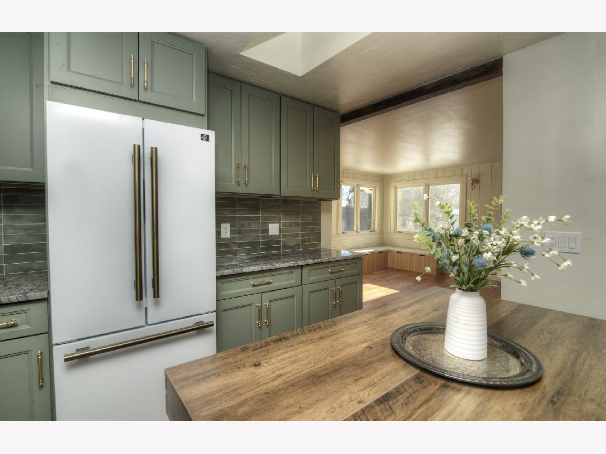 Welcome to 370 S Oriole Trail, a truly one-of-a-kind home nestled in the heart of Crystal Lake, Illinois. Originally built in 1912, this beautifully preserved and thoughtfully updated 4-bedroom, 2.5-bath residence blends timeless character with modern sophistication - far from your cookie-cutter home. Step inside to discover a fully remodeled, professionally designed kitchen featuring striking brick flooring, high-end appliances, granite countertops and backsplash, and exceptional attention to detail. The space flows seamlessly into the adjoining sitting area with rich American cherry hardwood floors, a cozy wood-burning stove, and vintage built-ins that add warmth and charm. All wood floors throughout the home have been refinished, enhancing the classic appeal. The first-floor primary suite offers comfort and privacy with its own full bath and direct access to the back deck - the perfect retreat. A massive family room showcases exposed wood beams and a fireplace, while the oversized dining room is ready to host unforgettable gatherings - complete with a designer wallpaper ceiling that's sure to be the talk of the town. Upstairs, you'll find three generously sized bedrooms and a full bath. The main level also includes a convenient half bath and laundry area with washer and dryer included. Set on a picturesque 1/2-acre lot with a beautiful tree-lined backdrop, the outdoor space features a brand-new concrete and paver patio and a matching shed - ideal for entertaining or relaxing. A partial unfinished basement offers abundant storage and workshop potential. The attached two-car garage includes attic storage above for even more space. Perfectly located near downtown Crystal Lake, the Metra, schools, and the library, this home offers vintage charm, thoughtful updates, and a prime location - a rare opportunity to own a truly distinctive property.