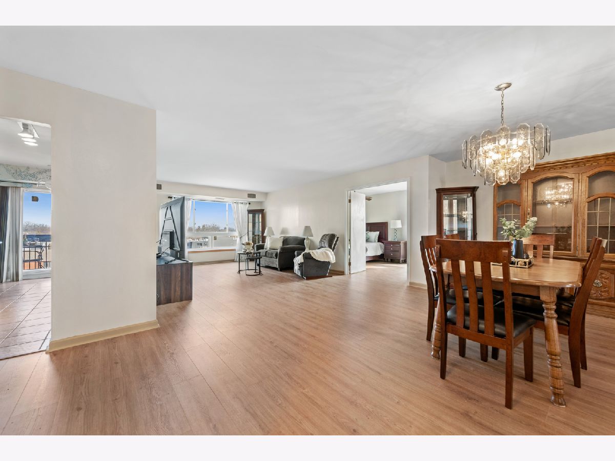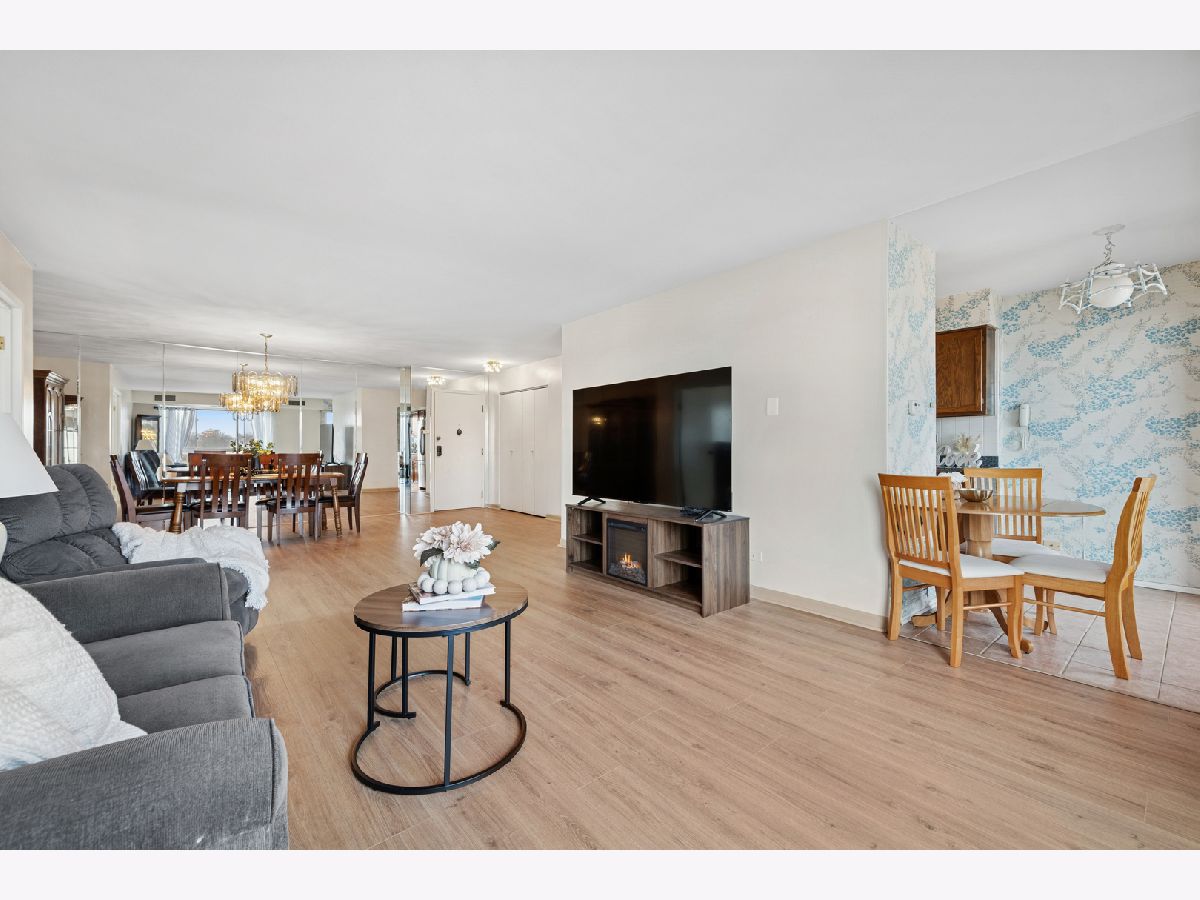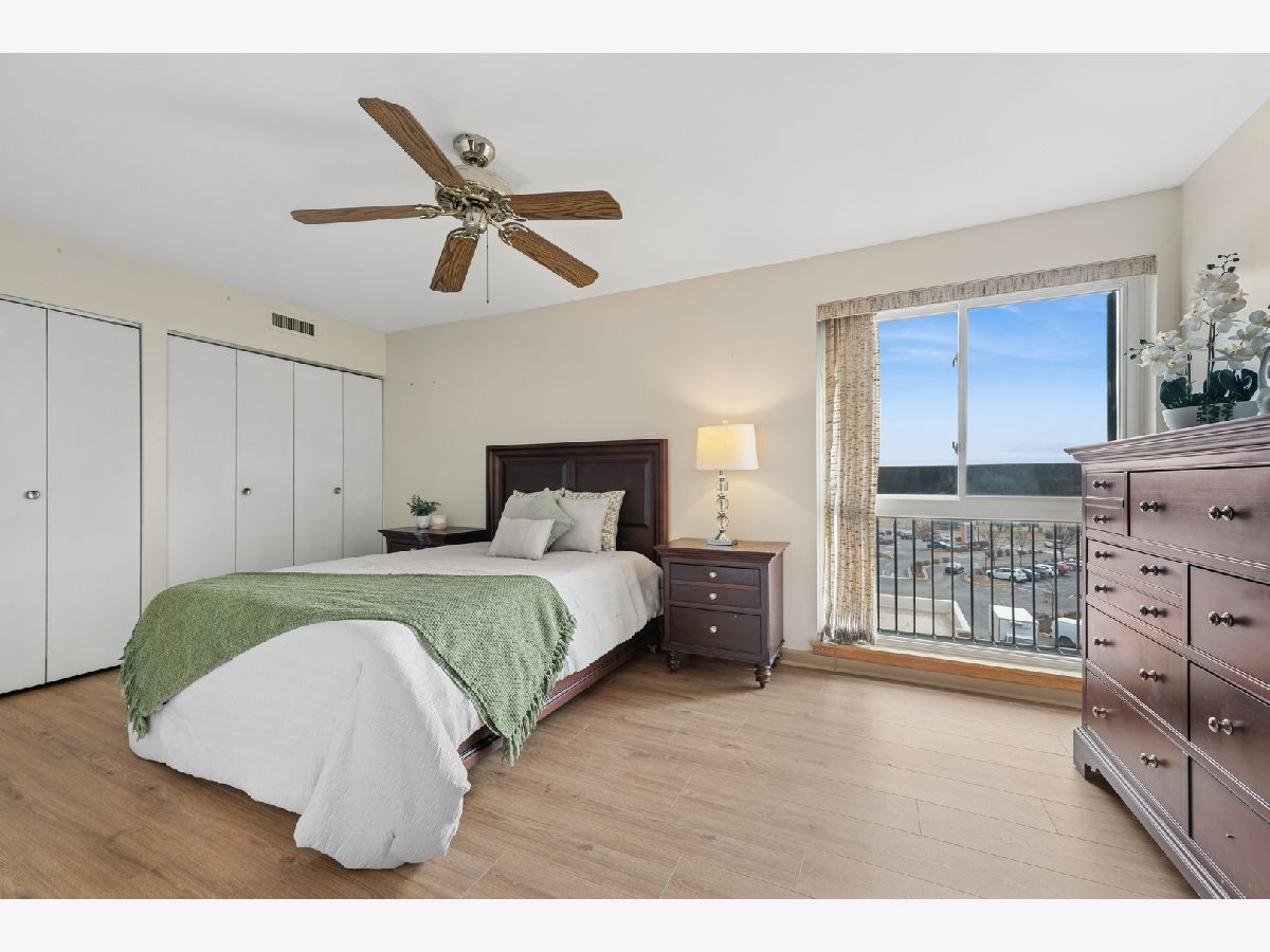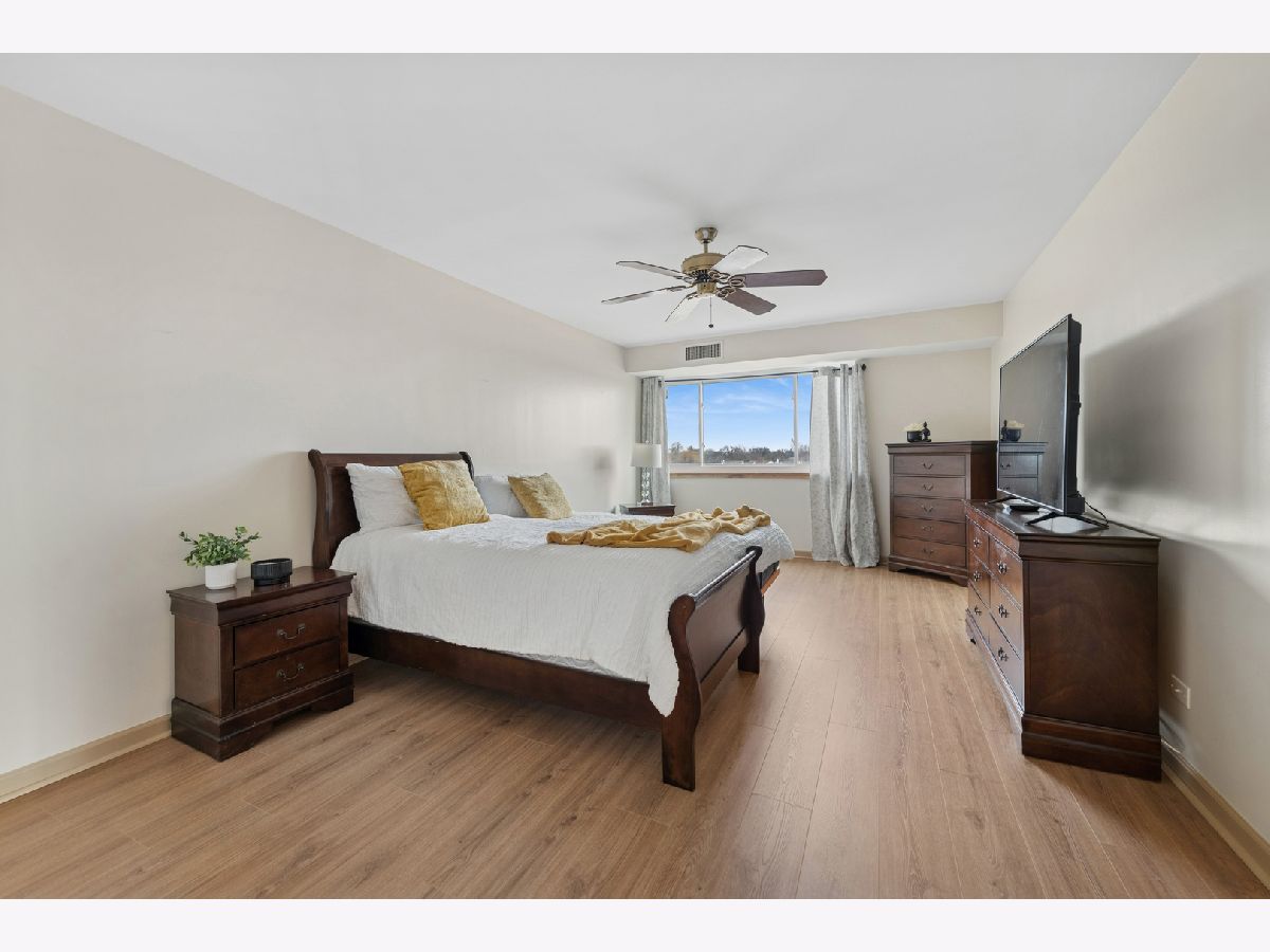 Beautiful 5th-floor end unit in the highly regarded Triumvera community offers spacious living and abundant storage in a quiet courtyard setting. This 3-bedroom, 2-full-bath residence features vinyl flooring throughout, a large living room with a balcony, and a kitchen that sits adjacent to a new sliding door with newer windows. The master suite includes a deep walk-in closet and a private bathroom, while a dedicated walk-in storage room or pantry and multiple closets provide ample storage. As an end unit, it enjoys added privacy and natural light, though it does need some updates to suit personal taste. Triumvera delivers resort-style living with amenities such as a swimming pool, exercise rooms, sauna, and recreational spaces like party and meeting rooms, ping-pong, billiards, and a library, all set within well-maintained grounds and a tranquil courtyard. Convenience is a plus, with close proximity to groceries, shops, and dining options, easy access to expressways, and placement in the sought-after Glenview school district.