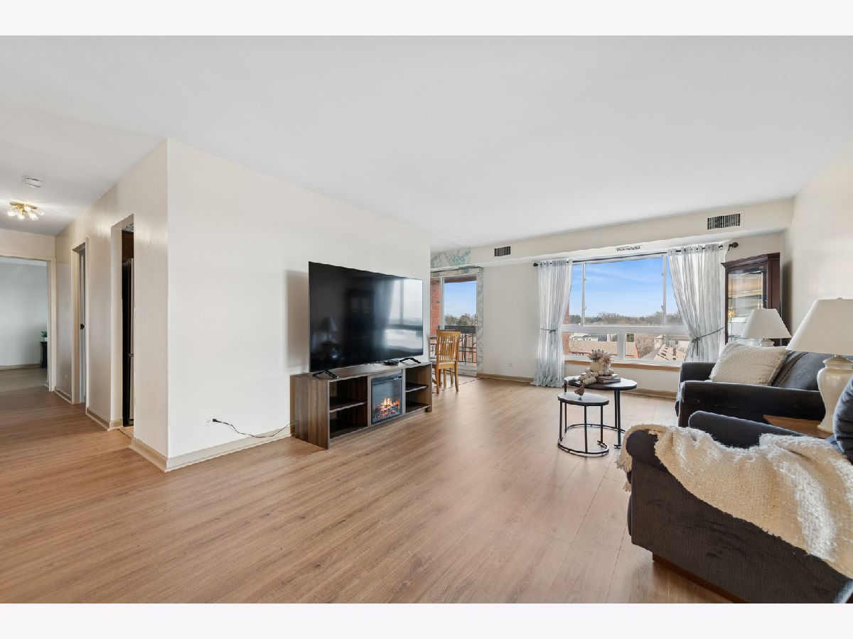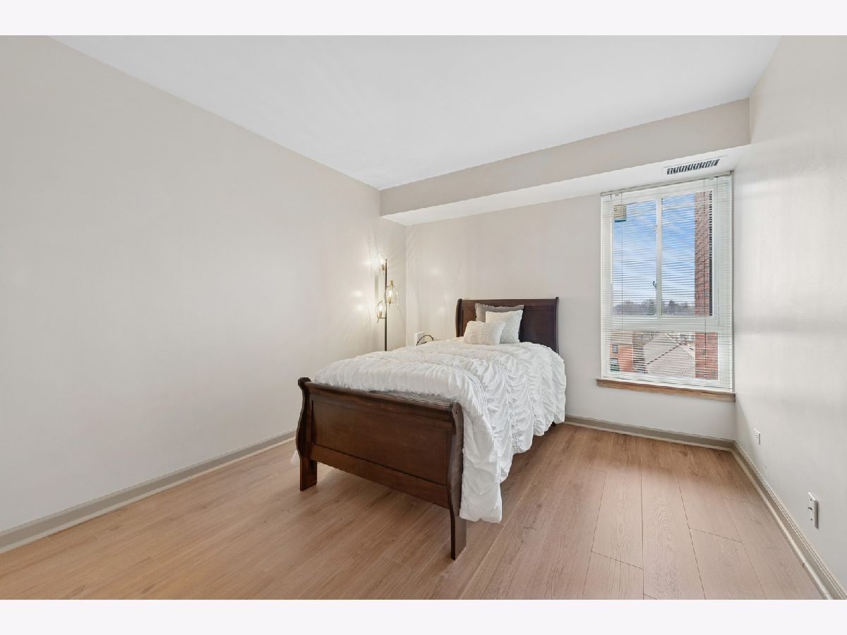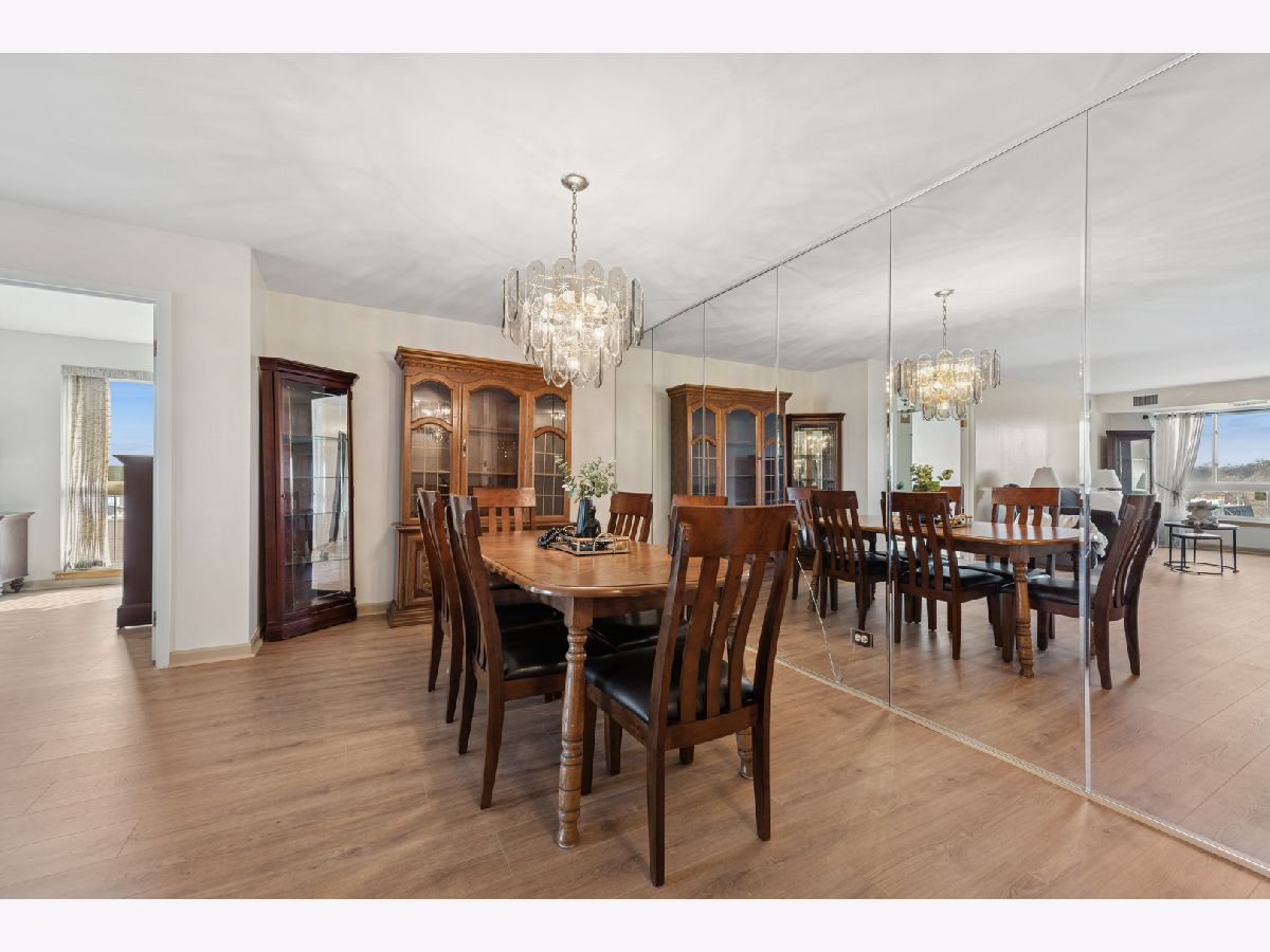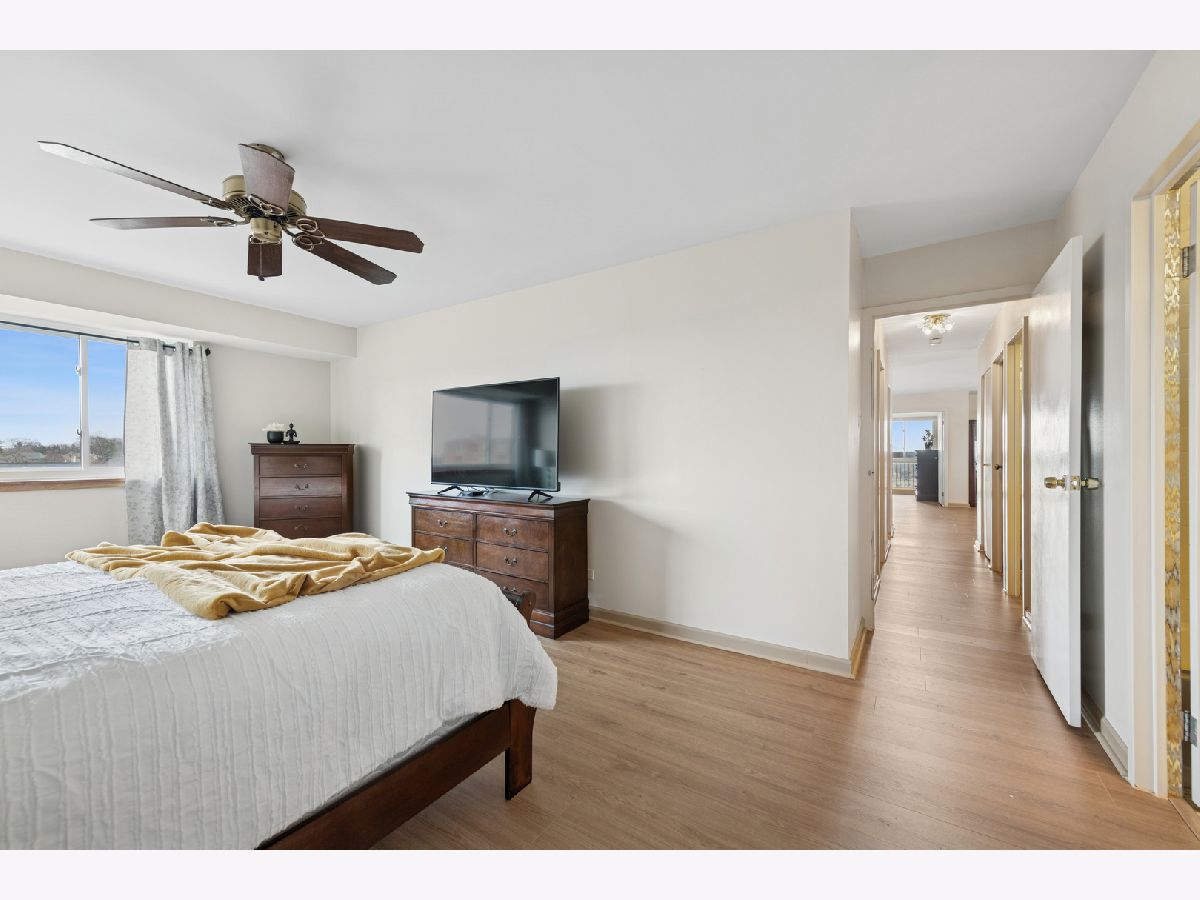 Beautiful 5th-floor end unit in the highly regarded Triumvera community offers spacious living and abundant storage in a quiet courtyard setting. This 3-bedroom, 2-full-bath residence features vinyl flooring throughout, a large living room with a balcony, and a kitchen that sits adjacent to a new sliding door with newer windows. The master suite includes a deep walk-in closet and a private bathroom, while a dedicated walk-in storage room or pantry and multiple closets provide ample storage. As an end unit, it enjoys added privacy and natural light, though it does need some updates to suit personal taste. Triumvera delivers resort-style living with amenities such as a swimming pool, exercise rooms, sauna, and recreational spaces like party and meeting rooms, ping-pong, billiards, and a library, all set within well-maintained grounds and a tranquil courtyard. Convenience is a plus, with close proximity to groceries, shops, and dining options, easy access to expressways, and placement in the sought-after Glenview school district.
