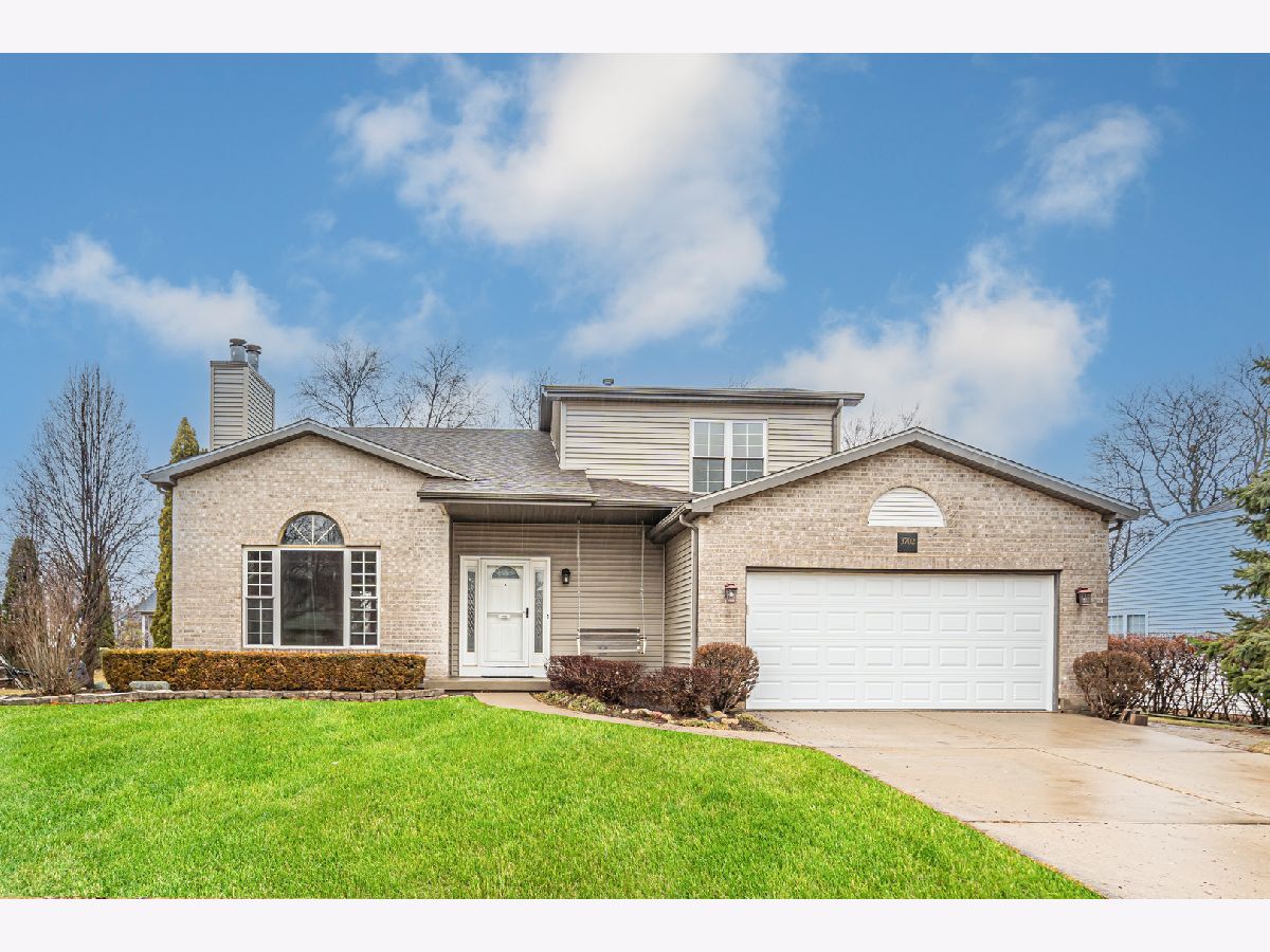 Great curb appeal! Beautiful brick front. Wonderful front porch with swing invites you into this well-maintained home. Nice large living room with tall cathedral ceilings, brick fireplace and hardwood floors. Large eat-in kitchen with all stainless-steel appliances and sliding patio door that leads you out to big deck, a large fenced in back yard and large paver patio. Big master suite on the 1st level. Master suite bath has double sinks, separate shower, whirlpool tub and big walk-in closet. 3 very good size bedrooms on the 2nd level with ample closet space. 2nd level hall bathroom remodeled with ceramic shower, tile and counter. Very large recreation room with a fireplace in the full basement. Newer roof, siding and front door. All mechanicals and been meticulously maintained. Plenty of storage. Show with confidence!