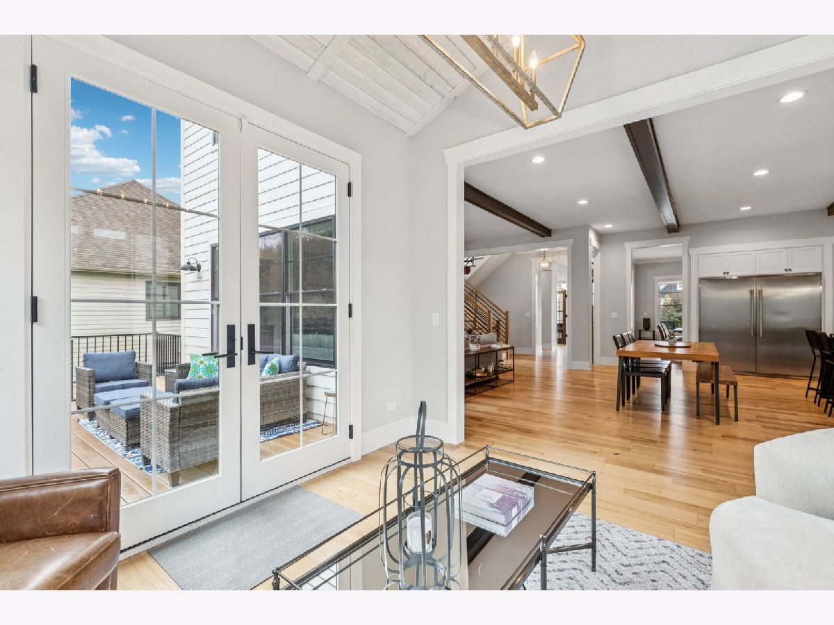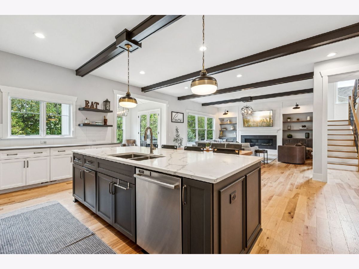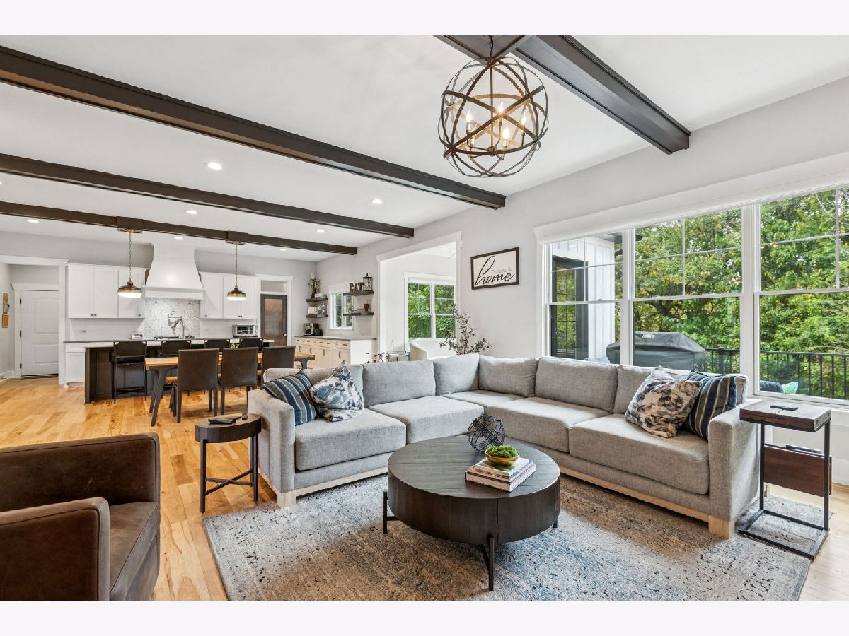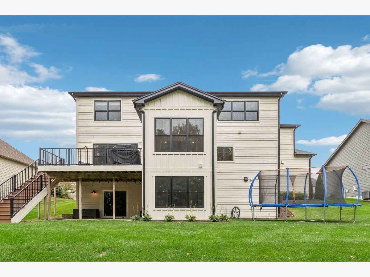 Better-than-new DeMarcco-built modern farmhouse located in the sought-after Highland Woods community of Elgin, Illinois. Built in 2020 with timeless craftsmanship and a fresh, modern design. The main level features beamed ceilings, rich hardwood flooring, and an open layout ideal for entertaining and everyday living. The chef's dream kitchen is appointed with top-of-the-line appliances, custom cabinetry, and a spacious island that connects seamlessly to the dining and great room. A bright sunroom captures backyard views, while a private den provides the perfect home office space. Upstairs, the primary suite impresses with an amazing spa-style bathroom and generous walk-in closets. The walk-out lower level, finished in 2021, offers a large family/rec room with fireplace, wet bar, full bath, bedroom, and private office-ideal for guests or extended living. Energy-efficient Pella windows fill the home with natural light, showcasing every thoughtful detail. Residents of Highland Woods enjoy access to a pool, clubhouse, fitness center, parks, and walking trails, all within the highly regarded District 301 schools. A rare opportunity to own a home that perfectly blends modern comfort, luxury finishes, and community living.