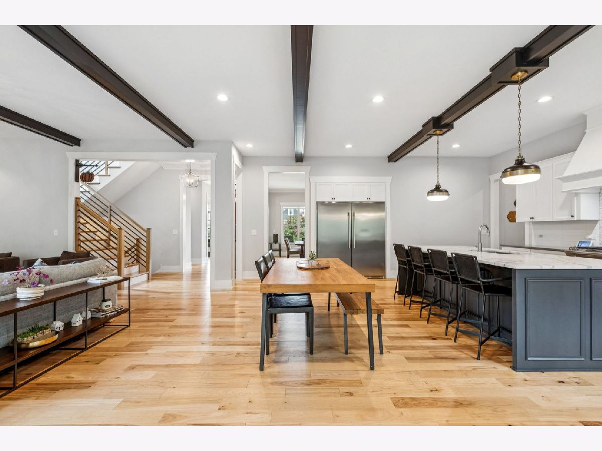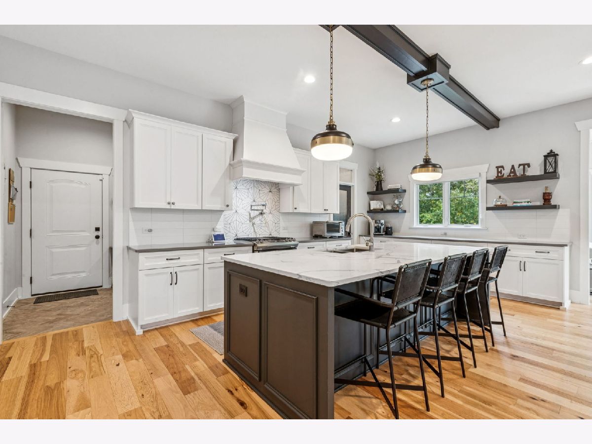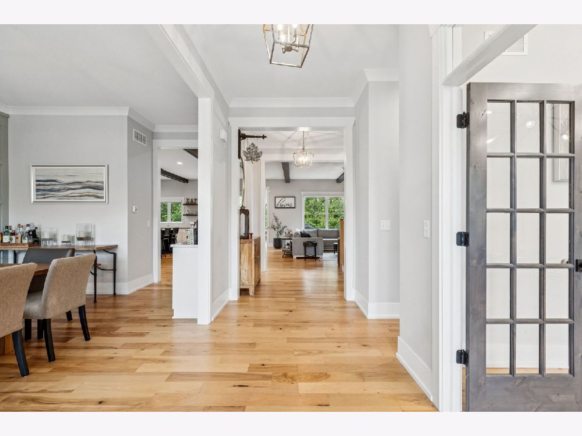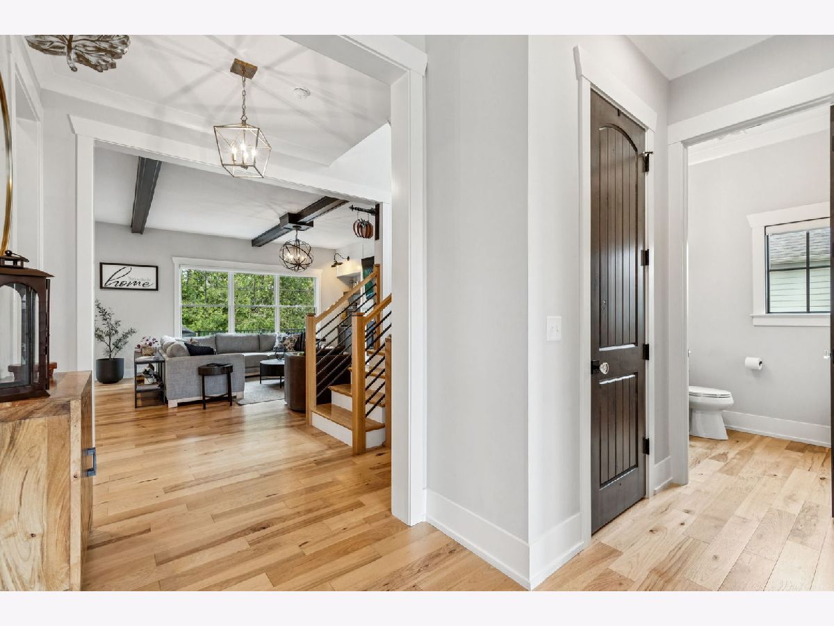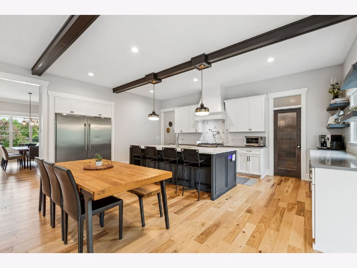 Better-than-new DeMarcco-built modern farmhouse located in the sought-after Highland Woods community of Elgin, Illinois. Built in 2020 with timeless craftsmanship and a fresh, modern design. The main level features beamed ceilings, rich hardwood flooring, and an open layout ideal for entertaining and everyday living. The chef's dream kitchen is appointed with top-of-the-line appliances, custom cabinetry, and a spacious island that connects seamlessly to the dining and great room. A bright sunroom captures backyard views, while a private den provides the perfect home office space. Upstairs, the primary suite impresses with an amazing spa-style bathroom and generous walk-in closets. The walk-out lower level, finished in 2021, offers a large family/rec room with fireplace, wet bar, full bath, bedroom, and private office-ideal for guests or extended living. Energy-efficient Pella windows fill the home with natural light, showcasing every thoughtful detail. Residents of Highland Woods enjoy access to a pool, clubhouse, fitness center, parks, and walking trails, all within the highly regarded District 301 schools. A rare opportunity to own a home that perfectly blends modern comfort, luxury finishes, and community living.