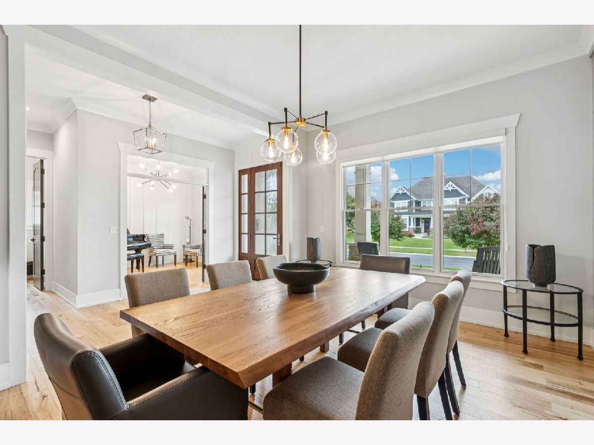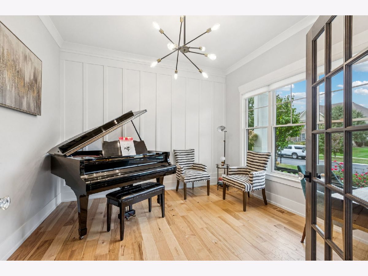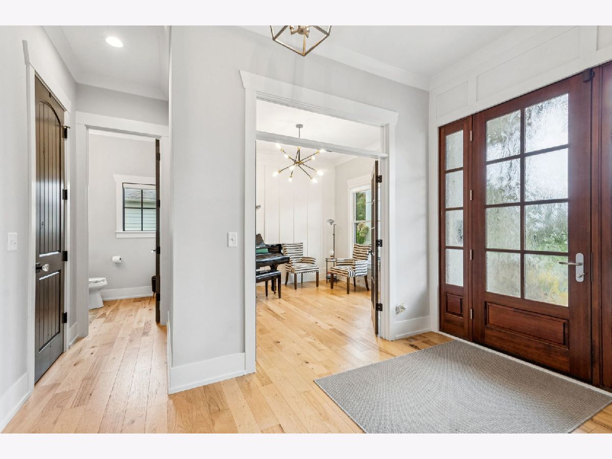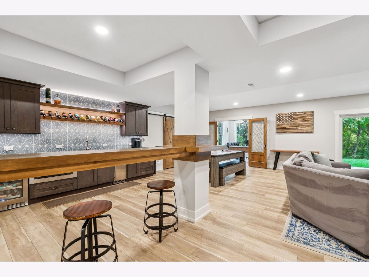 Better-than-new DeMarcco-built modern farmhouse located in the sought-after Highland Woods community of Elgin, Illinois. Built in 2020 with timeless craftsmanship and a fresh, modern design. The main level features beamed ceilings, rich hardwood flooring, and an open layout ideal for entertaining and everyday living. The chef's dream kitchen is appointed with top-of-the-line appliances, custom cabinetry, and a spacious island that connects seamlessly to the dining and great room. A bright sunroom captures backyard views, while a private den provides the perfect home office space. Upstairs, the primary suite impresses with an amazing spa-style bathroom and generous walk-in closets. The walk-out lower level, finished in 2021, offers a large family/rec room with fireplace, wet bar, full bath, bedroom, and private office-ideal for guests or extended living. Energy-efficient Pella windows fill the home with natural light, showcasing every thoughtful detail. Residents of Highland Woods enjoy access to a pool, clubhouse, fitness center, parks, and walking trails, all within the highly regarded District 301 schools. A rare opportunity to own a home that perfectly blends modern comfort, luxury finishes, and community living.