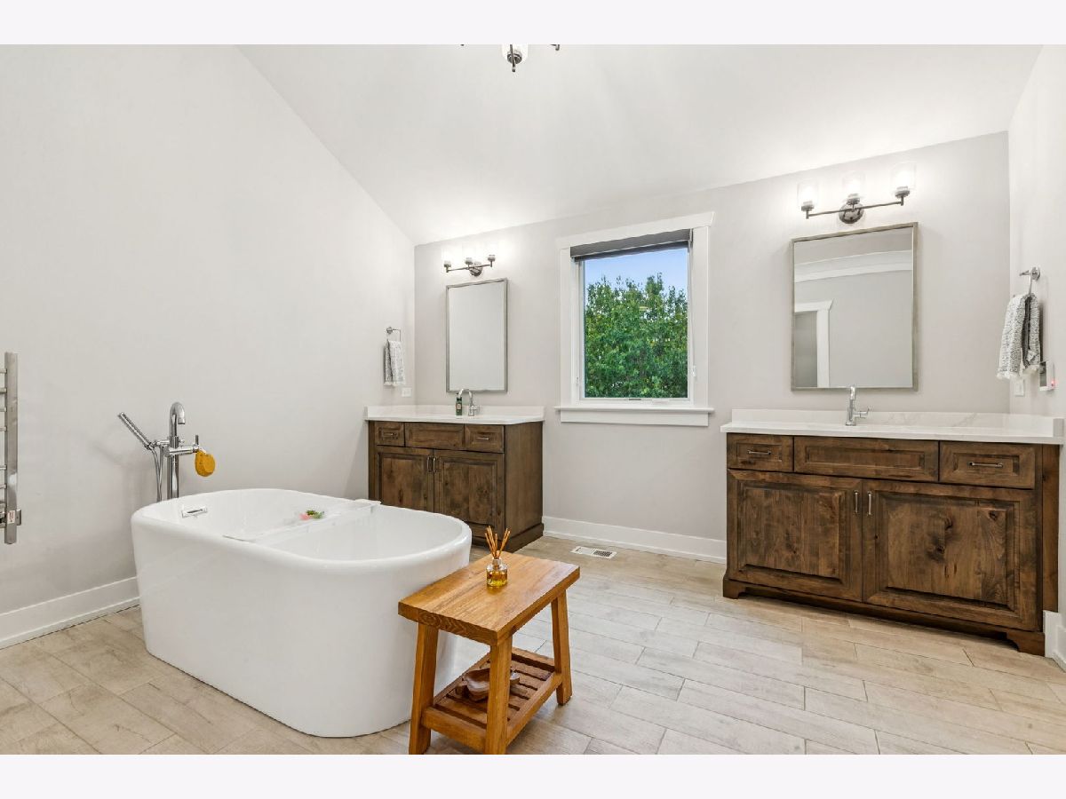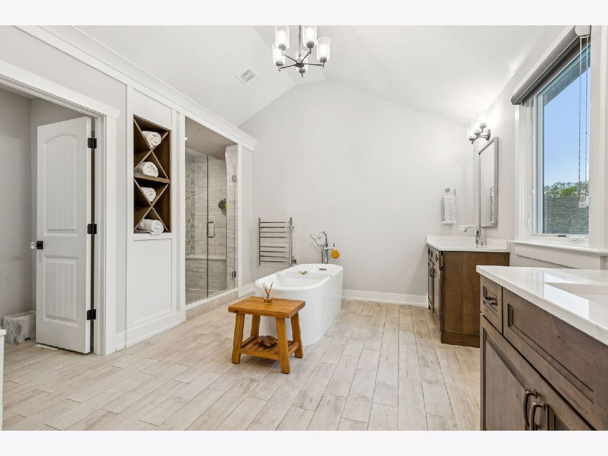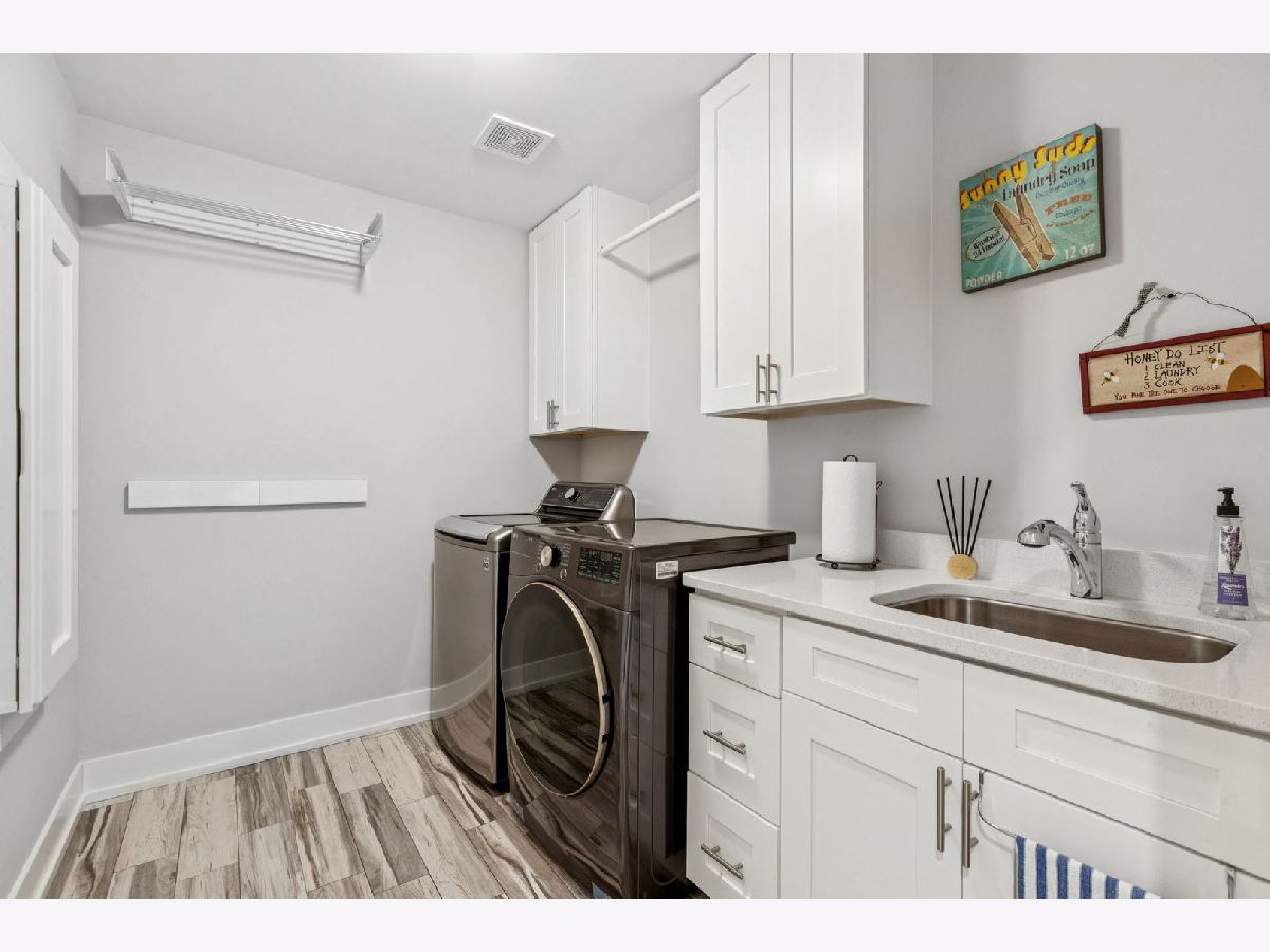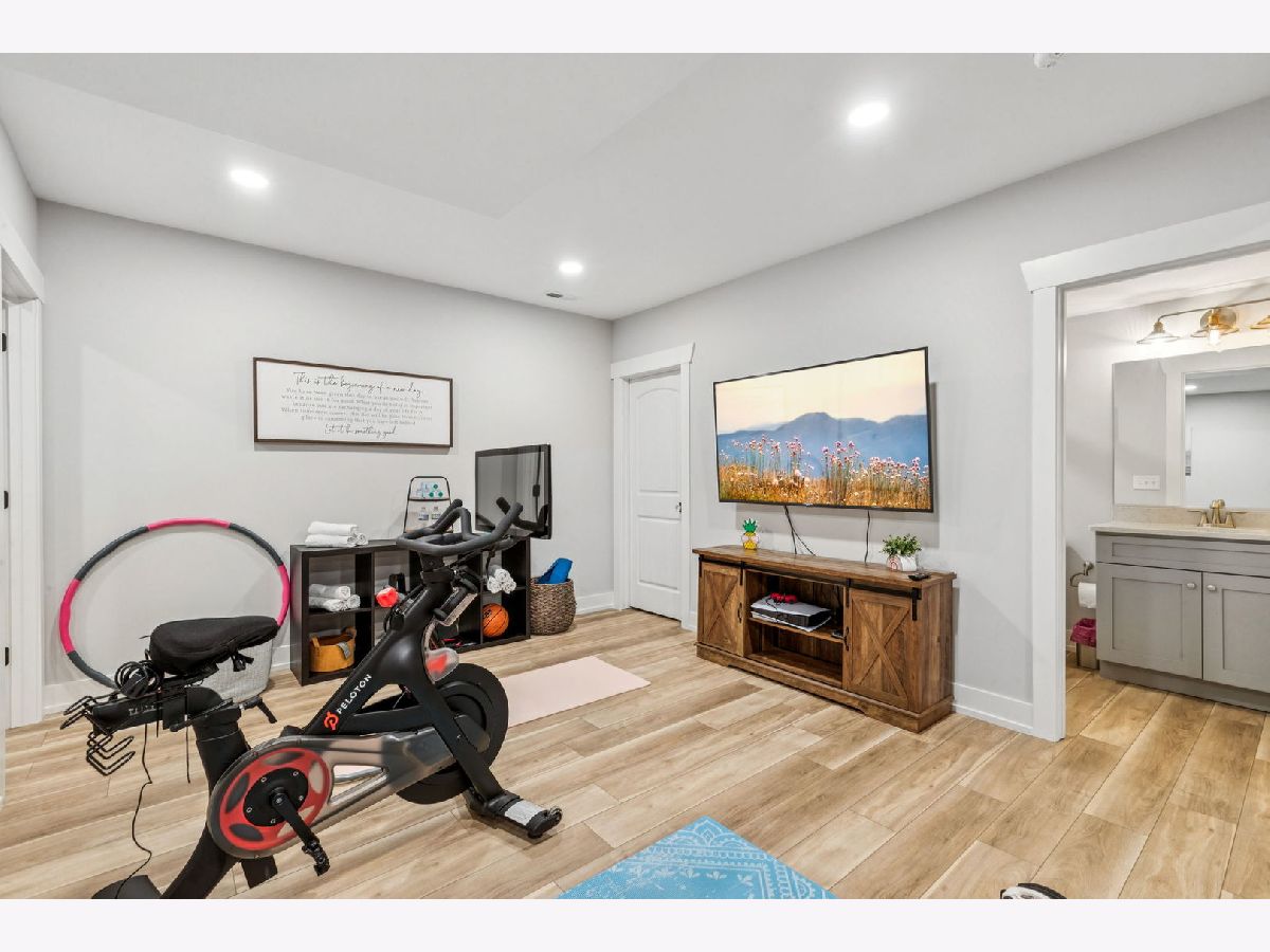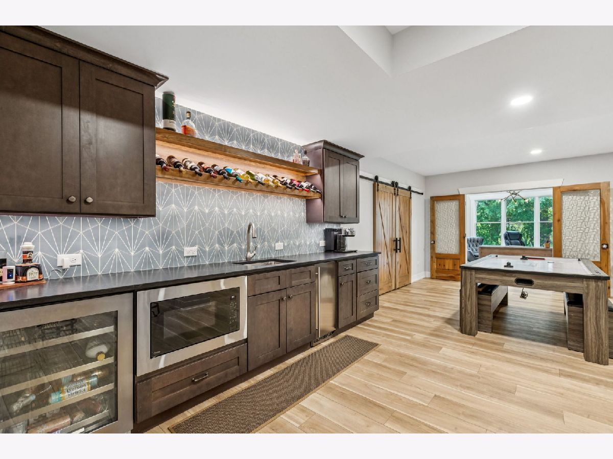 Better-than-new DeMarcco-built modern farmhouse located in the sought-after Highland Woods community of Elgin, Illinois. Built in 2020 with timeless craftsmanship and a fresh, modern design. The main level features beamed ceilings, rich hardwood flooring, and an open layout ideal for entertaining and everyday living. The chef's dream kitchen is appointed with top-of-the-line appliances, custom cabinetry, and a spacious island that connects seamlessly to the dining and great room. A bright sunroom captures backyard views, while a private den provides the perfect home office space. Upstairs, the primary suite impresses with an amazing spa-style bathroom and generous walk-in closets. The walk-out lower level, finished in 2021, offers a large family/rec room with fireplace, wet bar, full bath, bedroom, and private office-ideal for guests or extended living. Energy-efficient Pella windows fill the home with natural light, showcasing every thoughtful detail. Residents of Highland Woods enjoy access to a pool, clubhouse, fitness center, parks, and walking trails, all within the highly regarded District 301 schools. A rare opportunity to own a home that perfectly blends modern comfort, luxury finishes, and community living.