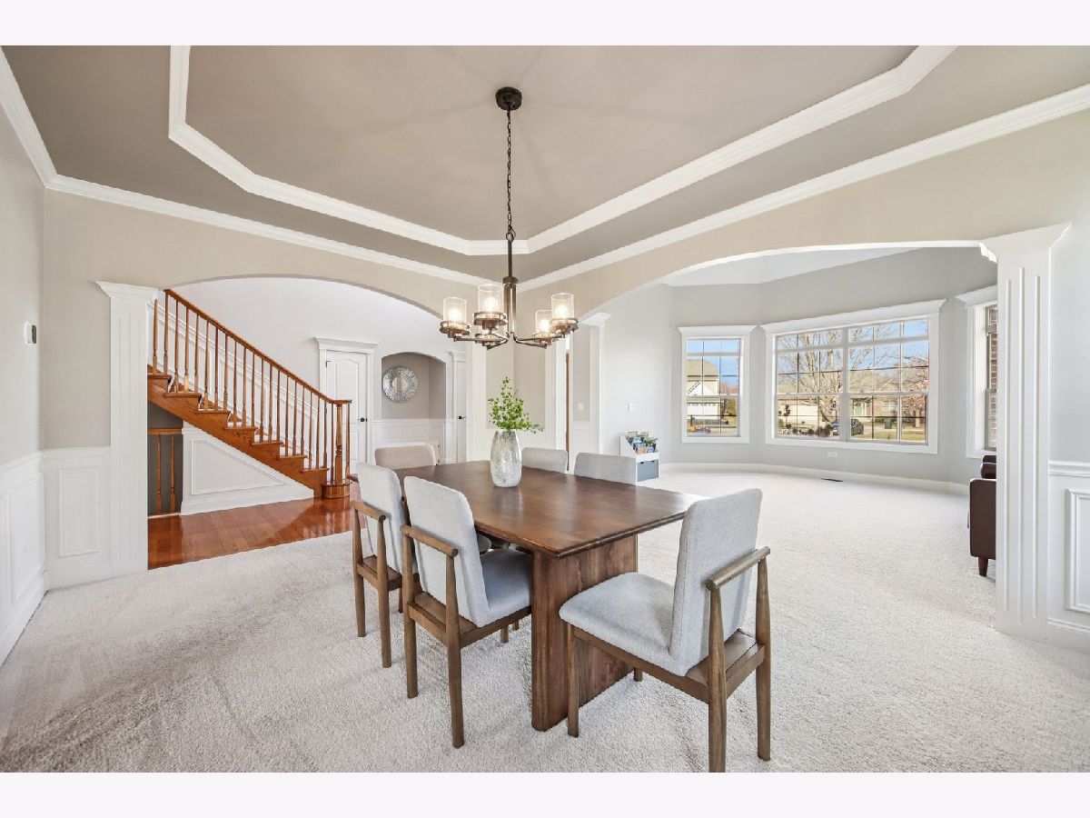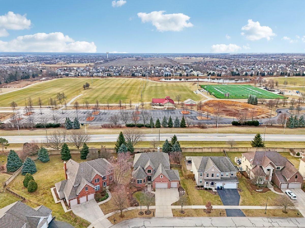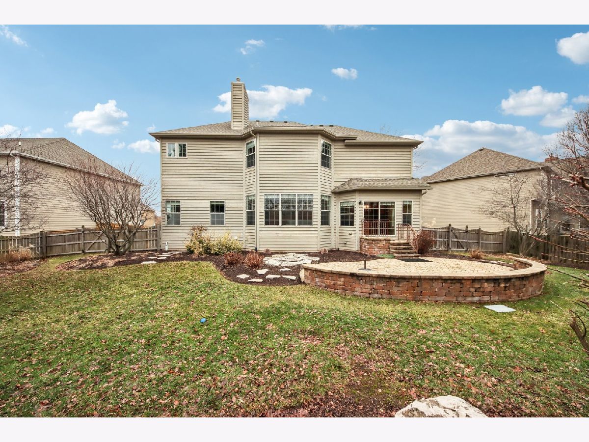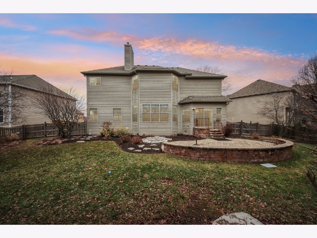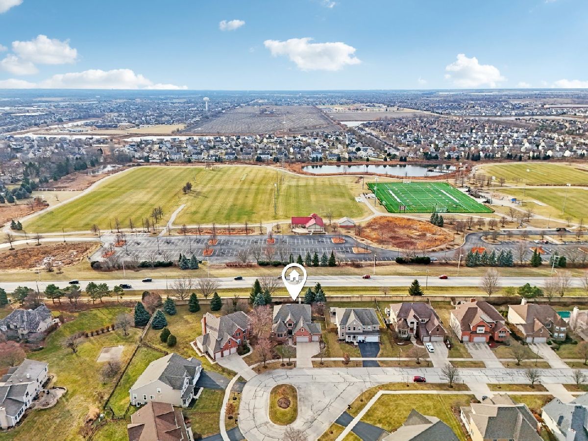 Discover unparalleled elegance in this stunning 5-bedroom, 4.5-bathroom Naperville residence, where sophisticated design meets modern comfort. As you enter the grand foyer, you are immediately greeted by soaring ceilings, gleaming hardwood flooring, and exquisite custom trim and wainscoting that set a tone of refined luxury. To the right of the entrance, a charming built-in bench nook offers a practical yet stylish touch for daily life. The formal living room, anchored by a bright bay window, flows effortlessly into a formal dining room detailed with an elegant tray ceiling, making it the perfect setting for hosting memorable gatherings. The heart of the home is the chef-inspired kitchen, boasting granite countertops, premium stainless steel appliances, a double oven, and a central island. This space opens to a sun-drenched breakfast room with expansive windows and a sliding door that leads to your private outdoor retreat. Step outside to find a fully fenced backyard featuring a large paver patio, perfect for summer entertaining. Seamlessly connected to the kitchen, the family room serves as a cozy sanctuary featuring a tray ceiling with recessed lighting, a warm fireplace, and custom built-in shelving. The main level is thoughtfully designed to include a spacious guest bedroom with a ceiling fan and a private ensuite bath, alongside a dedicated home office with ample closet space and a convenient powder room. The second floor is a sanctuary of comfort, highlighted by a luxurious primary suite complete with a tray ceiling, walk-in closet, and a spa-like ensuite bath featuring a double vanity, a large jetted tub, and a separate shower. The additional bedrooms are equally impressive; the second bedroom enjoys its own private ensuite, while the third and fourth bedrooms share a well-appointed Jack and Jill bathroom. For ultimate convenience, the laundry room is also located on this level. Throughout the upper floor, you will notice striking vaulted ceilings that enhance the sense of space and light. Entertainment options extend to the finished basement, which provides a massive recreation room and plenty of additional storage. Significant recent updates offer peace of mind, including brand-new carpeting throughout the basement and a new carpet runner on the main staircase in 2025, as well as a new furnace and air conditioning system installed in 2024. Ideally located within the boundaries of the highly rated Plainfield District 202 schools, this home combines master craftsmanship with access to top-tier education in a sought-after Naperville location.