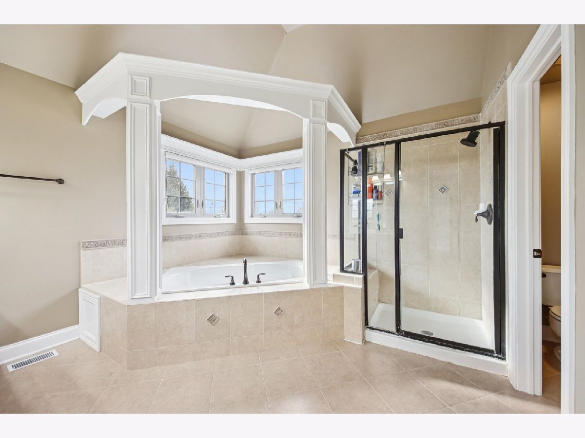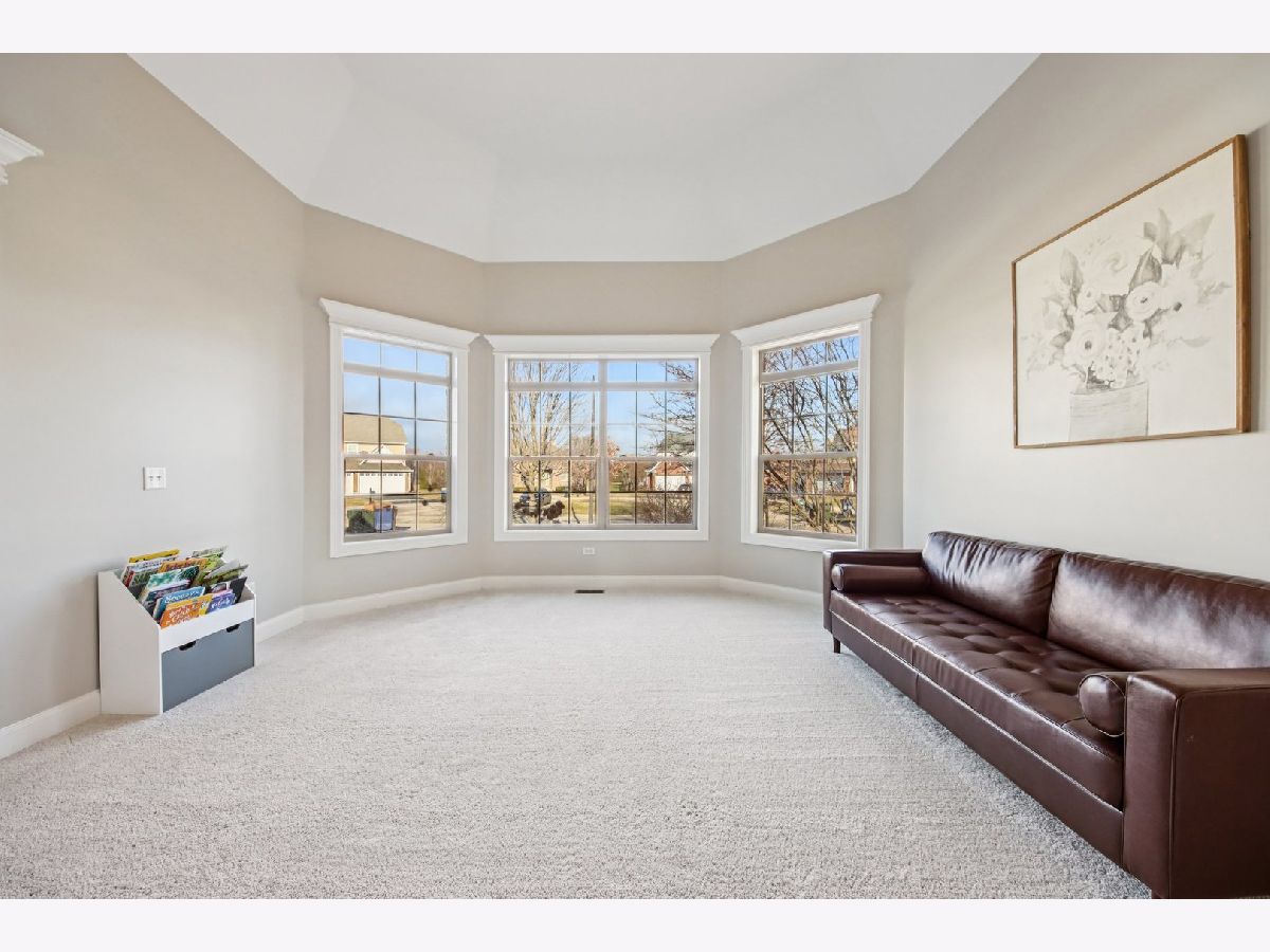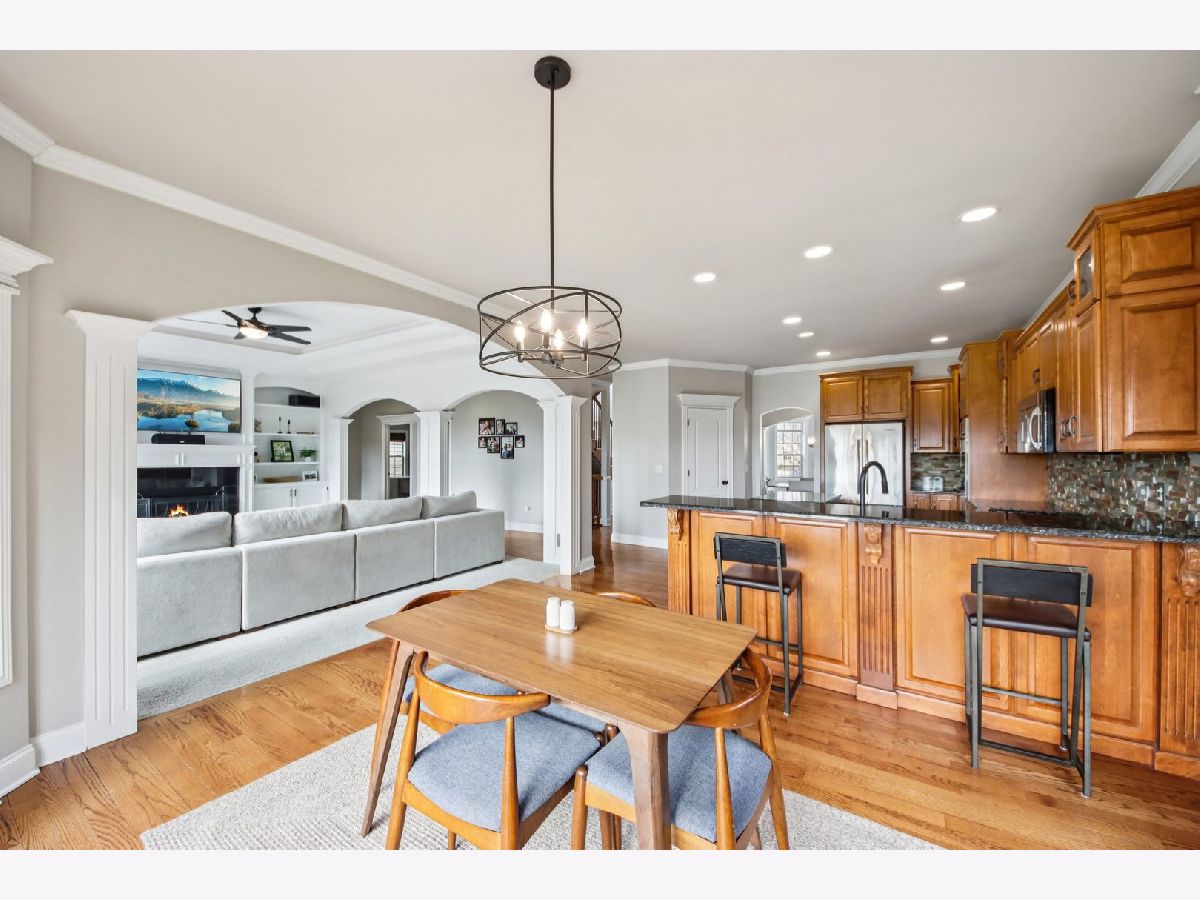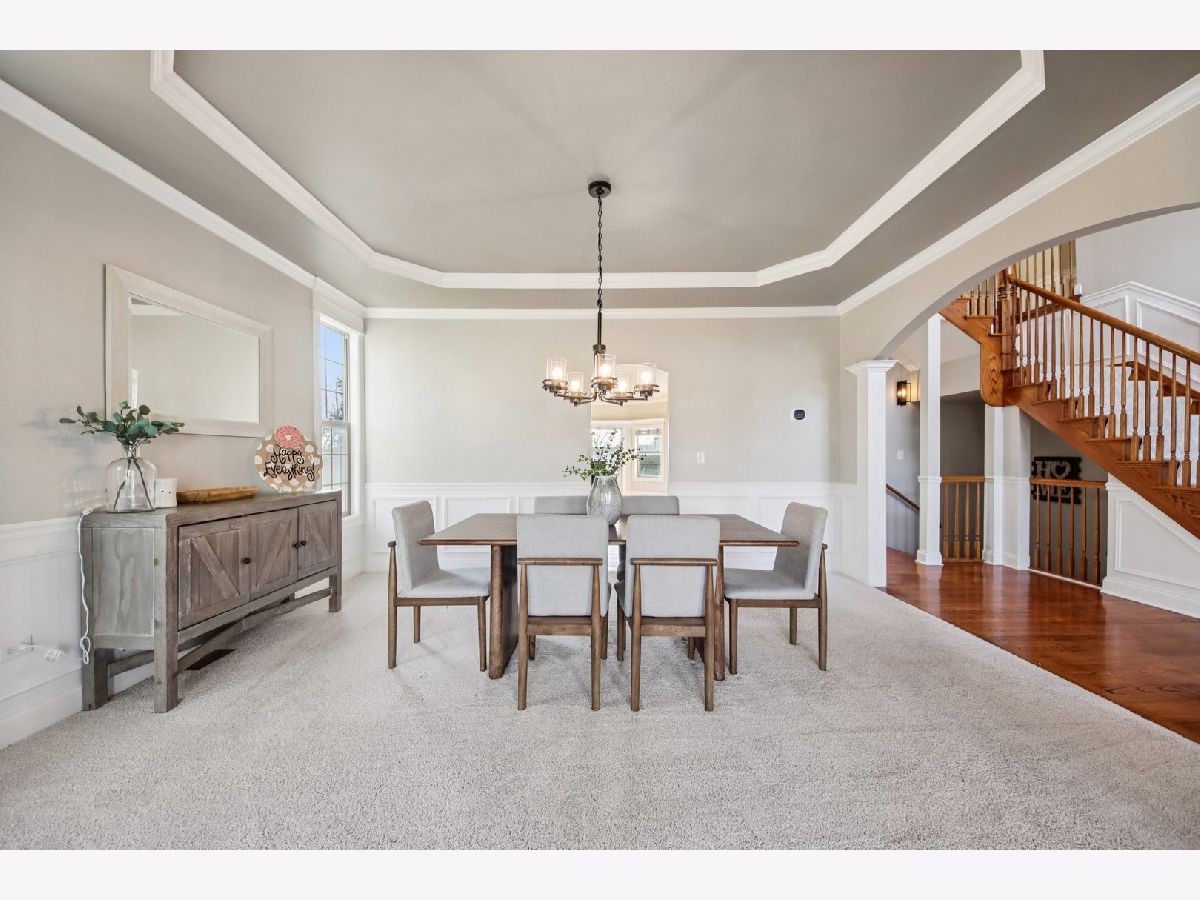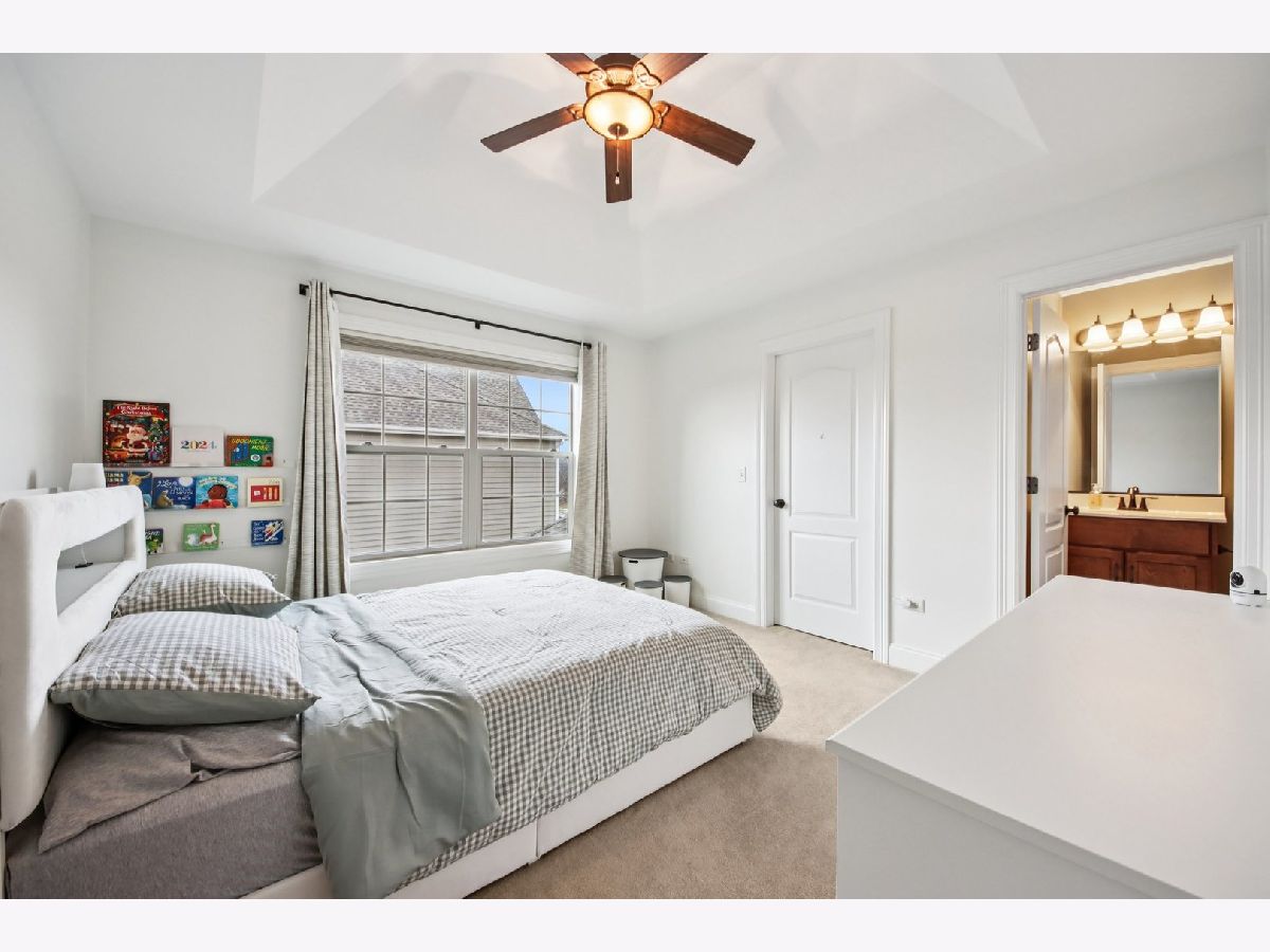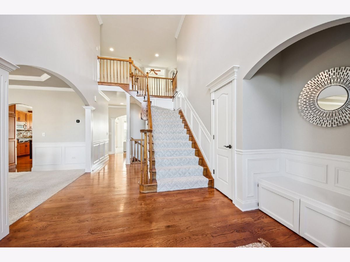 Discover unparalleled elegance in this stunning 5-bedroom, 4.5-bathroom Naperville residence, where sophisticated design meets modern comfort. As you enter the grand foyer, you are immediately greeted by soaring ceilings, gleaming hardwood flooring, and exquisite custom trim and wainscoting that set a tone of refined luxury. To the right of the entrance, a charming built-in bench nook offers a practical yet stylish touch for daily life. The formal living room, anchored by a bright bay window, flows effortlessly into a formal dining room detailed with an elegant tray ceiling, making it the perfect setting for hosting memorable gatherings. The heart of the home is the chef-inspired kitchen, boasting granite countertops, premium stainless steel appliances, a double oven, and a central island. This space opens to a sun-drenched breakfast room with expansive windows and a sliding door that leads to your private outdoor retreat. Step outside to find a fully fenced backyard featuring a large paver patio, perfect for summer entertaining. Seamlessly connected to the kitchen, the family room serves as a cozy sanctuary featuring a tray ceiling with recessed lighting, a warm fireplace, and custom built-in shelving. The main level is thoughtfully designed to include a spacious guest bedroom with a ceiling fan and a private ensuite bath, alongside a dedicated home office with ample closet space and a convenient powder room. The second floor is a sanctuary of comfort, highlighted by a luxurious primary suite complete with a tray ceiling, walk-in closet, and a spa-like ensuite bath featuring a double vanity, a large jetted tub, and a separate shower. The additional bedrooms are equally impressive; the second bedroom enjoys its own private ensuite, while the third and fourth bedrooms share a well-appointed Jack and Jill bathroom. For ultimate convenience, the laundry room is also located on this level. Throughout the upper floor, you will notice striking vaulted ceilings that enhance the sense of space and light. Entertainment options extend to the finished basement, which provides a massive recreation room and plenty of additional storage. Significant recent updates offer peace of mind, including brand-new carpeting throughout the basement and a new carpet runner on the main staircase in 2025, as well as a new furnace and air conditioning system installed in 2024. Ideally located within the boundaries of the highly rated Plainfield District 202 schools, this home combines master craftsmanship with access to top-tier education in a sought-after Naperville location.