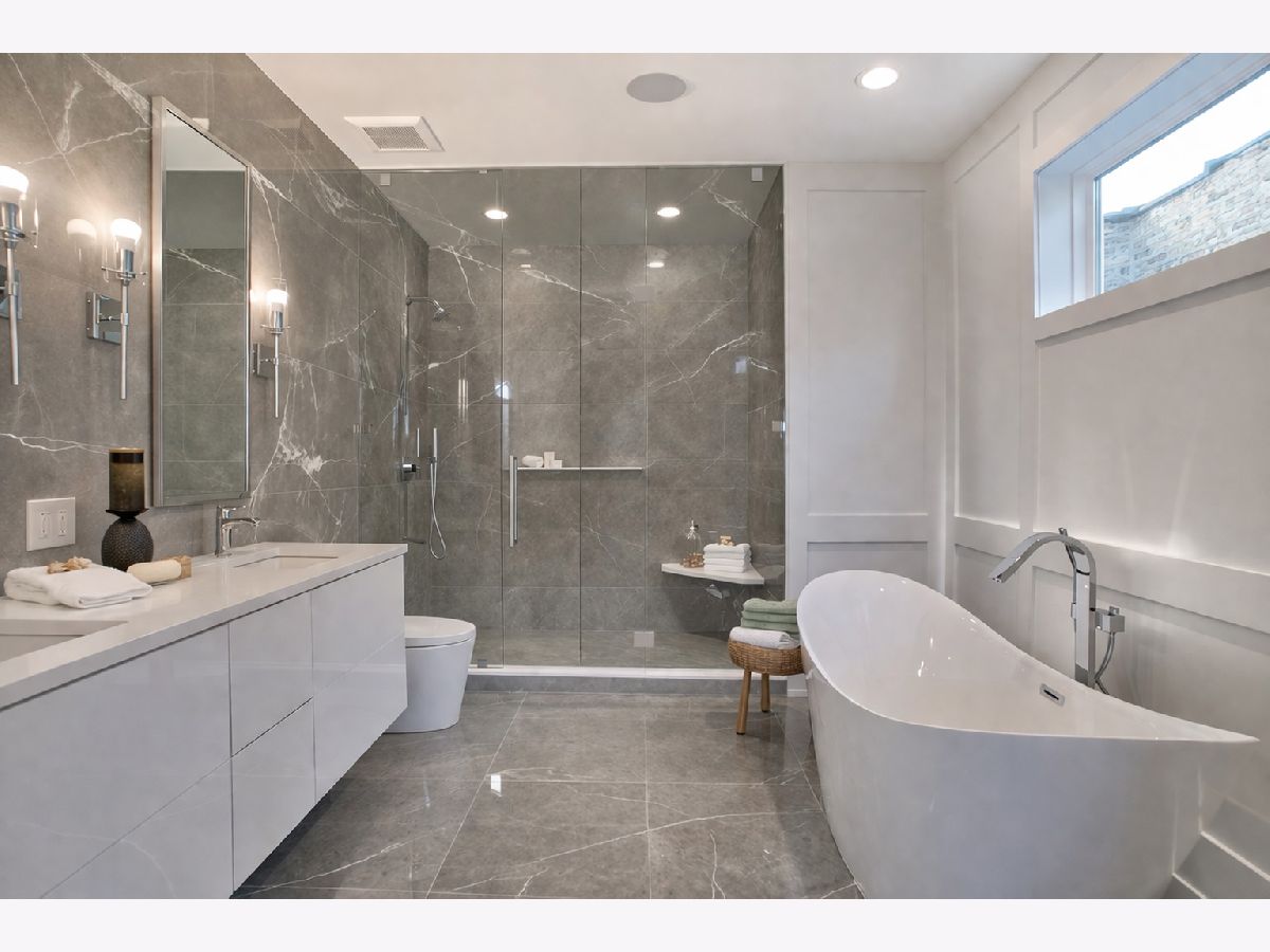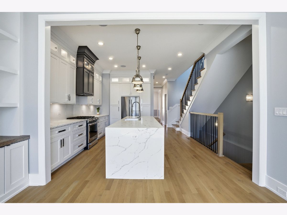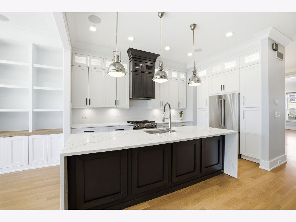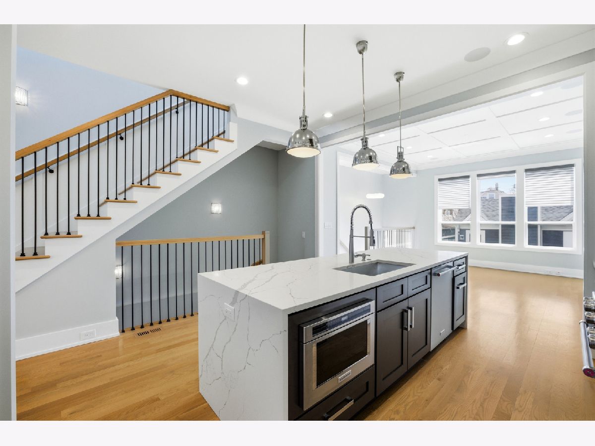 Welcome to 3721 W Wabansia-a modern, luxurious home combining comfort, style, and functionality! Step inside to elegant hardwood floors, complemented by an abundance of natural light from both northern and southern exposures. The home's bright and airy ambiance is enhanced by recessed lighting, striking chandeliers, and multiple skylights. The gourmet kitchen is a chef's dream, featuring high-end stainless-steel appliances, custom cabinetry and an XL island with quartz waterfall counters. The kitchen opens to the cozy family room featuring a wall of built-in shelving and cabinets, gas fireplace, and elegant architectural moldings. The formal living room and dining room offer the perfect space for entertainment, while the media/recreation room (with wet bar) provides a cozy retreat for leisure. All bedrooms are generously sized and include ample closet space with custom organizers. The primary suite features dual walk-in closets and a spa-like ensuite retreat with a marble heated floor, free standing soaking tub and a massive glass shower. This Spring, retreat to your private backyard oasis. Build a cozy fire in the woodburning fireplace and relax while you watch your fish swim in their pond under the cascading waterfall. The Lilly pads will soon be in full bloom! In addition to all the modern conveniences like dual zone heating and cooling, two dedicated laundry rooms and a radon mitigation system, this home is wired for sound on all three levels plus the backyard. It is also wired for the Ring security system, whole home ethernet and is equipped with outdoor motion lights and security cameras. This high-tech home also features app-controlled lighting, motorized blinds, and app-controlled door locks on all doors (including the garage). Close to the 606 Trail, McCormick YMCA, Humbolt Park and downtown Logan Square, this home has it all. Don't miss your chance to make this contemporary masterpiece your own!