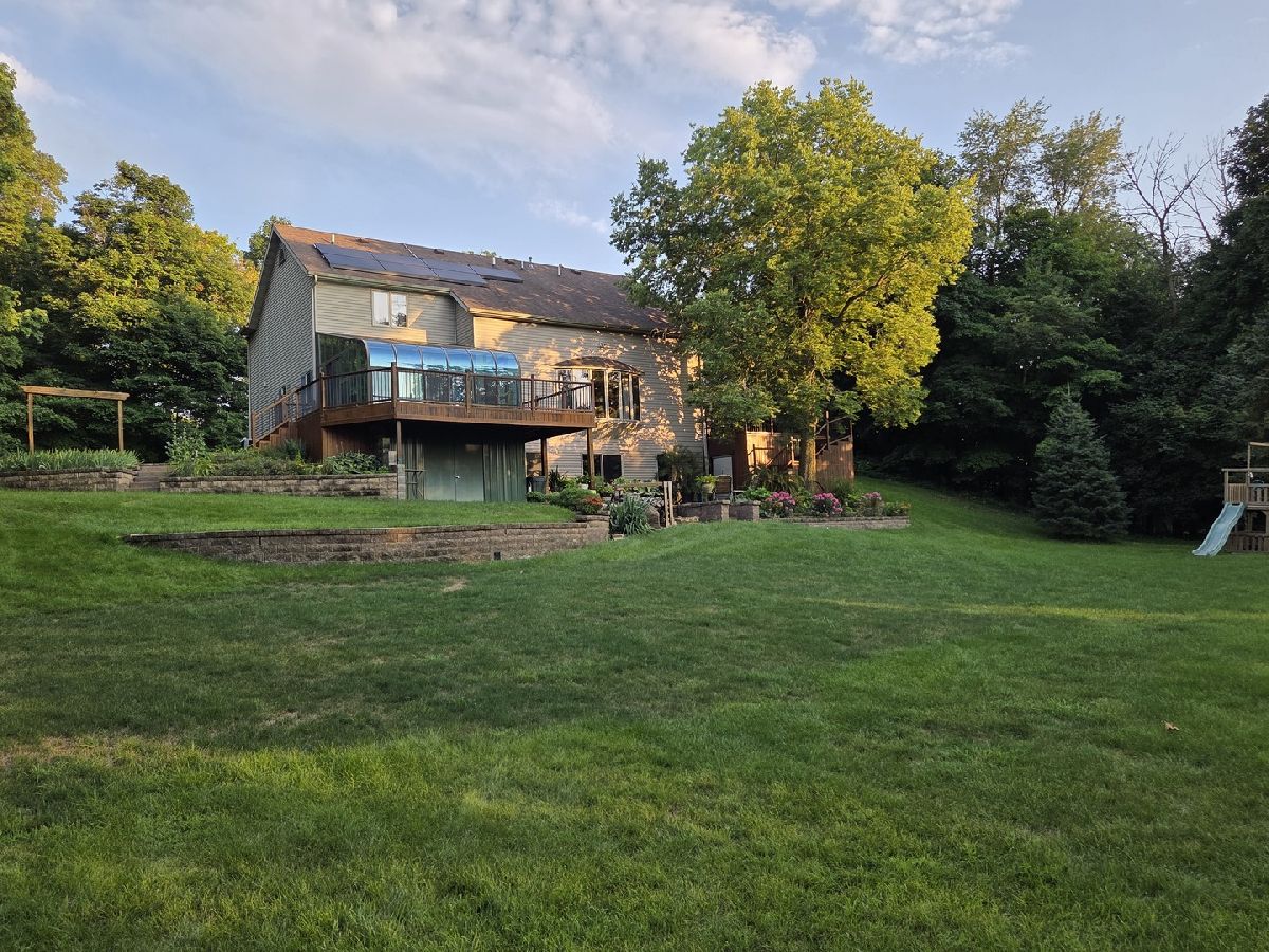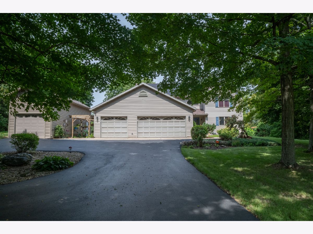 This two-story home offers approximately 4,000 square feet with four bedrooms, three and a half baths, a finished walkout basement, and is situated on a private 0.85-acre lot adjacent to the Sangamon River. The eat-in kitchen includes a center island seating up to five people, granite countertops, tile backsplash, under-cabinet lighting, a pantry, and a breakfast nook leading to a large deck. The laundry room is between the 3-car heated garage and kitchen. The two-story living room features a bay window with a window seat facing the backyard. The first-floor master suite contains separate closets with pocket doors, an updated tiled walk-in shower, and a garden tub. A 16 x 16 sunroom, accessible from the master bedroom, is surrounded by a deck. The second level has three sizeable bedrooms with ample closet space. The updated bathroom includes a walk-in shower equipped with a "Shower Tower." The catwalk overlooks the 13 x 13 entryway and living room. The finished walkout basement provides a family room, game room, bar area, full bath, and additional storage with shelving. Additional outdoor amenities include a deck off the kitchen, a 16 x 32 patio with a firepit, and a 15 x 16 workshop beneath the sunroom. The property features landscaping, with custom built retaining walls, mature trees, and views of the river. Wildlife such as deer and wild turkeys may be observed on the grounds. You'll love the blacktop asphalt drive If additional storage or workspace is required, there is a 12 x 38 shed with a loft that includes an electric lift. The heated three-car garage features built-in storage cabinets and a pull-down stairway. The property also has a circular driveway and is situated down the street from the golf course. There is also a Generac Generator that stays. The home was built with 2x6 walls. The roof was replace in 2015 with 50 year shingles, HAVC and water heater were replaced in 2019. High Speed internet is available so working from home, streaming or gaming shouldn't be a problem.
