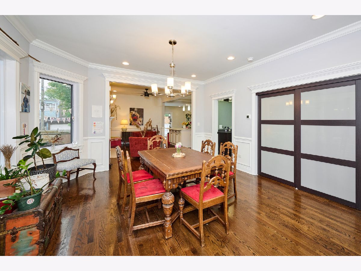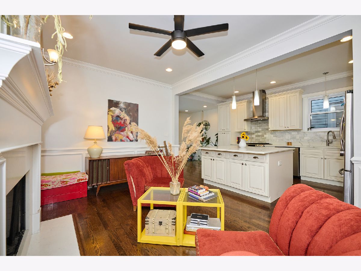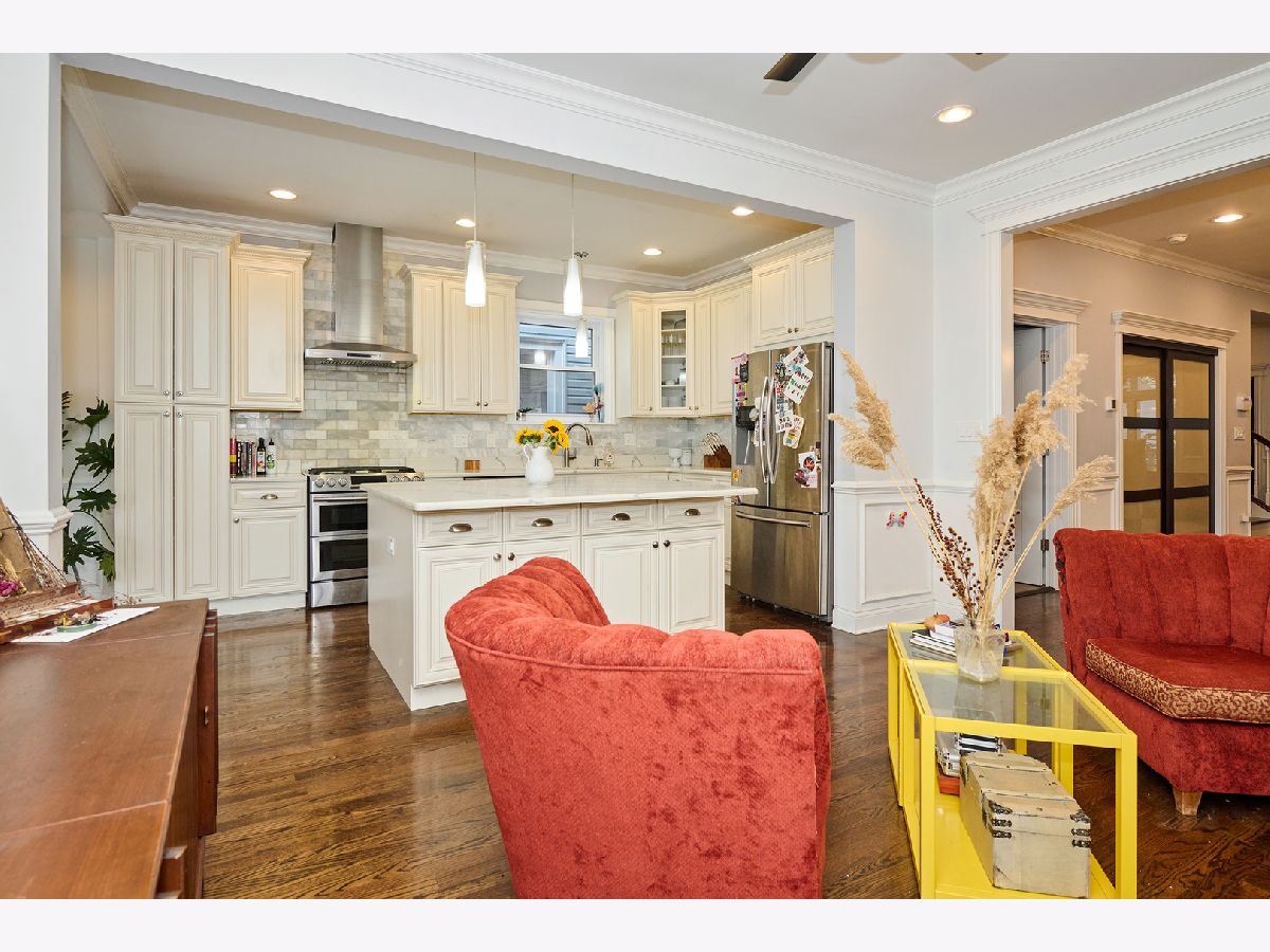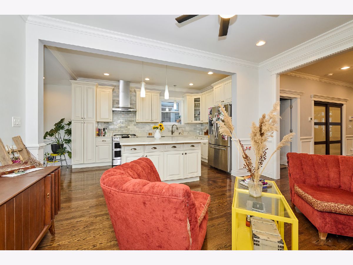 Experience luxury living in this completely renovated, sun-filled 5-bedroom, 3.1-bath single-family home showcasing a modern open-concept design. The chef's kitchen features quartz countertops, a spacious island, and premium stainless steel appliances, perfect for everyday living and entertaining. Elegant finishes include hardwood floors, crown and chair rail molding, and designer lighting throughout. Enjoy year-round comfort with a multi-zoned, high-efficiency HVAC system with Wi-Fi thermostats. Additional highlights include dual electric car charging stations and a drain tile system with overhead sewers for peace of mind, and a fully finished basement with a convenient kitchenette, ideal for guests or extended family. Relax or host gatherings on the expansive rear deck. Conveniently located just 0.75 miles from the Brown Line, offering easy access to everything the city has to offer.
