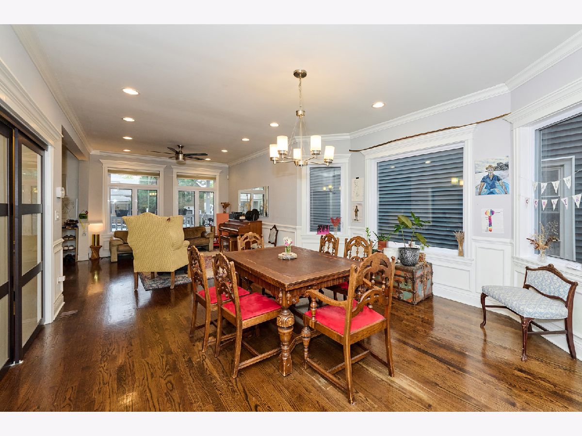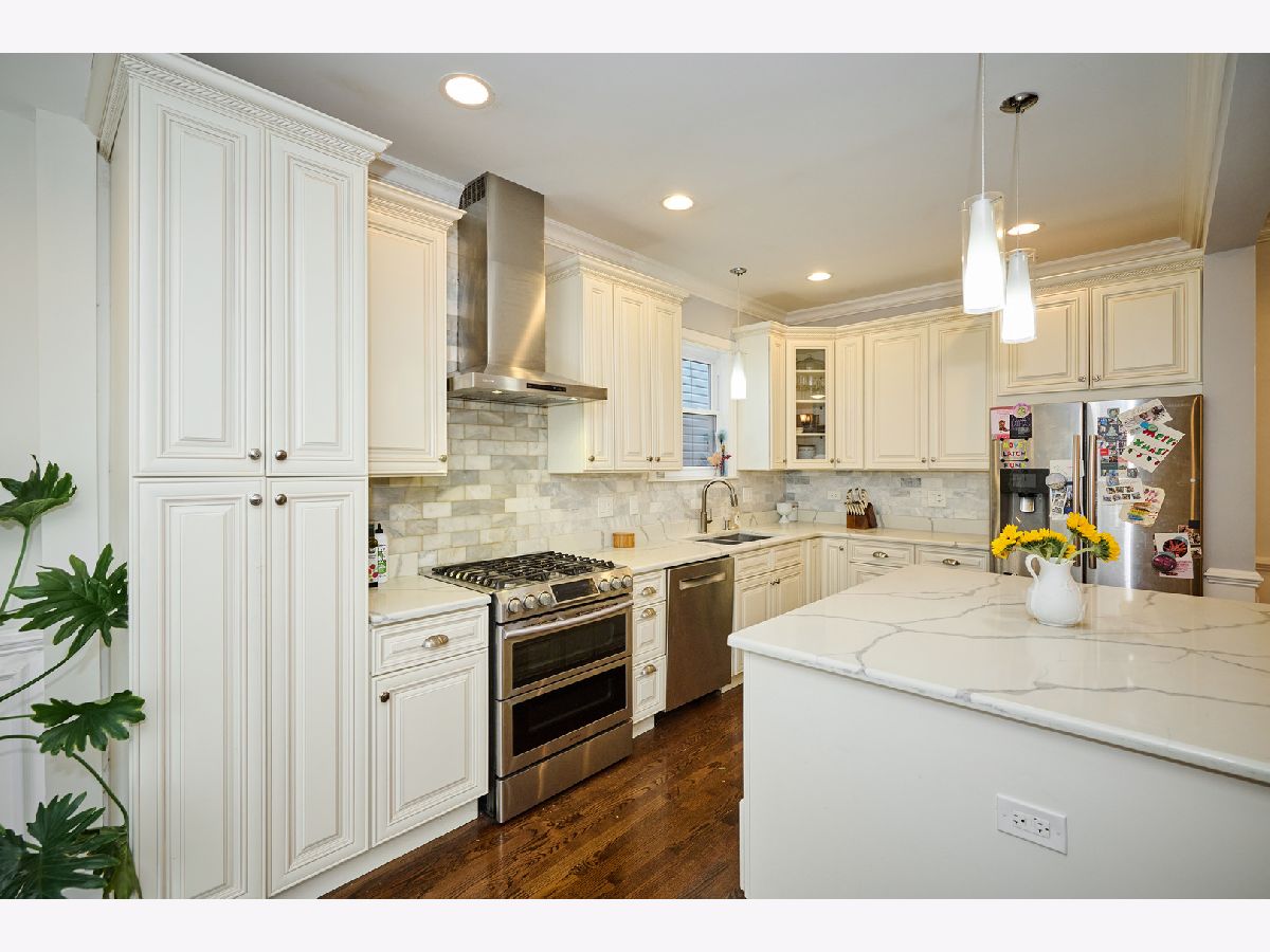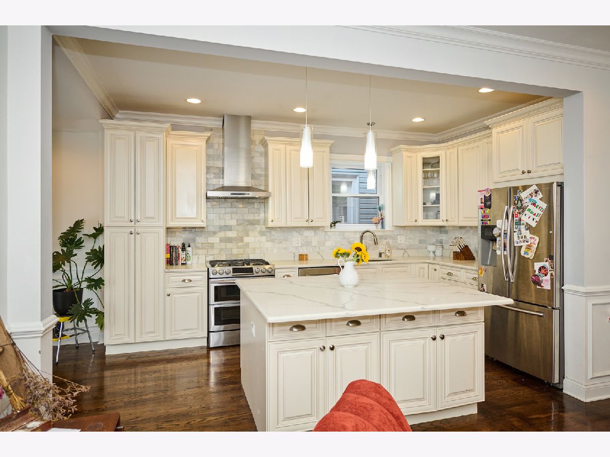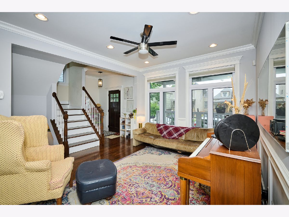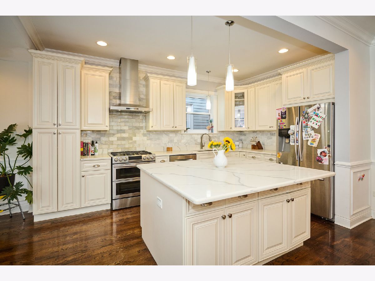 Experience luxury living in this completely renovated, sun-filled 5-bedroom, 3.1-bath single-family home showcasing a modern open-concept design. The chef's kitchen features quartz countertops, a spacious island, and premium stainless steel appliances, perfect for everyday living and entertaining. Elegant finishes include hardwood floors, crown and chair rail molding, and designer lighting throughout. Enjoy year-round comfort with a multi-zoned, high-efficiency HVAC system with Wi-Fi thermostats. Additional highlights include dual electric car charging stations and a drain tile system with overhead sewers for peace of mind, and a fully finished basement with a convenient kitchenette, ideal for guests or extended family. Relax or host gatherings on the expansive rear deck. Conveniently located just 0.75 miles from the Brown Line, offering easy access to everything the city has to offer.
