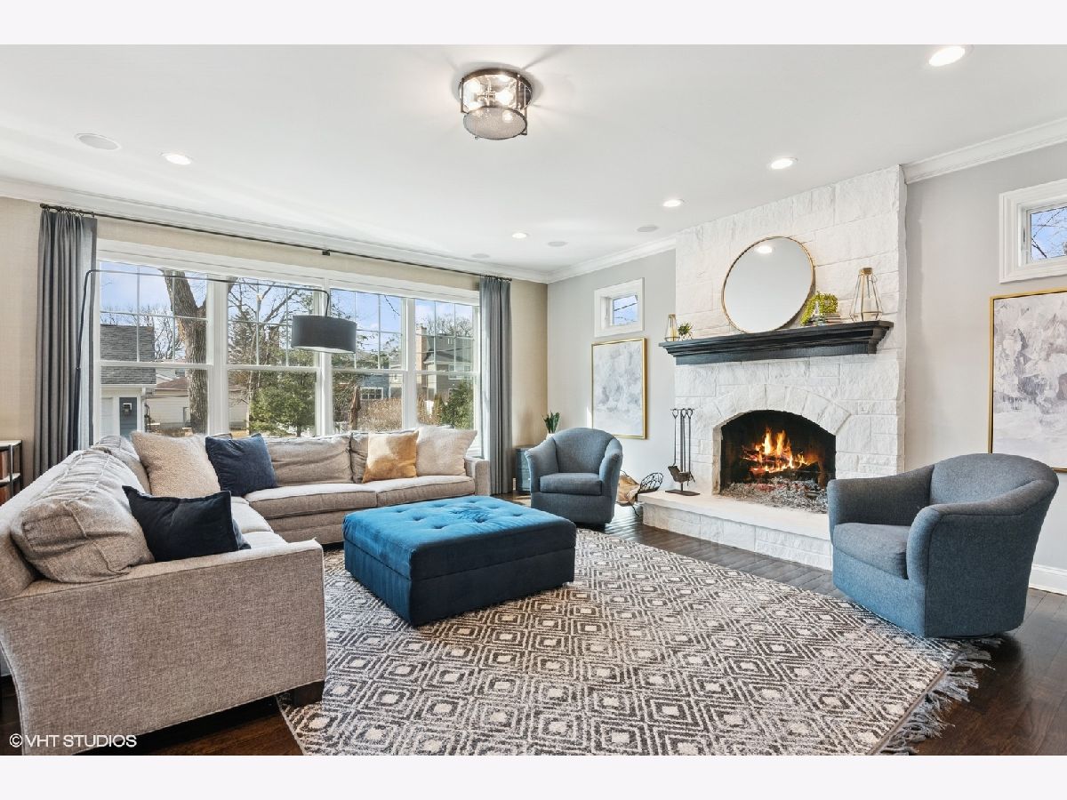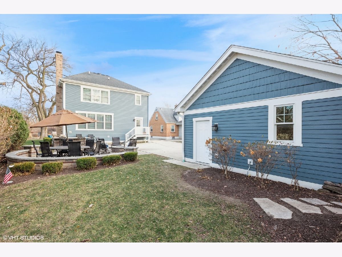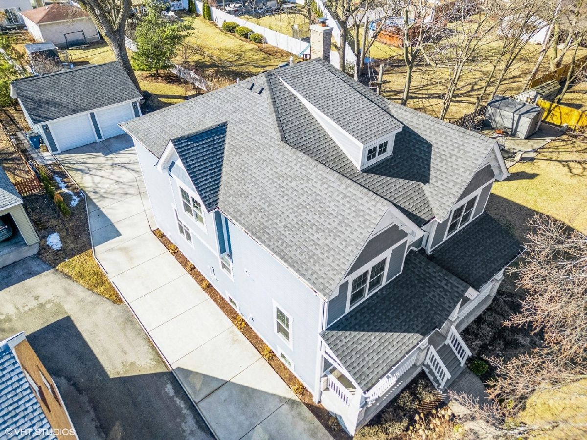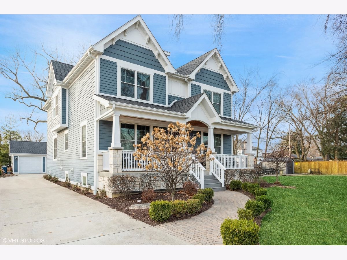 A true beauty from the inside and out! This stunning rebuild blends modern inspiration with timeless elegance in a prime location across from a modern park inclusive of baseball field, garden, and 1/4 mile track for runners & dog walkers too! The schools, shopping, downtown, and major roads are within short distance. Watch the children play at the park across the street from the large front porch or through the sunfilled front windows, enjoying a serene, neighborhood setting. Designed to entertain seemlessly with a growing family both indoors and outdoors. The home sits on a huge 58 x 170 lot on a quiet dead end street offering extensive parking with a long driveway that accommodates multiple cars, plus a massive outdoor 550 square foot shed for exceptional storage or hobby space. Inside, an open floor plan with generous room sizes is enhanced by rich hardwood floors, detailed wainscoting, trim, crown molding, and custom built-ins throughout, creating a warm yet refined atmosphere. The spacious kitchen features a large island, marble countertops, abundant cabinetry, and newer appliance flowing seamlessly into the dining and family rooms anchored by a cozy wood-burning gas fireplace, with so many windows and tasteful window treatments that invite abundant natural light into every corner. Upstairs, the second floor offers four bedrooms in which all just had new carpeting installed, including an en suite primary retreat with walk-in closet and spa-like bath with double vanities, private commode, and steam shower, along with an additional full bath and a separate laundry room for everyday convenience. The finished basement with tall ceilings extends the living space with a huge recreational area, highlighted by an expansive cabinet wall for organized storage, plus a fifth bedroom, full bath, and a versatile bonus room to tailor to your lifestyle. Outdoor entertaining is truly stress free and comfortable in the thoughtfully designed backyard oasis, which showcases an outdoor kitchen with granite countertops, built in grill with natural gas line, refrigerator and generous prep space, along with a large paver patio and sitting wall that easily hosts gatherings of family and friends especially sitting by the fire pit layered with glass rocks powered by a natural gas line. With its blend of luxury finishes, smart functionality, and outstanding indoor/outdoor living, this is a move-in, turnkey ready home with tons of storage that will be easy to enjoy upon moving in.