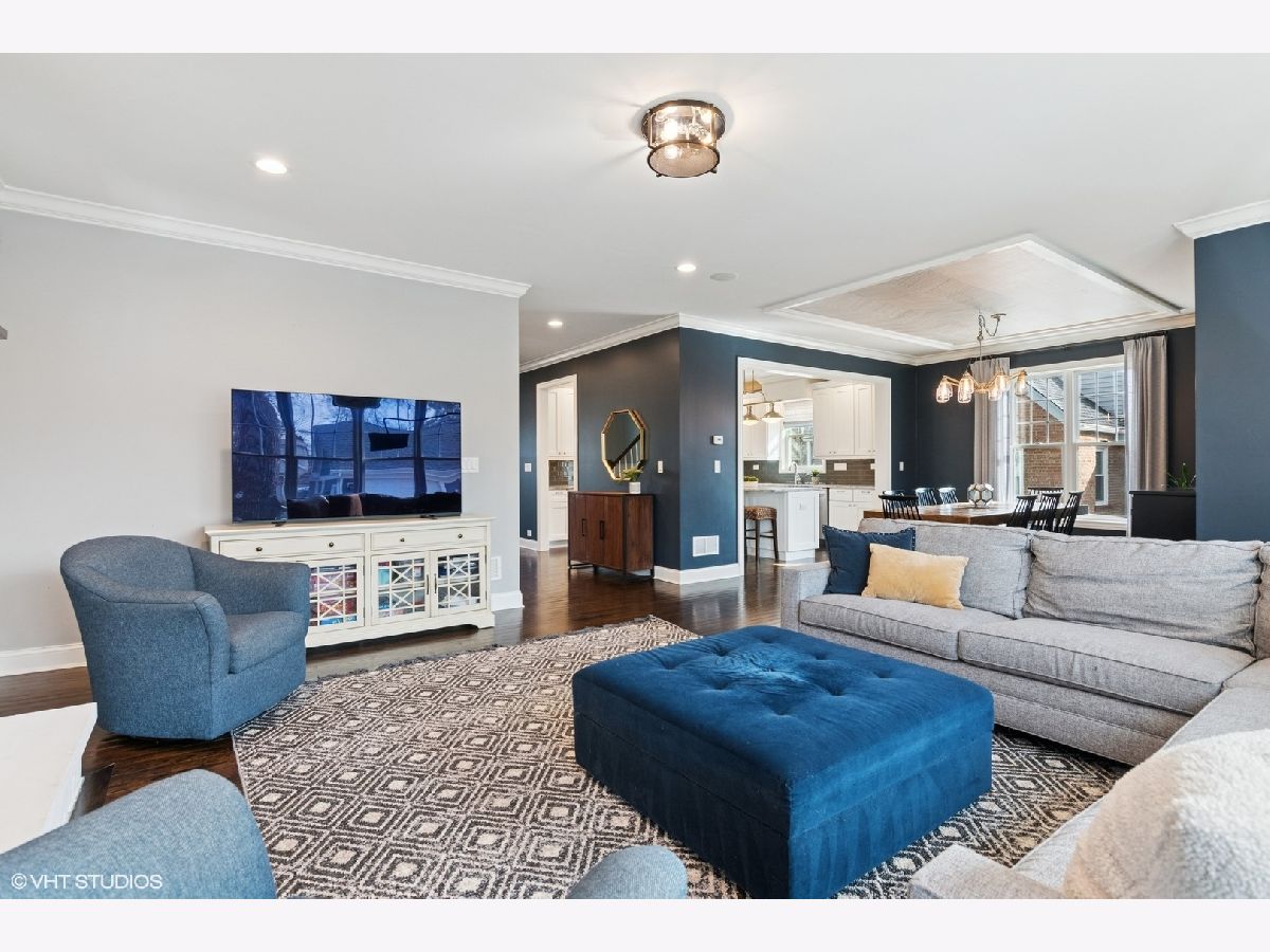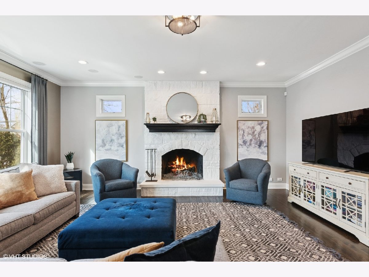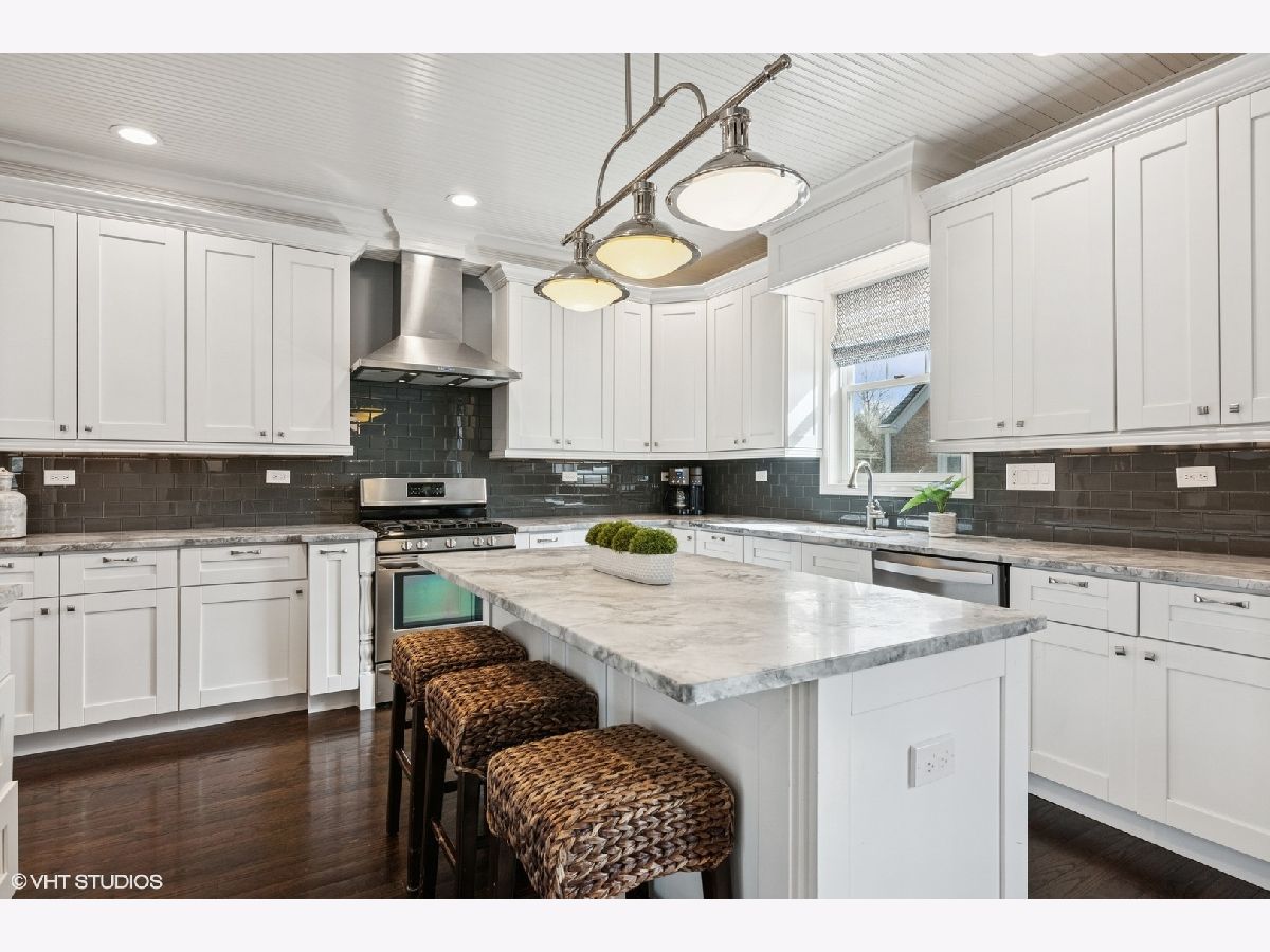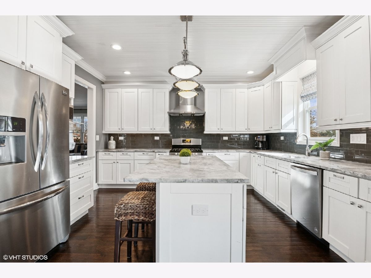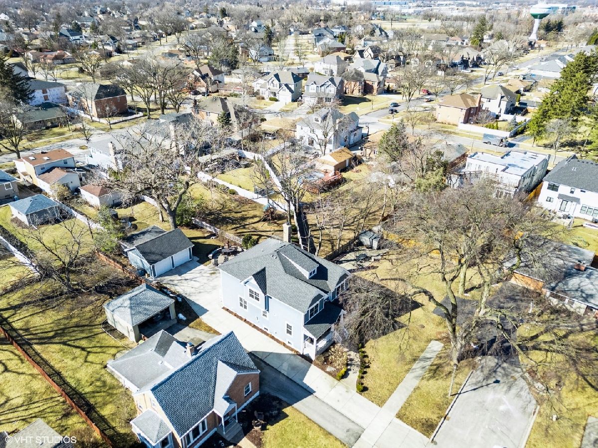 A true beauty from the inside and out! This stunning rebuild blends modern inspiration with timeless elegance in a prime location across from a modern park inclusive of baseball field, garden, and 1/4 mile track for runners & dog walkers too! The schools, shopping, downtown, and major roads are within short distance. Watch the children play at the park across the street from the large front porch or through the sunfilled front windows, enjoying a serene, neighborhood setting. Designed to entertain seemlessly with a growing family both indoors and outdoors. The home sits on a huge 58 x 170 lot on a quiet dead end street offering extensive parking with a long driveway that accommodates multiple cars, plus a massive outdoor 550 square foot shed for exceptional storage or hobby space. Inside, an open floor plan with generous room sizes is enhanced by rich hardwood floors, detailed wainscoting, trim, crown molding, and custom built-ins throughout, creating a warm yet refined atmosphere. The spacious kitchen features a large island, marble countertops, abundant cabinetry, and newer appliance flowing seamlessly into the dining and family rooms anchored by a cozy wood-burning gas fireplace, with so many windows and tasteful window treatments that invite abundant natural light into every corner. Upstairs, the second floor offers four bedrooms in which all just had new carpeting installed, including an en suite primary retreat with walk-in closet and spa-like bath with double vanities, private commode, and steam shower, along with an additional full bath and a separate laundry room for everyday convenience. The finished basement with tall ceilings extends the living space with a huge recreational area, highlighted by an expansive cabinet wall for organized storage, plus a fifth bedroom, full bath, and a versatile bonus room to tailor to your lifestyle. Outdoor entertaining is truly stress free and comfortable in the thoughtfully designed backyard oasis, which showcases an outdoor kitchen with granite countertops, built in grill with natural gas line, refrigerator and generous prep space, along with a large paver patio and sitting wall that easily hosts gatherings of family and friends especially sitting by the fire pit layered with glass rocks powered by a natural gas line. With its blend of luxury finishes, smart functionality, and outstanding indoor/outdoor living, this is a move-in, turnkey ready home with tons of storage that will be easy to enjoy upon moving in.