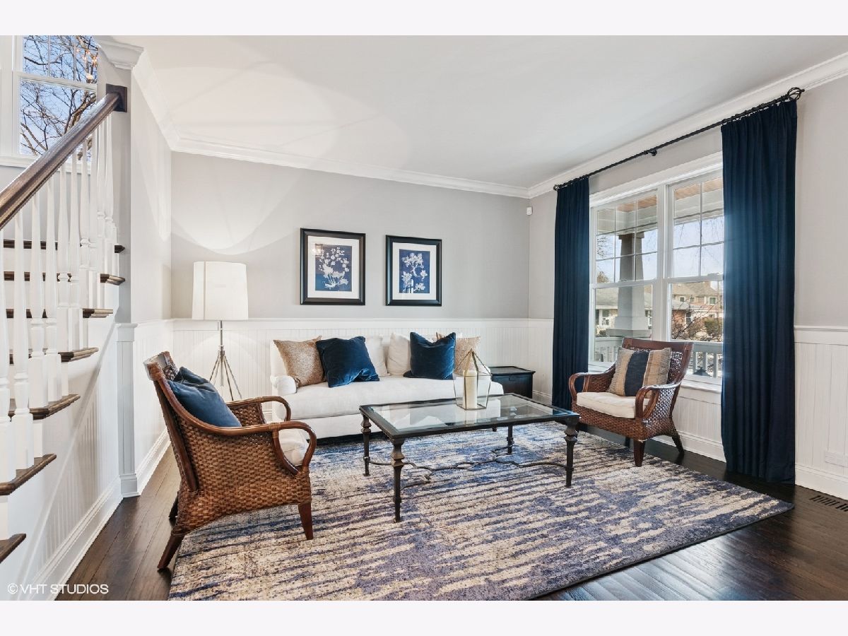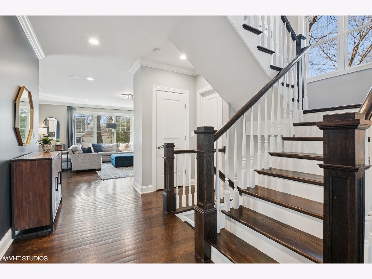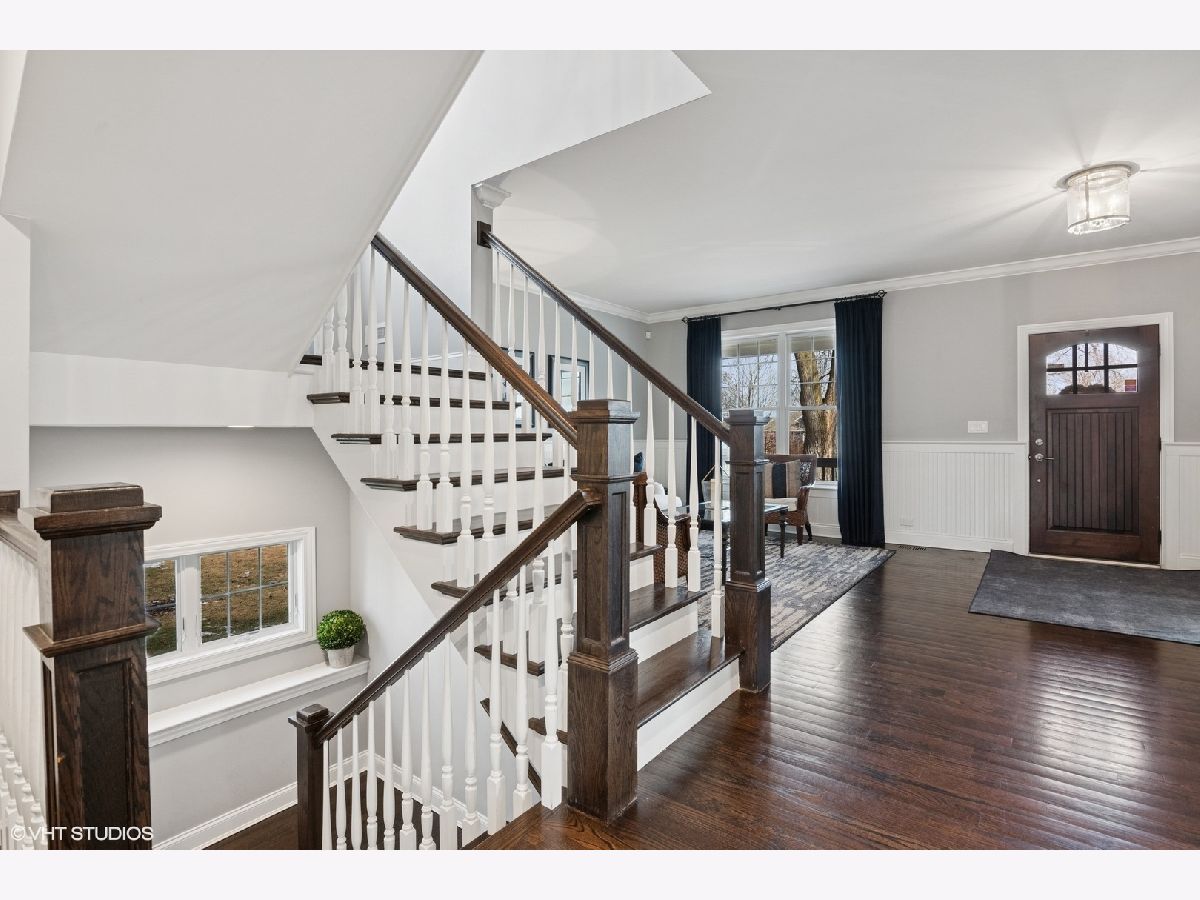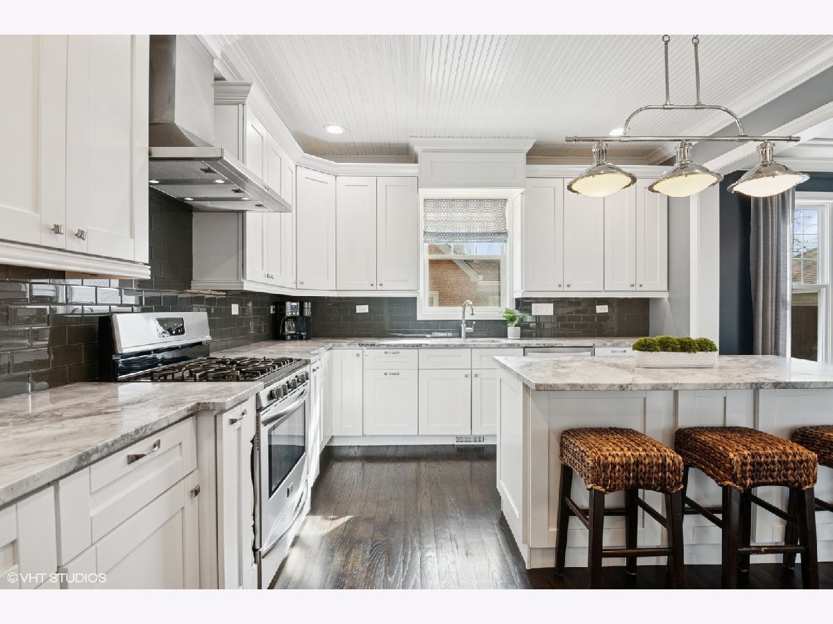 A true beauty from the inside and out! This stunning rebuild blends modern inspiration with timeless elegance in a prime location across from a modern park inclusive of baseball field, garden, and 1/4 mile track for runners & dog walkers too! The schools, shopping, downtown, and major roads are within short distance. Watch the children play at the park across the street from the large front porch or through the sunfilled front windows, enjoying a serene, neighborhood setting. Designed to entertain seemlessly with a growing family both indoors and outdoors. The home sits on a huge 58 x 170 lot on a quiet dead end street offering extensive parking with a long driveway that accommodates multiple cars, plus a massive outdoor 550 square foot shed for exceptional storage or hobby space. Inside, an open floor plan with generous room sizes is enhanced by rich hardwood floors, detailed wainscoting, trim, crown molding, and custom built-ins throughout, creating a warm yet refined atmosphere. The spacious kitchen features a large island, marble countertops, abundant cabinetry, and newer appliance flowing seamlessly into the dining and family rooms anchored by a cozy wood-burning gas fireplace, with so many windows and tasteful window treatments that invite abundant natural light into every corner. Upstairs, the second floor offers four bedrooms in which all just had new carpeting installed, including an en suite primary retreat with walk-in closet and spa-like bath with double vanities, private commode, and steam shower, along with an additional full bath and a separate laundry room for everyday convenience. The finished basement with tall ceilings extends the living space with a huge recreational area, highlighted by an expansive cabinet wall for organized storage, plus a fifth bedroom, full bath, and a versatile bonus room to tailor to your lifestyle. Outdoor entertaining is truly stress free and comfortable in the thoughtfully designed backyard oasis, which showcases an outdoor kitchen with granite countertops, built in grill with natural gas line, refrigerator and generous prep space, along with a large paver patio and sitting wall that easily hosts gatherings of family and friends especially sitting by the fire pit layered with glass rocks powered by a natural gas line. With its blend of luxury finishes, smart functionality, and outstanding indoor/outdoor living, this is a move-in, turnkey ready home with tons of storage that will be easy to enjoy upon moving in.