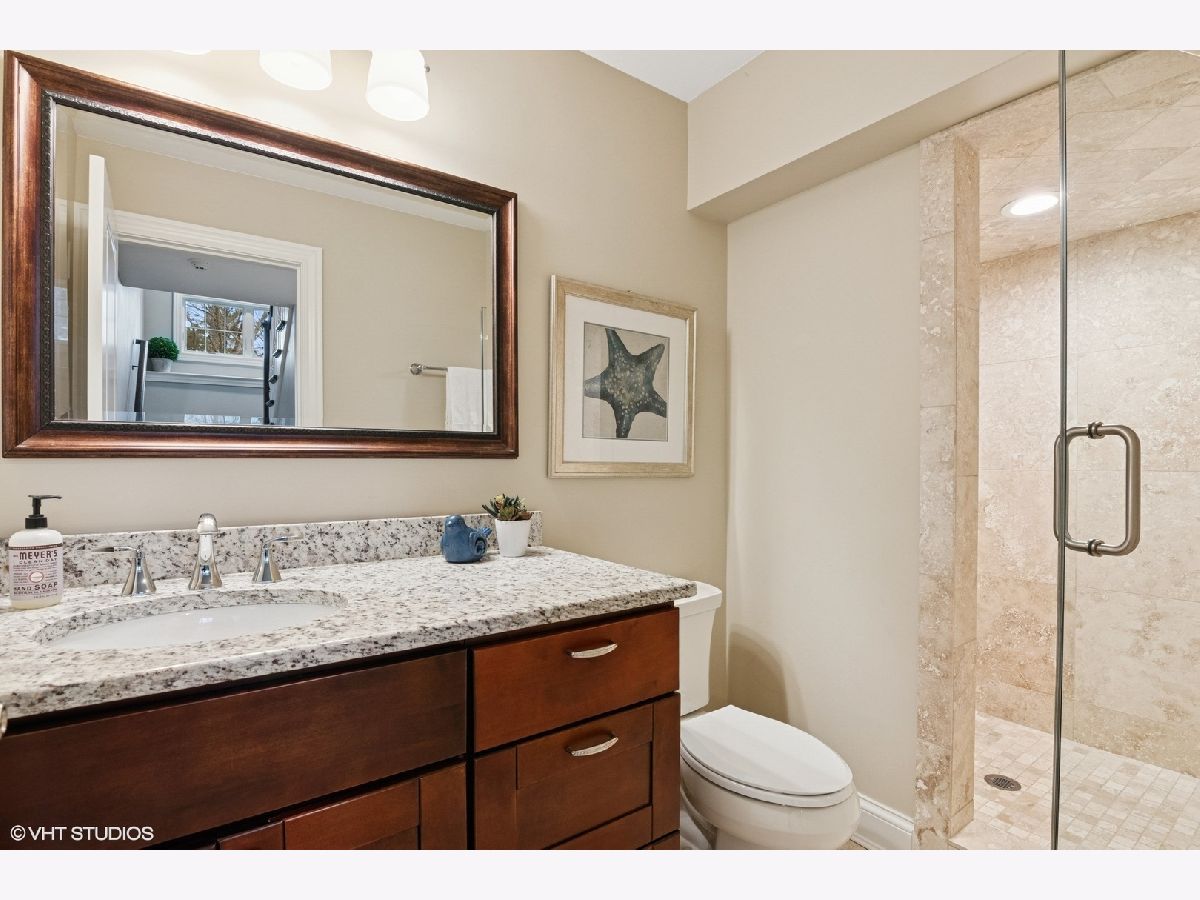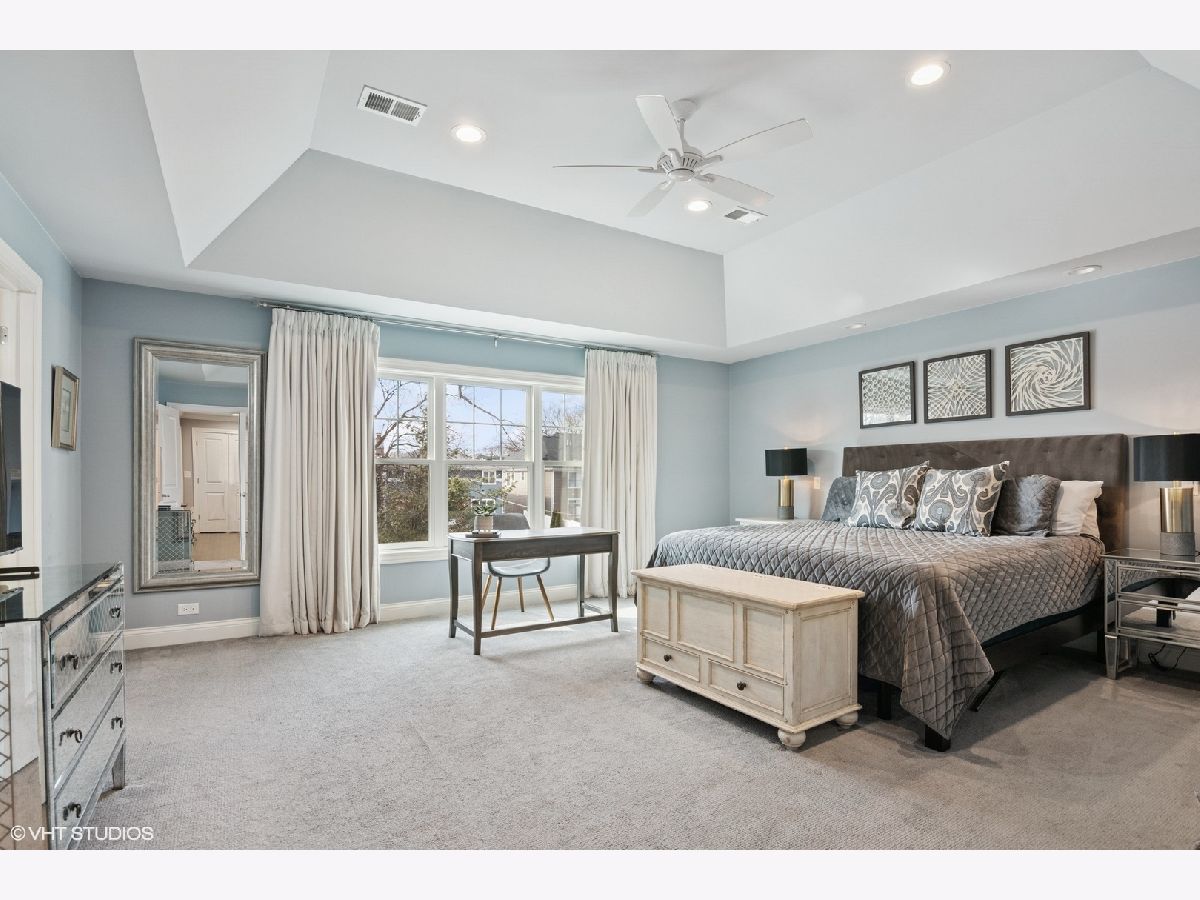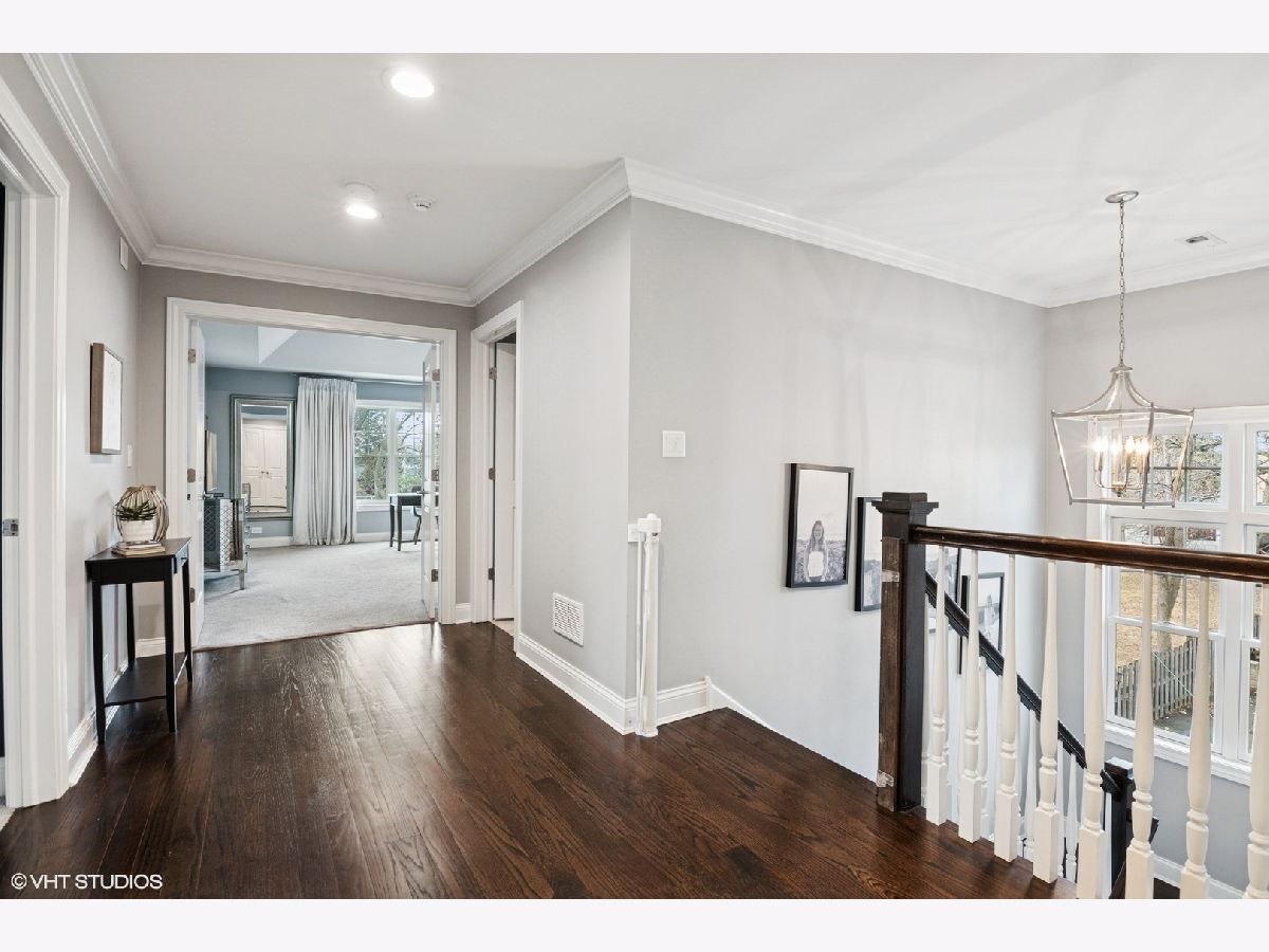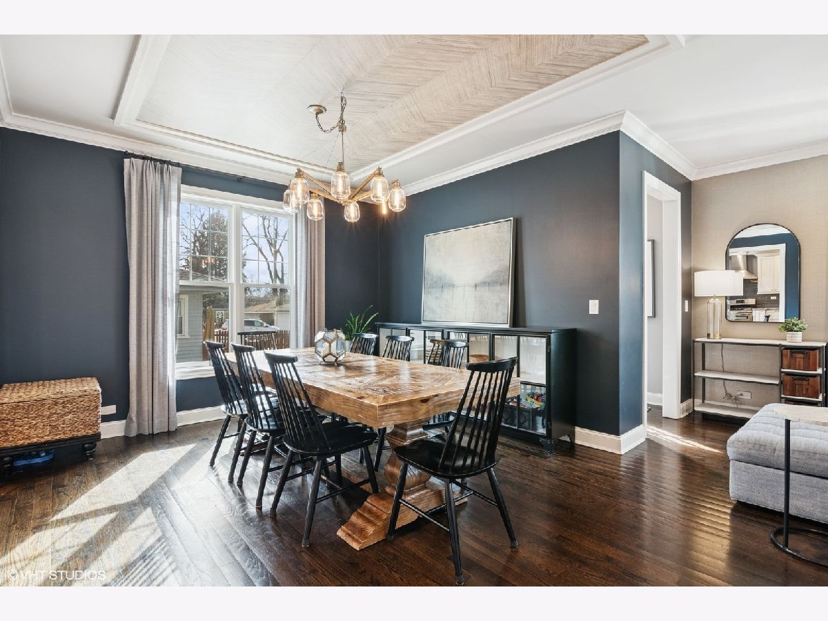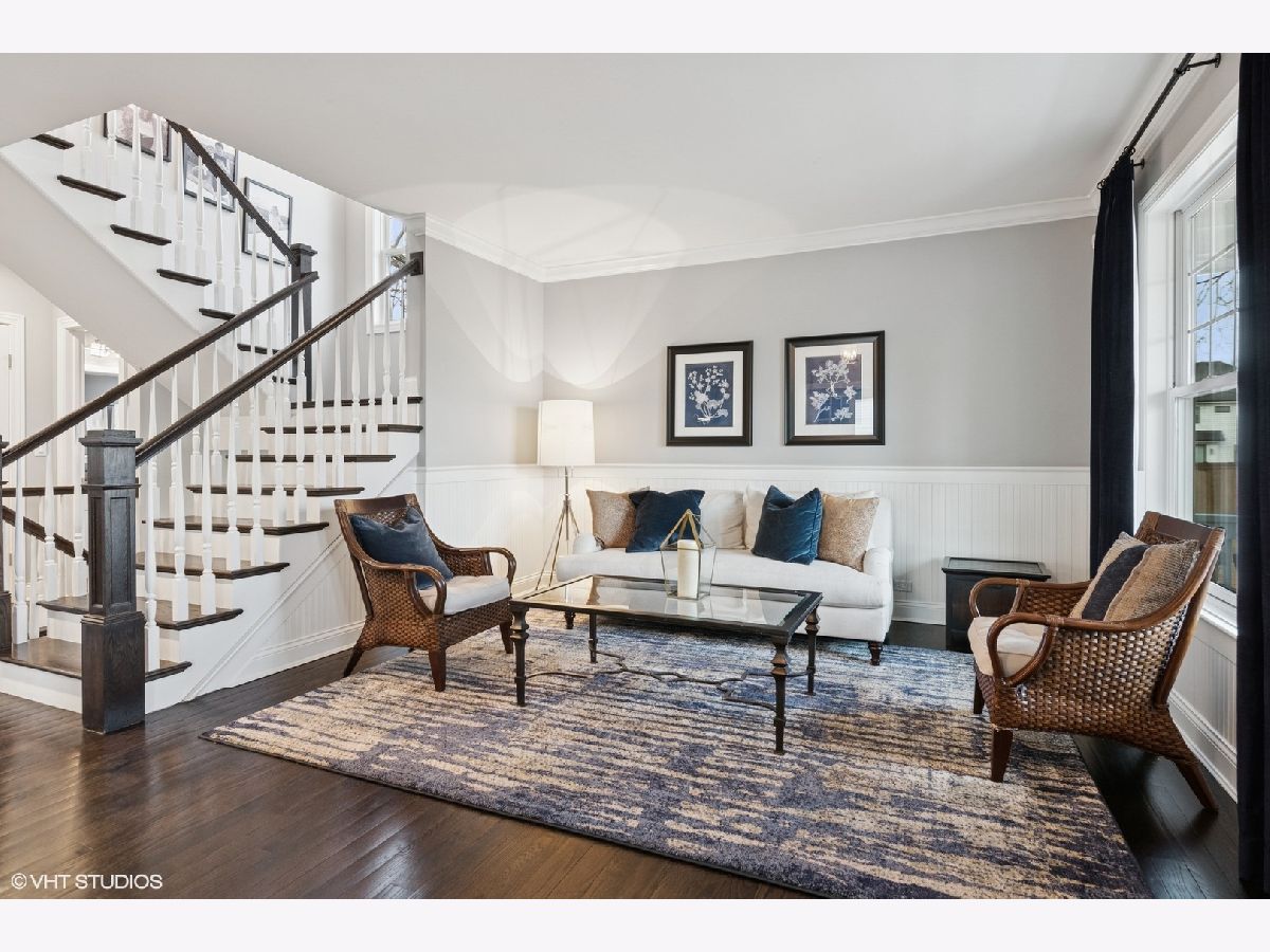 A true beauty from the inside and out! This stunning rebuild blends modern inspiration with timeless elegance in a prime location across from a modern park inclusive of baseball field, garden, and 1/4 mile track for runners & dog walkers too! The schools, shopping, downtown, and major roads are within short distance. Watch the children play at the park across the street from the large front porch or through the sunfilled front windows, enjoying a serene, neighborhood setting. Designed to entertain seemlessly with a growing family both indoors and outdoors. The home sits on a huge 58 x 170 lot on a quiet dead end street offering extensive parking with a long driveway that accommodates multiple cars, plus a massive outdoor 550 square foot shed for exceptional storage or hobby space. Inside, an open floor plan with generous room sizes is enhanced by rich hardwood floors, detailed wainscoting, trim, crown molding, and custom built-ins throughout, creating a warm yet refined atmosphere. The spacious kitchen features a large island, marble countertops, abundant cabinetry, and newer appliance flowing seamlessly into the dining and family rooms anchored by a cozy wood-burning gas fireplace, with so many windows and tasteful window treatments that invite abundant natural light into every corner. Upstairs, the second floor offers four bedrooms in which all just had new carpeting installed, including an en suite primary retreat with walk-in closet and spa-like bath with double vanities, private commode, and steam shower, along with an additional full bath and a separate laundry room for everyday convenience. The finished basement with tall ceilings extends the living space with a huge recreational area, highlighted by an expansive cabinet wall for organized storage, plus a fifth bedroom, full bath, and a versatile bonus room to tailor to your lifestyle. Outdoor entertaining is truly stress free and comfortable in the thoughtfully designed backyard oasis, which showcases an outdoor kitchen with granite countertops, built in grill with natural gas line, refrigerator and generous prep space, along with a large paver patio and sitting wall that easily hosts gatherings of family and friends especially sitting by the fire pit layered with glass rocks powered by a natural gas line. With its blend of luxury finishes, smart functionality, and outstanding indoor/outdoor living, this is a move-in, turnkey ready home with tons of storage that will be easy to enjoy upon moving in.