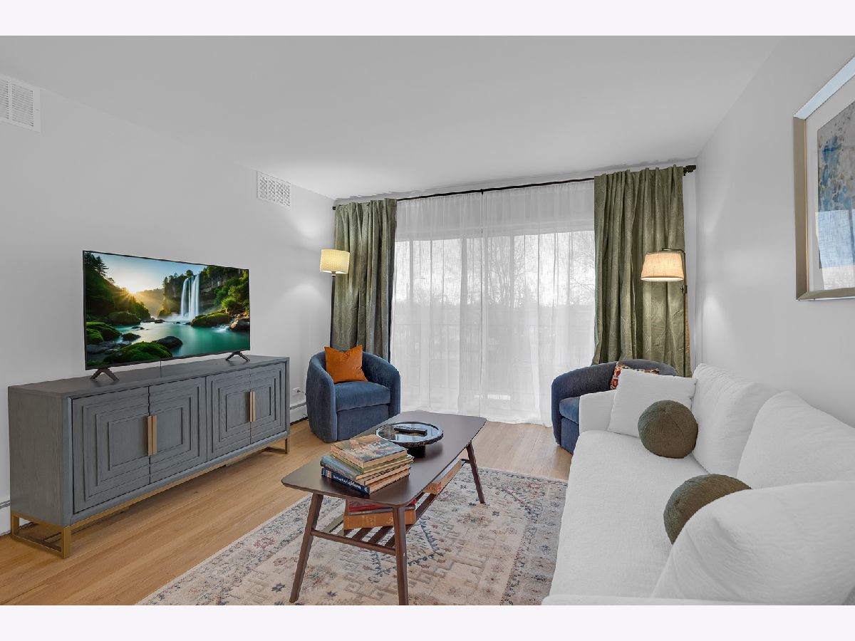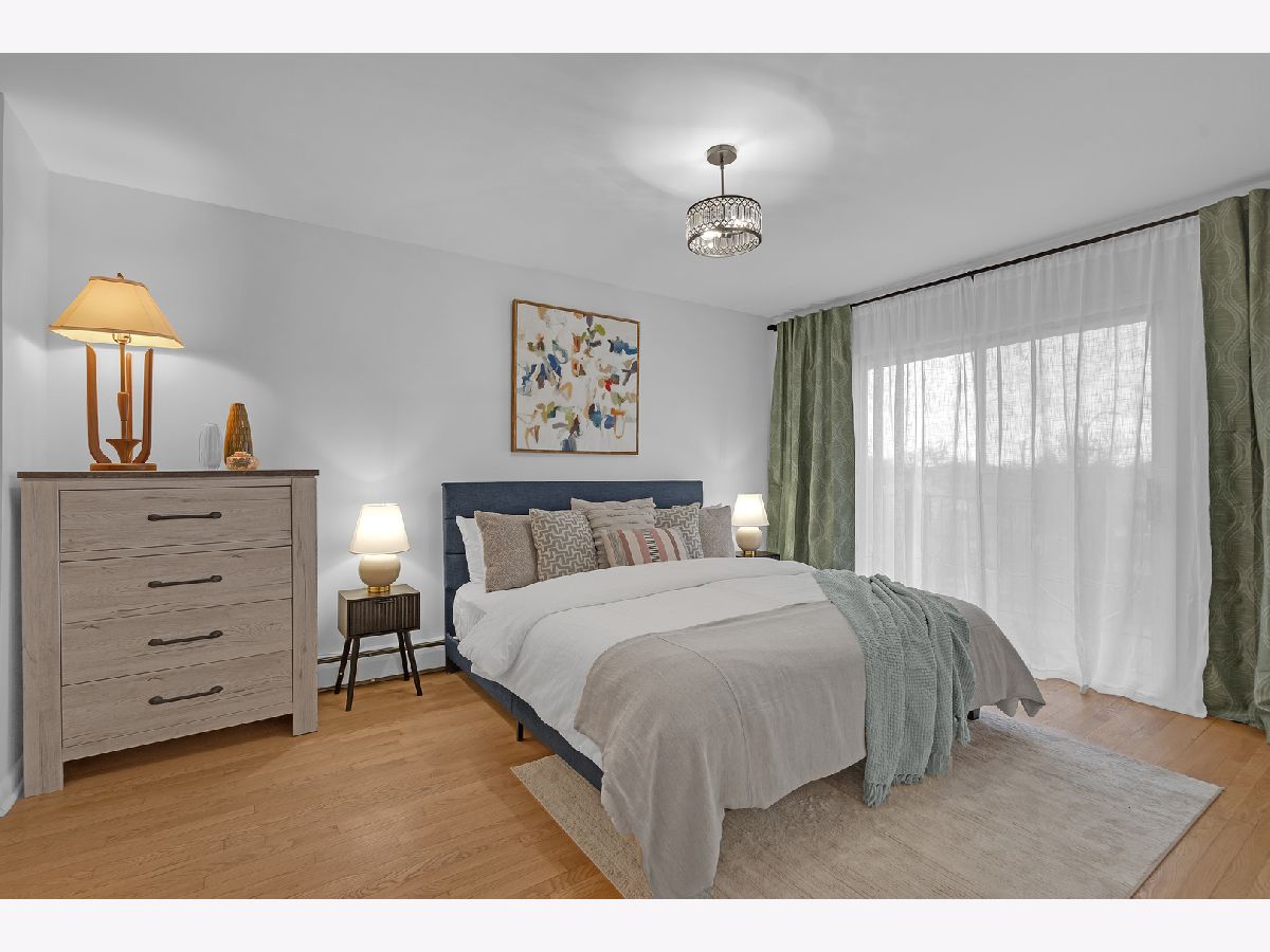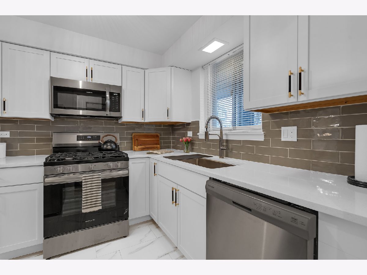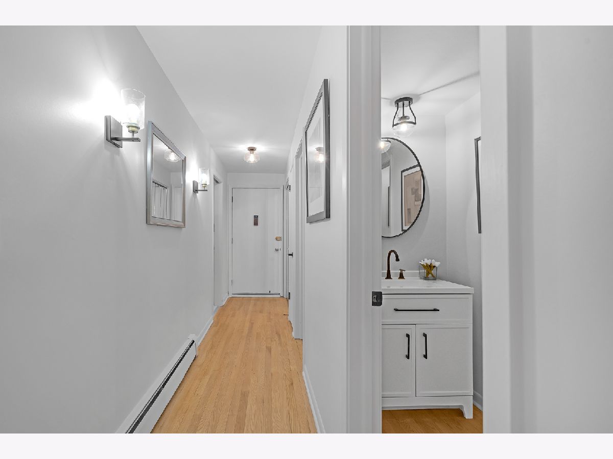 Top floor, sunny, freshly updated two bedroom in booming Portage Park. Open floor plan includes a separate dining area off a new, modern kitchen with white shaker cabinets, sharp backsplash, quartz counters, and Frigidaire stainless steel appliances. Stylish bath with two separate vanities. Hardwood floors have been refinished throughout, all lighting and plumbing fixtures are updated. Huge primary bedroom has abundant closet space and access to a balcony overlooking a private courtyard. Large second bedroom has a spacious walk in closet. Well run 24 unit building with laundry room on premises, large storage locker and a parking space(#7) included. Heat, hot water and cooking gas included in a very reasonable assessment(no People's Gas bill). This spacious home is like new and move in ready, you will love it!
