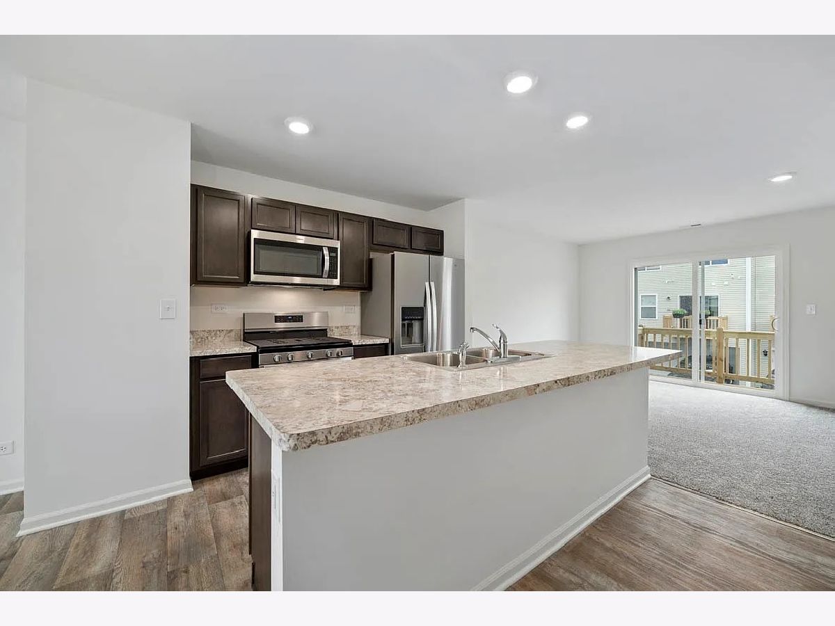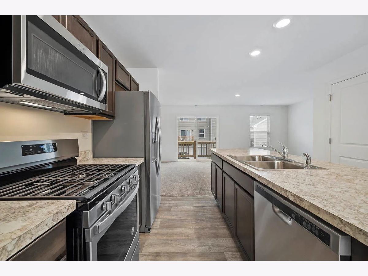 Welcome to better than new! This beautiful 3 bed, 2.5 bath END UNIT townhome in Yorkville's Grande Reserve neighborhood is a fantastic example of move in ready. as you enter the home you are welcomed by a stunning BRIGHT first floor with a large kitchen stacked with stainless steel appliances, LVP floors, and a MASSIVE center island. Just past the eat in kitchen is a large family room with access to your private balcony! upstairs you have the laundry room, a large master bedroom with walk-in closet and private ensuite master bathroom, as well as 2 additional spacious bedrooms and a guest bathroom! thats not all! head to the basement to find your flex space perfect for a 4th bedroom, office, man cave, truly whatever you can imagine! just off the flex space is your spacious 2 car garage. Dont delay, make this your home today! Picture listed of Model unit