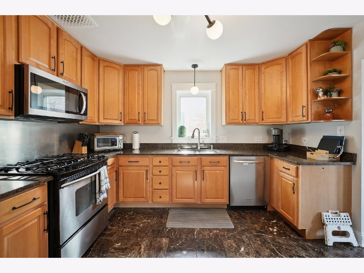 Beautifully maintained 2014 Rehab in Dunning! The landscaping in the front and back will win you over this Spring! Enter into beautiful living space with hardwood floors, leading to open kitchen/dining with cherry cabinets, granite counters, and newer SS appliances. 3 Spacious bedrooms await, with 2 upstairs and 1 on the main floor. Upstairs, you'll find you can add a 3rd bath easily, if you so desire. Main floor bathroom has bluetooth speakers and house is fully wired for sound. Basement bathroom is a shower dream with loads of shower heads for ultimate showering experience. Newer windows, roof, hot water tank, and washer and dryer! Prime location near public transportation and Harlem and Irving mall!