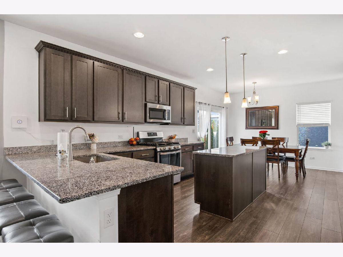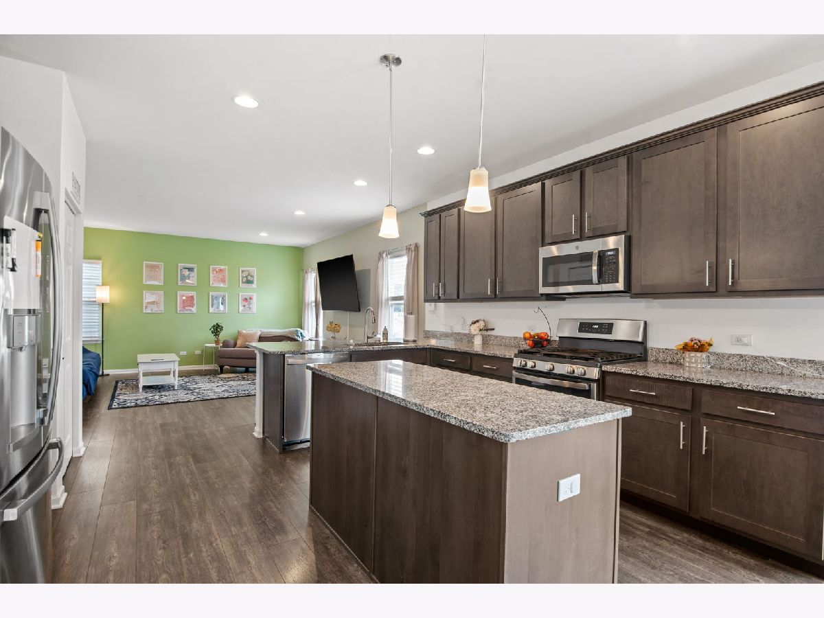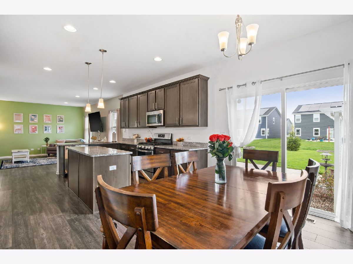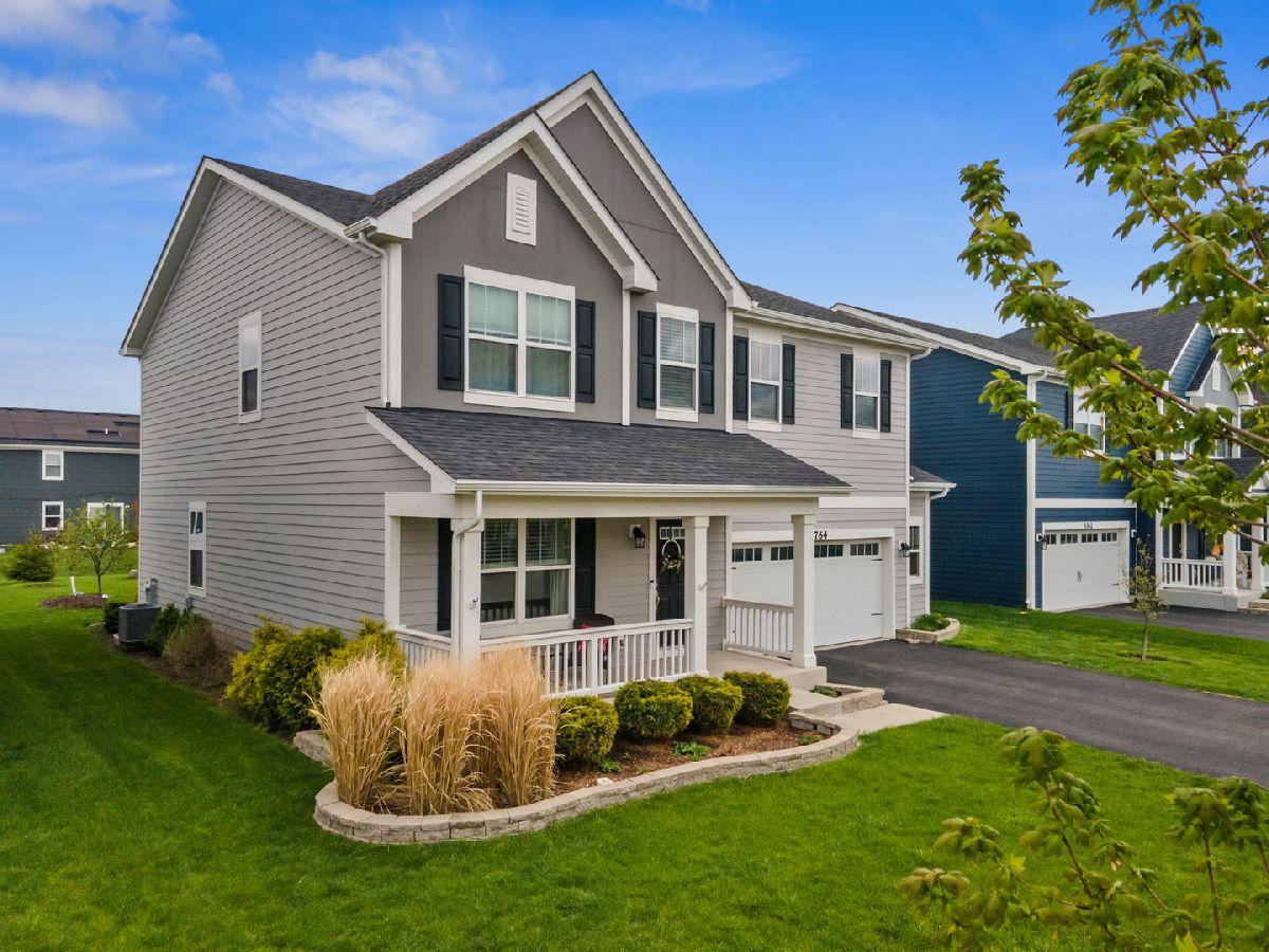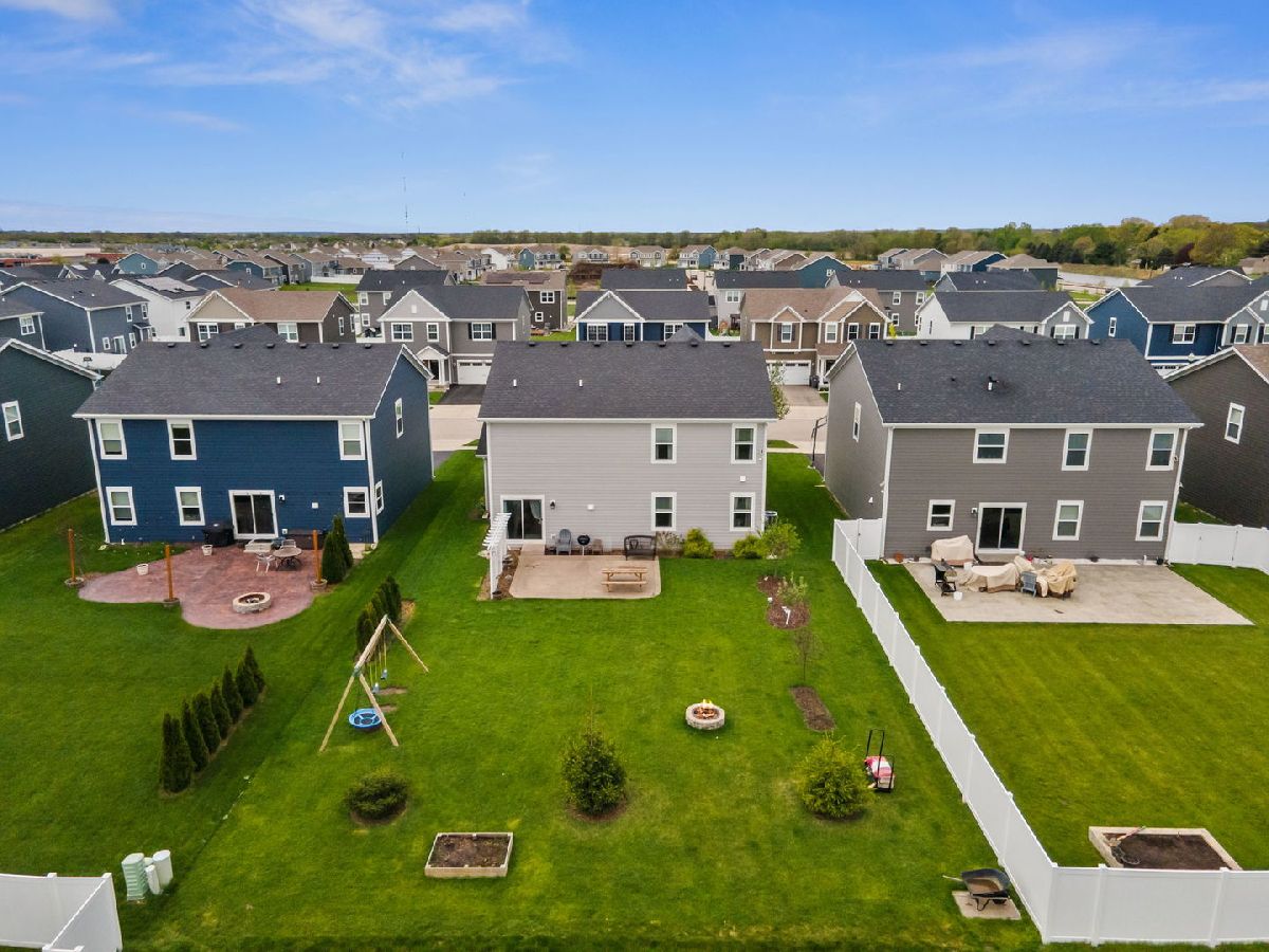 Beautifully maintained and move-in ready, this spacious home in the desirable West Point Gardens South neighborhood of Elgin is located in highly rated Central School District 301 and offers approximately 2,800 square feet of thoughtfully designed living space just steps from a neighborhood park. Set on a landscaped lot with standout curb appeal, the home welcomes you with a huge covered front porch and a spacious two and a half car garage with extra storage. Inside, an open and inviting layout begins with an oversized foyer and a flexible front room perfect for a dining area, home office or playroom, flowing seamlessly into a bright family room and an impressive kitchen featuring a large island with breakfast bar, granite countertops, stainless steel appliances, 42 inch maple cabinets and a pantry, all connected to a generous breakfast area. Luxury vinyl flooring runs throughout the main level, complemented by a convenient mudroom and powder room. Upstairs, you will find a full size second floor laundry room, a large loft for additional living space, three secondary bedrooms including one with a walk-in closet, and a vaulted primary suite with dual sinks, tile shower and an oversized walk-in closet. The full unfinished basement offers excellent storage or future expansion potential, while outdoor living shines with a stamped concrete patio and firepit, perfect for relaxing or entertaining. Quality finishes including Hardie board siding, wide plank flooring and oak rails complete this exceptional home.