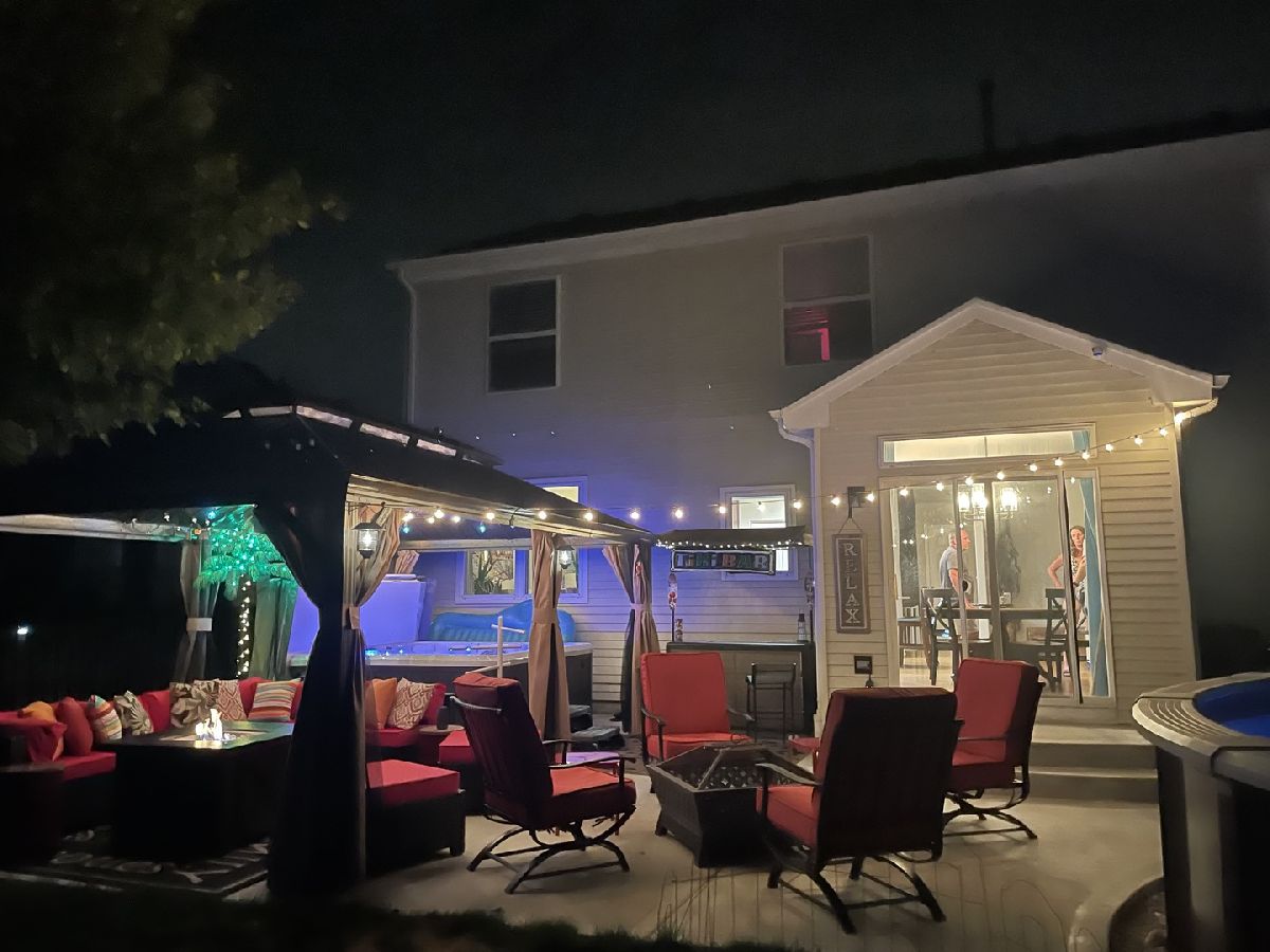 Welcome home to space, style and views that steal the show! This 4 bedroom, 2.5 bath beauty greets you with a charming front porch, soaring two-story foyer and engineered hardwood floors and new light fixtures that set the tone for easy, modern living. The heart of the home is the udpated kitchen featuring quartz countertops, a breakfast bar/island, 42" trimmed cabinetry, stainless steel appliances, and a double oven - perfect for entertaining or everyday life. A sunny breakfast room flows into the spacious family room with a cozy wood-burning fireplace, while the first floor den with french doors makes an ideal home office or flex space. Laundry is a breeze with a newer washer/dryer, built-in shelving, and cabinetry. Upstairs, you'll find four generously sized bedrooms, including a primary suite with a walk-in closet outfitted with an organizing system and a freshly updated bath with newly tiled shower surround, modern vanities and mirrors. Three additional bedrooms, two hall linen closets and a full bath complete the second level - plus brand new carpeting throughout this level. The fun continues in the finished partial basement complete with a pool/pingpong table, built-in cabinets with countertop, beverage fridges and a concrete crawl for extra storage. But the real showstopper? The insane fenced backyard. Think pool, newer hot tub, gazebo and patio and unobstructed views with unforgettable sunsets - your own private resort right at home. All this in a fantastic location close to Sunset Park with sports fields, dog park, playgrounds, splash pads, fishing pond, pickleball courts, plus schools, shopping and more. Newer driveway and countless updates round out this must-see home. Location close to schools, fests, restaurants & more!