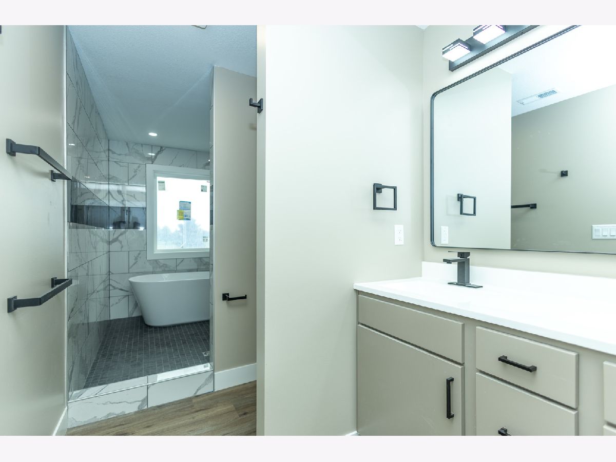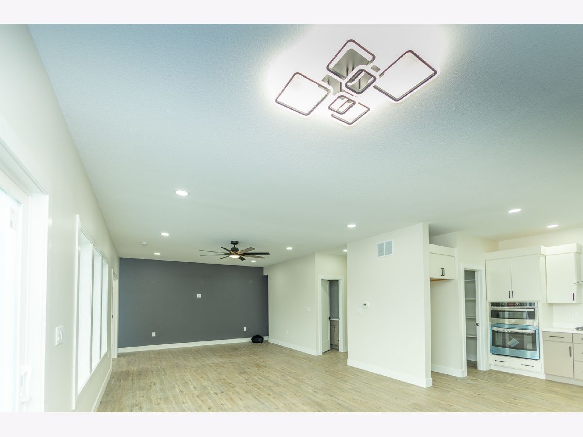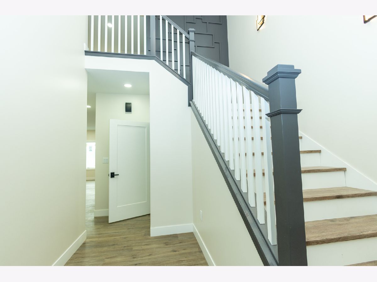 This beautifully designed home offers 9-foot ceilings on the main floor, luxury vinyl flooring throughout, and upgraded stairs with LVP treads and wood risers. The main level features a flex room or optional bedroom with full egress, a full bathroom with standing shower and marble-top vanity, and a spacious open-concept living, kitchen, and dining area filled with natural light. The kitchen showcases dual-tone custom plywood cabinetry with slab doors, soft-close hardware, dovetail joints, premium finishes, GE Profile appliances, powerful exterior-vented hood, and a large walk-in pantry with custom shelving. A grand foyer with 19-foot ceiling, geometric accent wall, and designer chandelier creates an impressive entrance. The home includes premium finish paint with accent walls, smart electrical features including modern switches, sockets, trim lighting, and sensor-enabled fixtures. The second floor features a spacious family loft, luxury primary suite with walk-out balcony, walk-in closet, and spa-style bath with double vanity, freestanding tub, and rain shower, plus two additional bedrooms with large windows, closets, smart switches, and ceiling fans. Upstairs laundry includes utility sink and gas/electric hookups. Additional highlights include dual-zone climate control with smart thermostat, tankless water heater for continuous hot water, and contemporary smart home features throughout (Agent Interest)