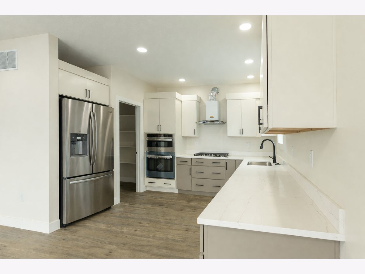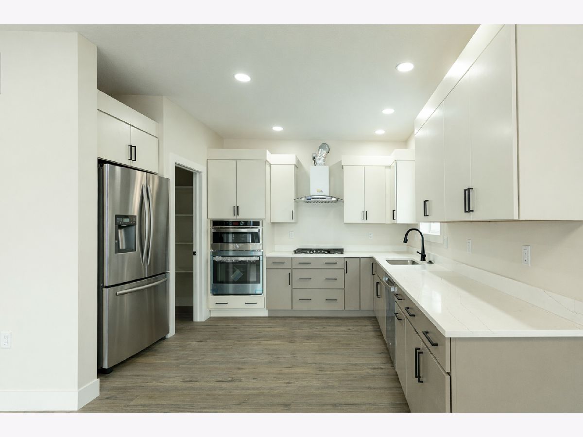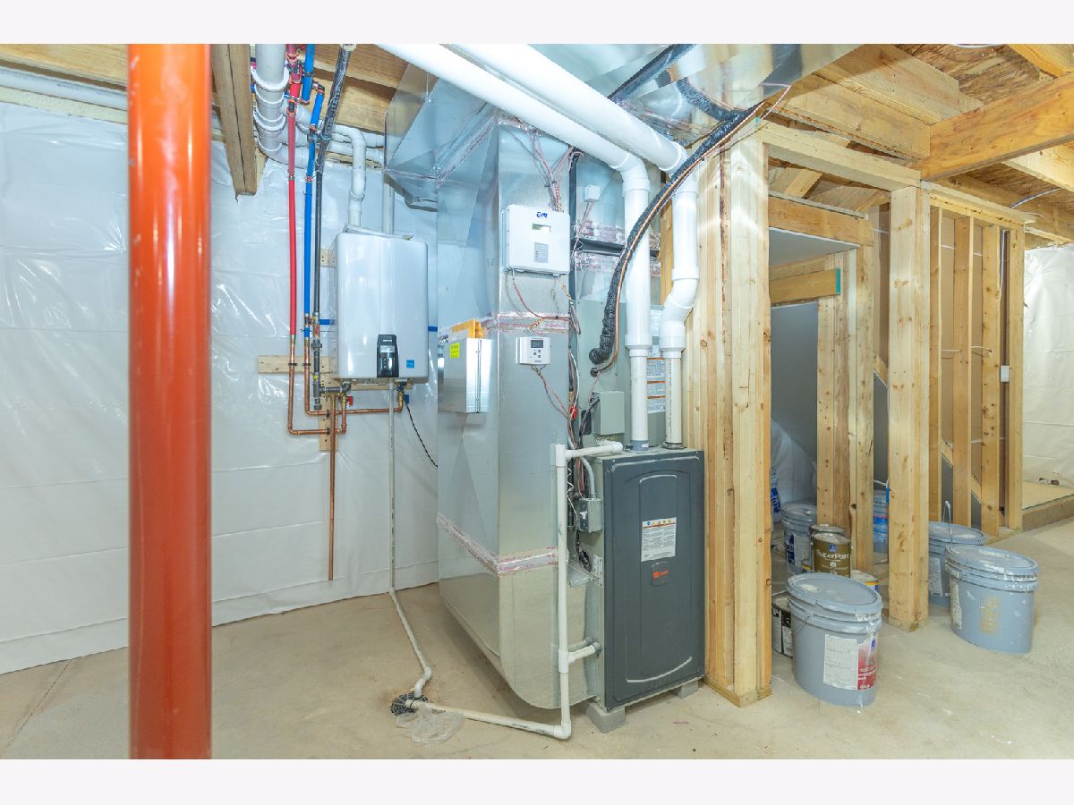 This beautifully designed home offers 9-foot ceilings on the main floor, luxury vinyl flooring throughout, and upgraded stairs with LVP treads and wood risers. The main level features a flex room or optional bedroom with full egress, a full bathroom with standing shower and marble-top vanity, and a spacious open-concept living, kitchen, and dining area filled with natural light. The kitchen showcases dual-tone custom plywood cabinetry with slab doors, soft-close hardware, dovetail joints, premium finishes, GE Profile appliances, powerful exterior-vented hood, and a large walk-in pantry with custom shelving. A grand foyer with 19-foot ceiling, geometric accent wall, and designer chandelier creates an impressive entrance. The home includes premium finish paint with accent walls, smart electrical features including modern switches, sockets, trim lighting, and sensor-enabled fixtures. The second floor features a spacious family loft, luxury primary suite with walk-out balcony, walk-in closet, and spa-style bath with double vanity, freestanding tub, and rain shower, plus two additional bedrooms with large windows, closets, smart switches, and ceiling fans. Upstairs laundry includes utility sink and gas/electric hookups. Additional highlights include dual-zone climate control with smart thermostat, tankless water heater for continuous hot water, and contemporary smart home features throughout (Agent Interest)