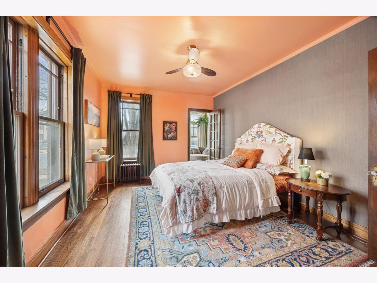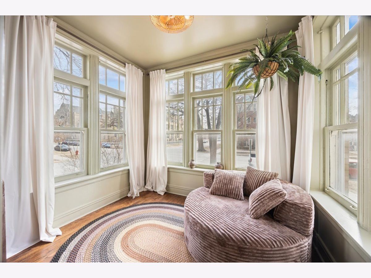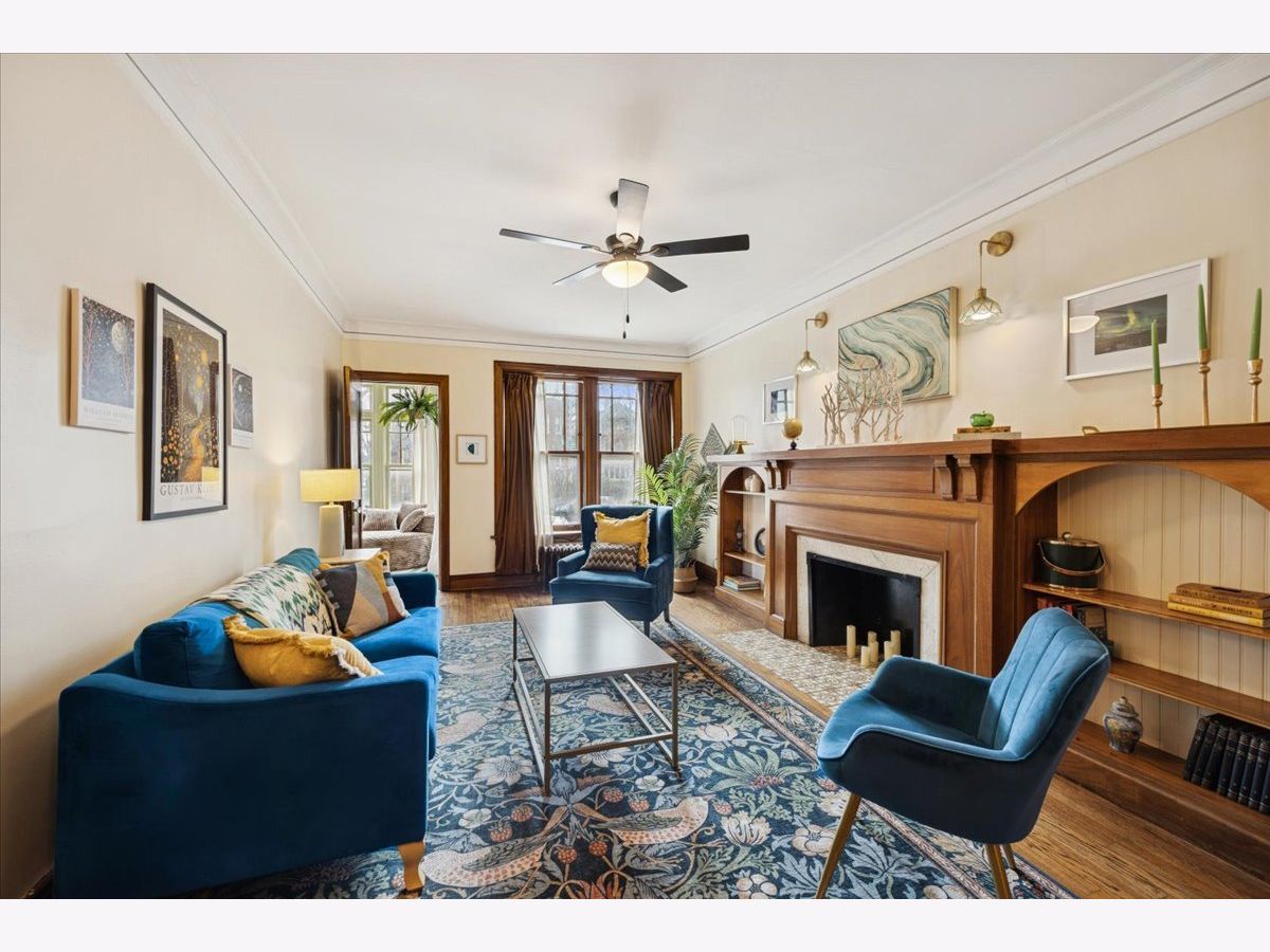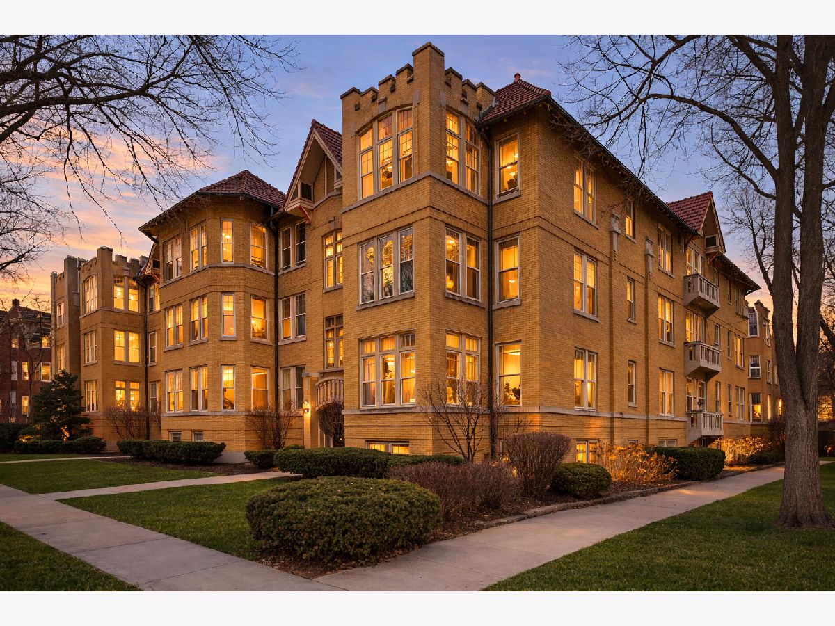 Beautifully refreshed vintage condo that lives like a single-family home. This oversized 3-bedroom, 2 full-bath corner unit offers generous room sizes, an inviting entry, and a flexible layout with a separate dining room (with a Juliette balcony) currently used as a family room. The home has been freshly painted, and three of the rooms feature stunning, drench-painted walls for a bold, designer look - the primary bedroom, sunroom, and dining room. Vintage details shine throughout, including refinished hardwood floors, original millwork and molding, solid wood doors, and a decorative fireplace framed by arched built-in bookcases. The sunroom with windows on three sides, bringing in beautiful natural light and working perfectly as a lounge, reading area, or home office. You'll also appreciate the ease of a step-up first-floor location and in-unit laundry. Closet space is generous, and there's an extra-large private storage room in the basement for everything you don't want in your daily rotation. Out back, enjoy a private porch overlooking a professionally landscaped courtyard. Cats and dogs are welcome, and 24-hour permit street parking makes day-to-day life simple. Ideally located at 38 Washington Blvd in Oak Park, close to dining, shopping, parks, and transit. Light-filled, spacious, and move-in ready - this one you've been waiting for.