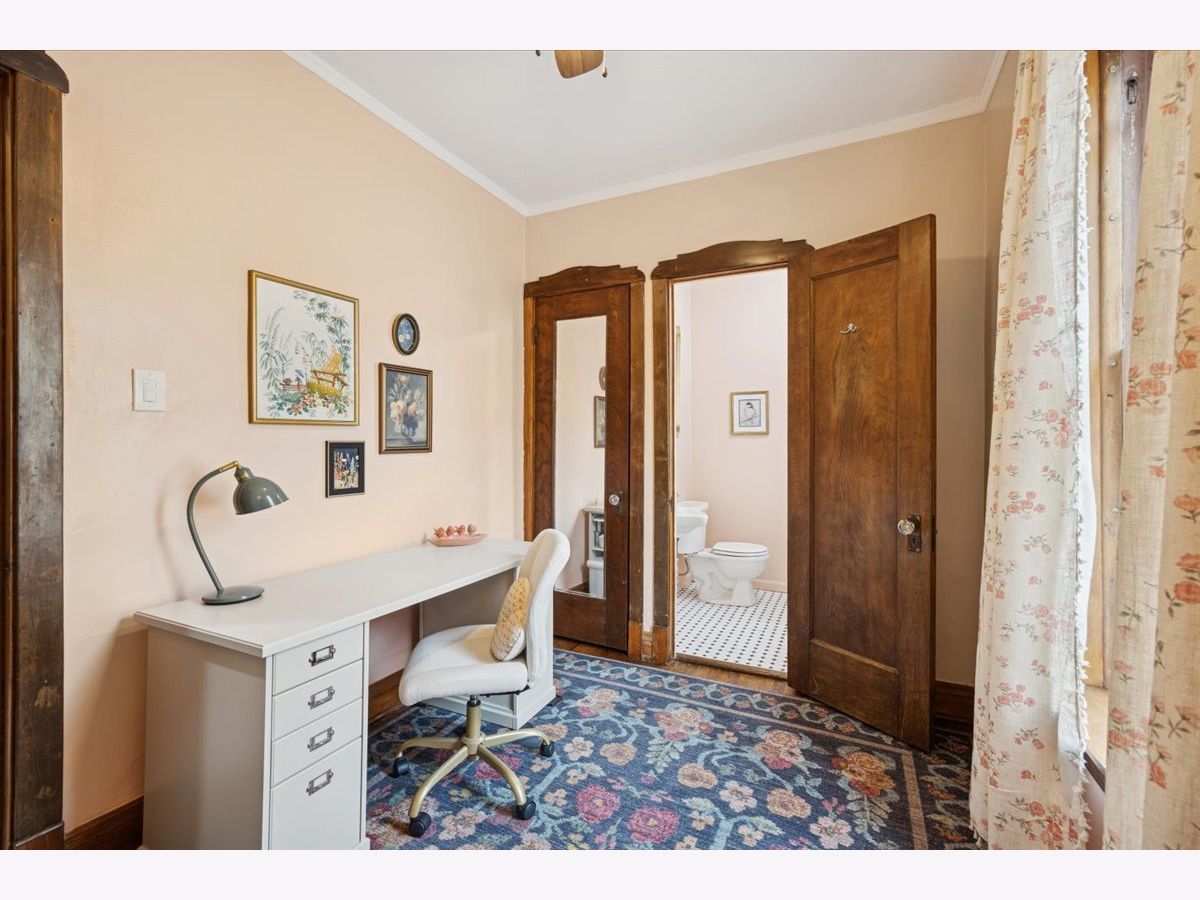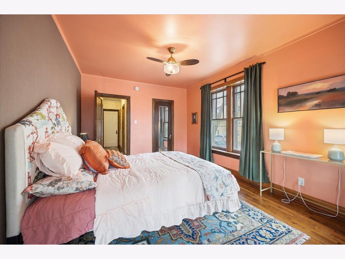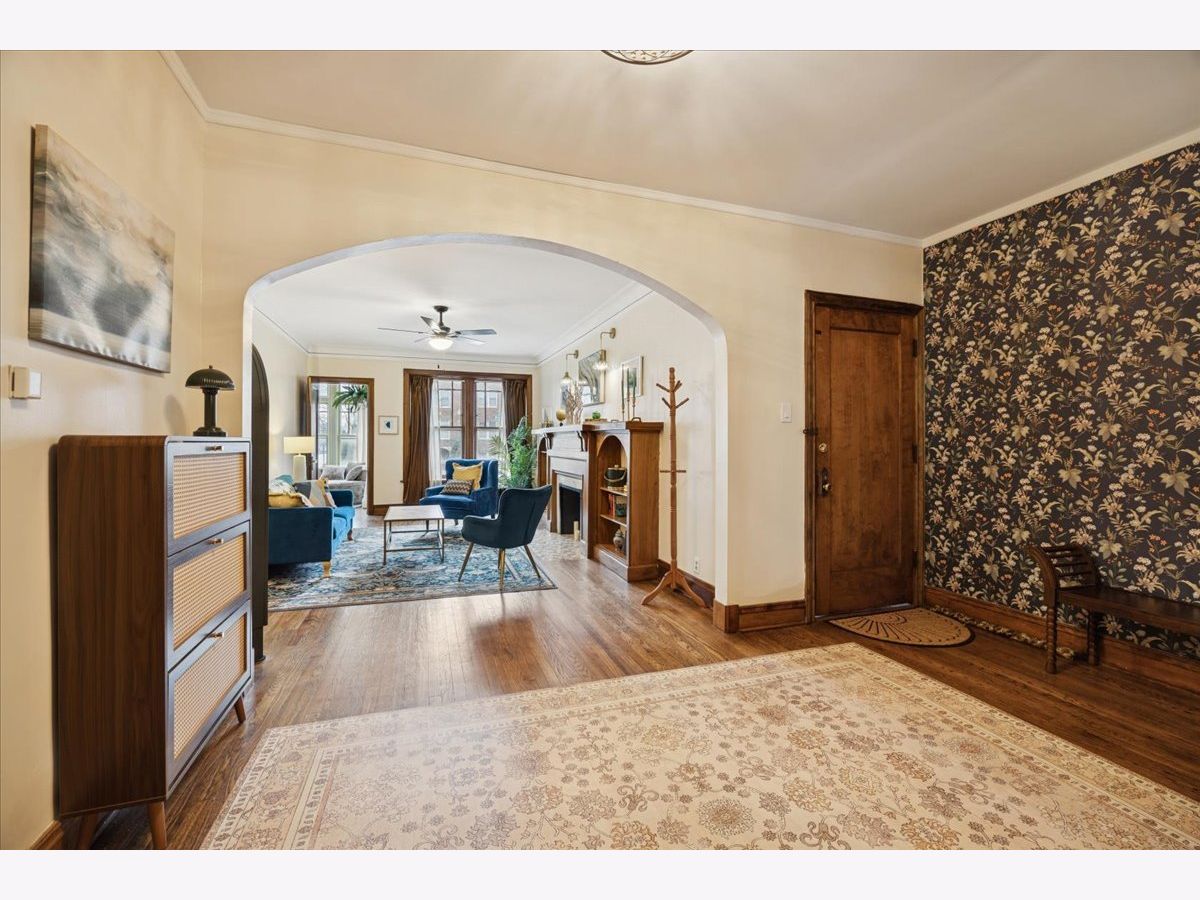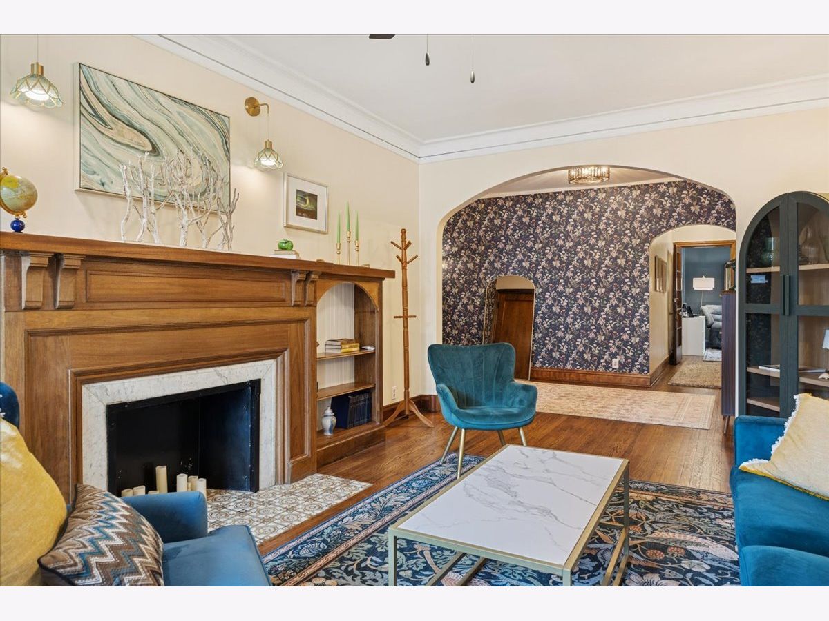 Beautifully refreshed vintage condo that lives like a single-family home. This oversized 3-bedroom, 2 full-bath corner unit offers generous room sizes, an inviting entry, and a flexible layout with a separate dining room (with a Juliette balcony) currently used as a family room. The home has been freshly painted, and three of the rooms feature stunning, drench-painted walls for a bold, designer look - the primary bedroom, sunroom, and dining room. Vintage details shine throughout, including refinished hardwood floors, original millwork and molding, solid wood doors, and a decorative fireplace framed by arched built-in bookcases. The sunroom with windows on three sides, bringing in beautiful natural light and working perfectly as a lounge, reading area, or home office. You'll also appreciate the ease of a step-up first-floor location and in-unit laundry. Closet space is generous, and there's an extra-large private storage room in the basement for everything you don't want in your daily rotation. Out back, enjoy a private porch overlooking a professionally landscaped courtyard. Cats and dogs are welcome, and 24-hour permit street parking makes day-to-day life simple. Ideally located at 38 Washington Blvd in Oak Park, close to dining, shopping, parks, and transit. Light-filled, spacious, and move-in ready - this one you've been waiting for.