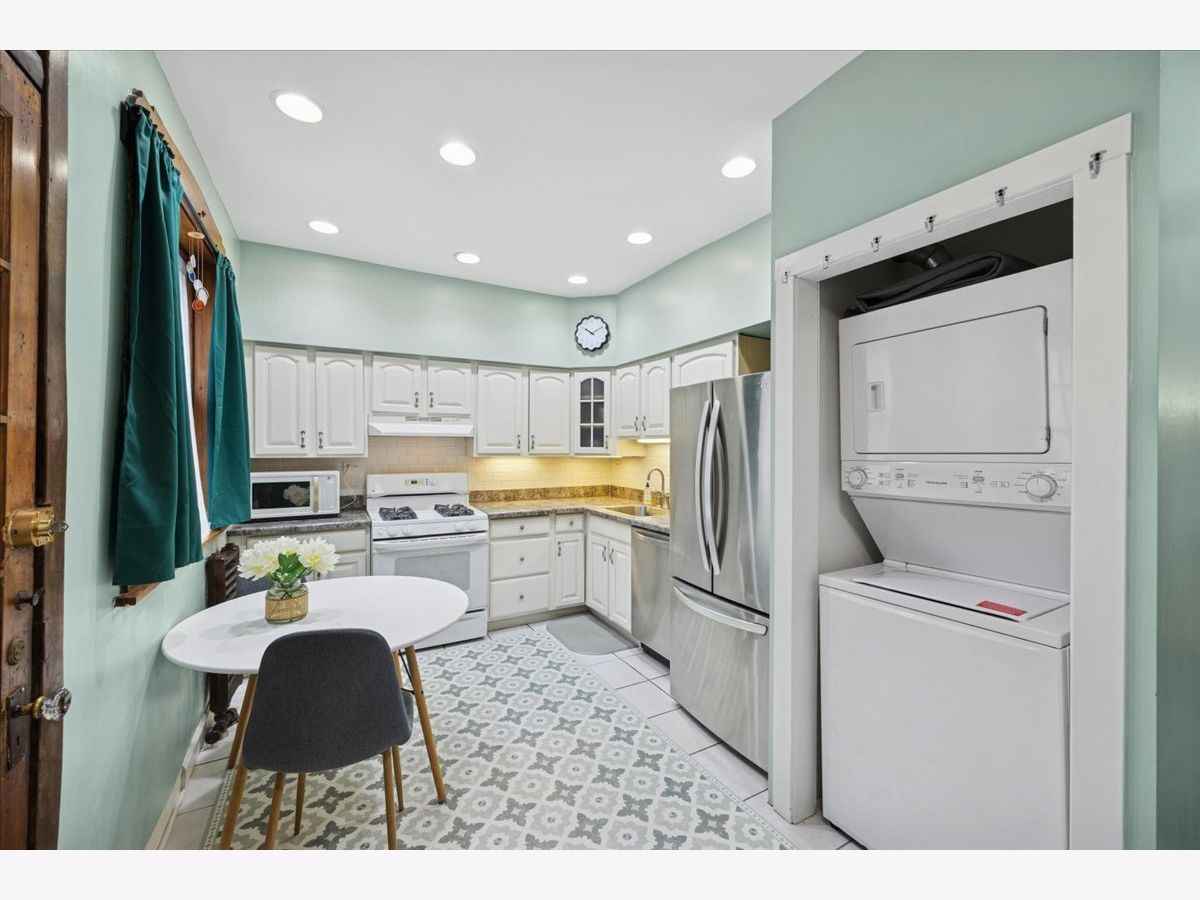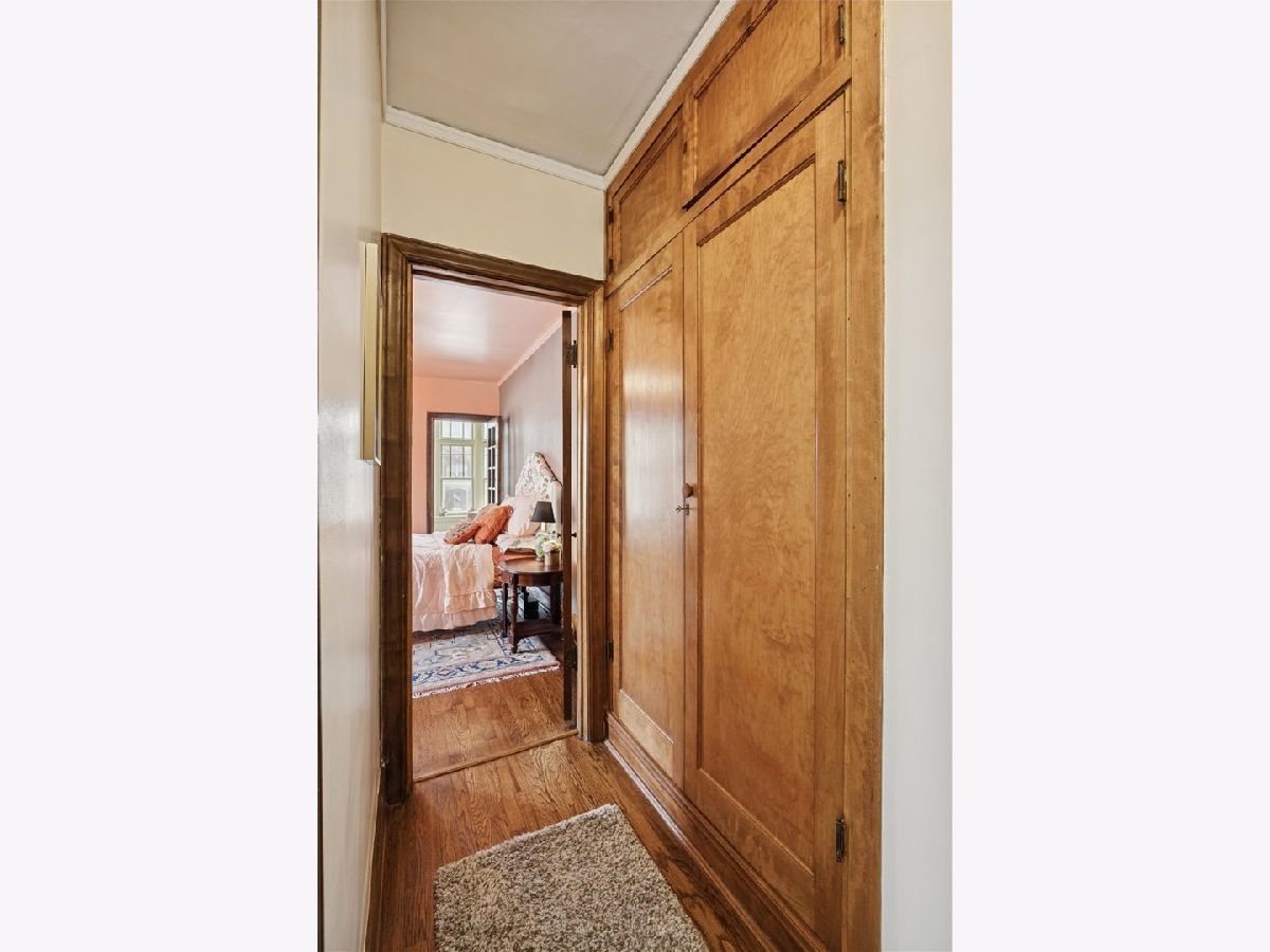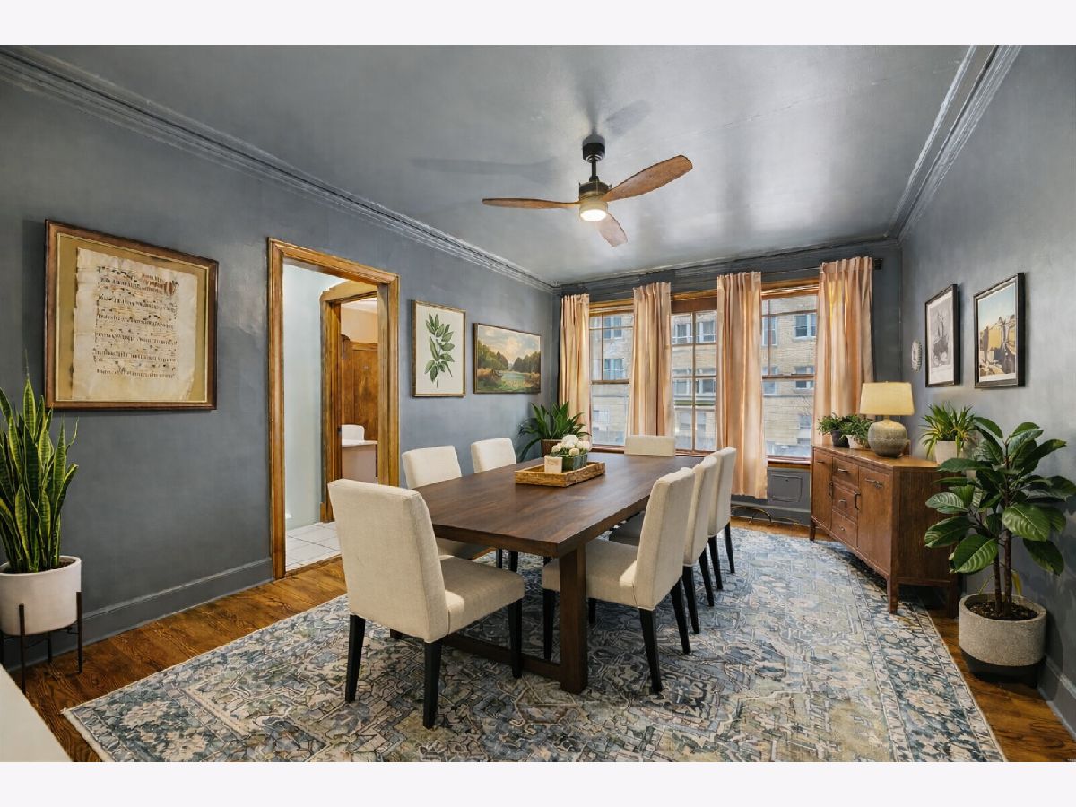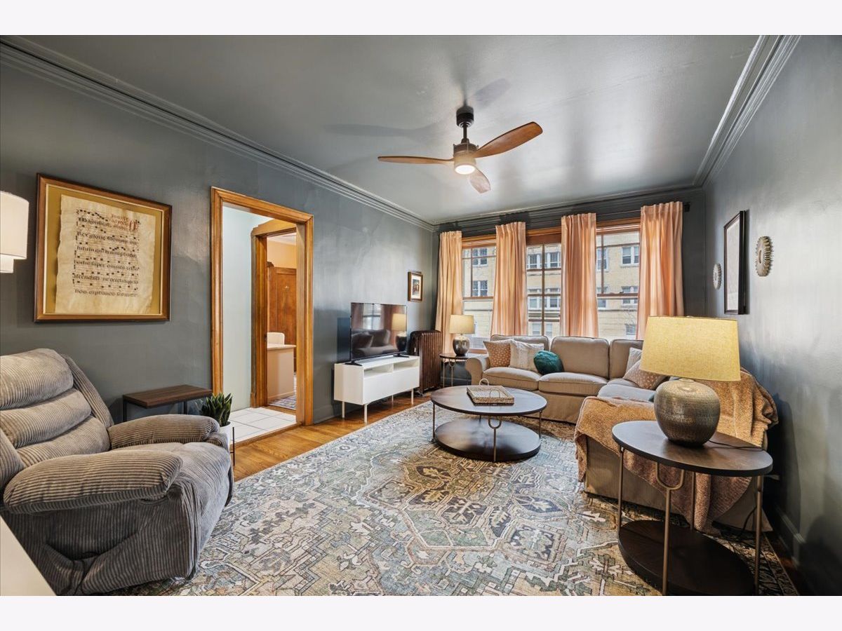 Beautifully refreshed vintage condo that lives like a single-family home. This oversized 3-bedroom, 2 full-bath corner unit offers generous room sizes, an inviting entry, and a flexible layout with a separate dining room (with a Juliette balcony) currently used as a family room. The home has been freshly painted, and three of the rooms feature stunning, drench-painted walls for a bold, designer look - the primary bedroom, sunroom, and dining room. Vintage details shine throughout, including refinished hardwood floors, original millwork and molding, solid wood doors, and a decorative fireplace framed by arched built-in bookcases. The sunroom with windows on three sides, bringing in beautiful natural light and working perfectly as a lounge, reading area, or home office. You'll also appreciate the ease of a step-up first-floor location and in-unit laundry. Closet space is generous, and there's an extra-large private storage room in the basement for everything you don't want in your daily rotation. Out back, enjoy a private porch overlooking a professionally landscaped courtyard. Cats and dogs are welcome, and 24-hour permit street parking makes day-to-day life simple. Ideally located at 38 Washington Blvd in Oak Park, close to dining, shopping, parks, and transit. Light-filled, spacious, and move-in ready - this one you've been waiting for.