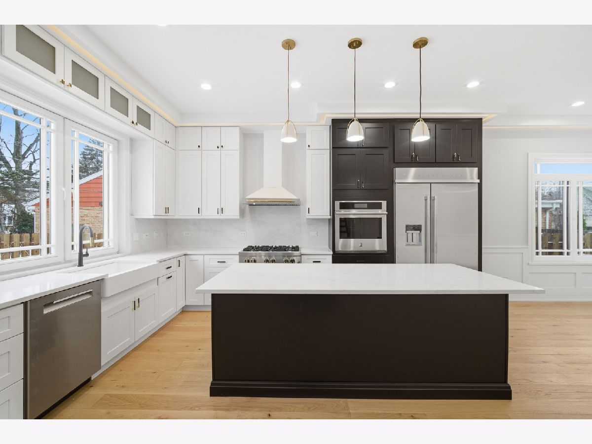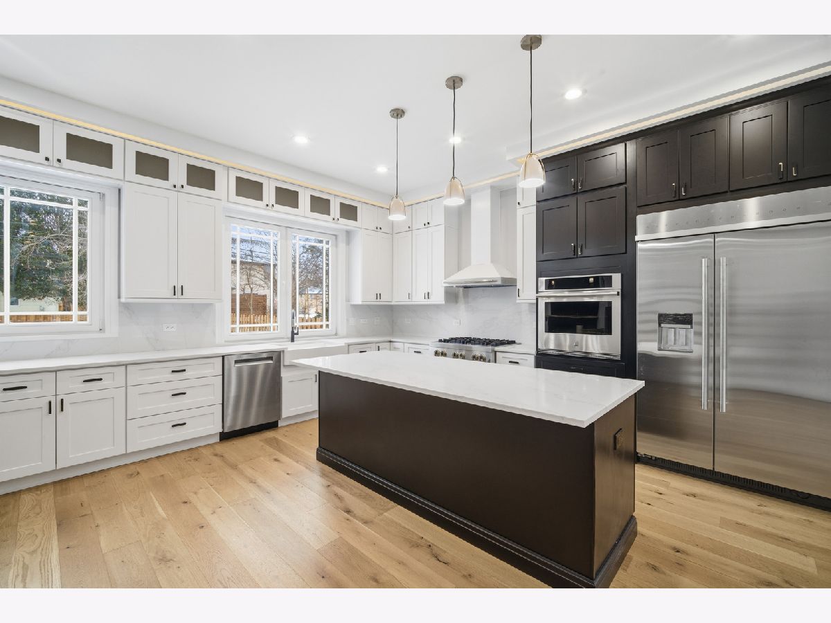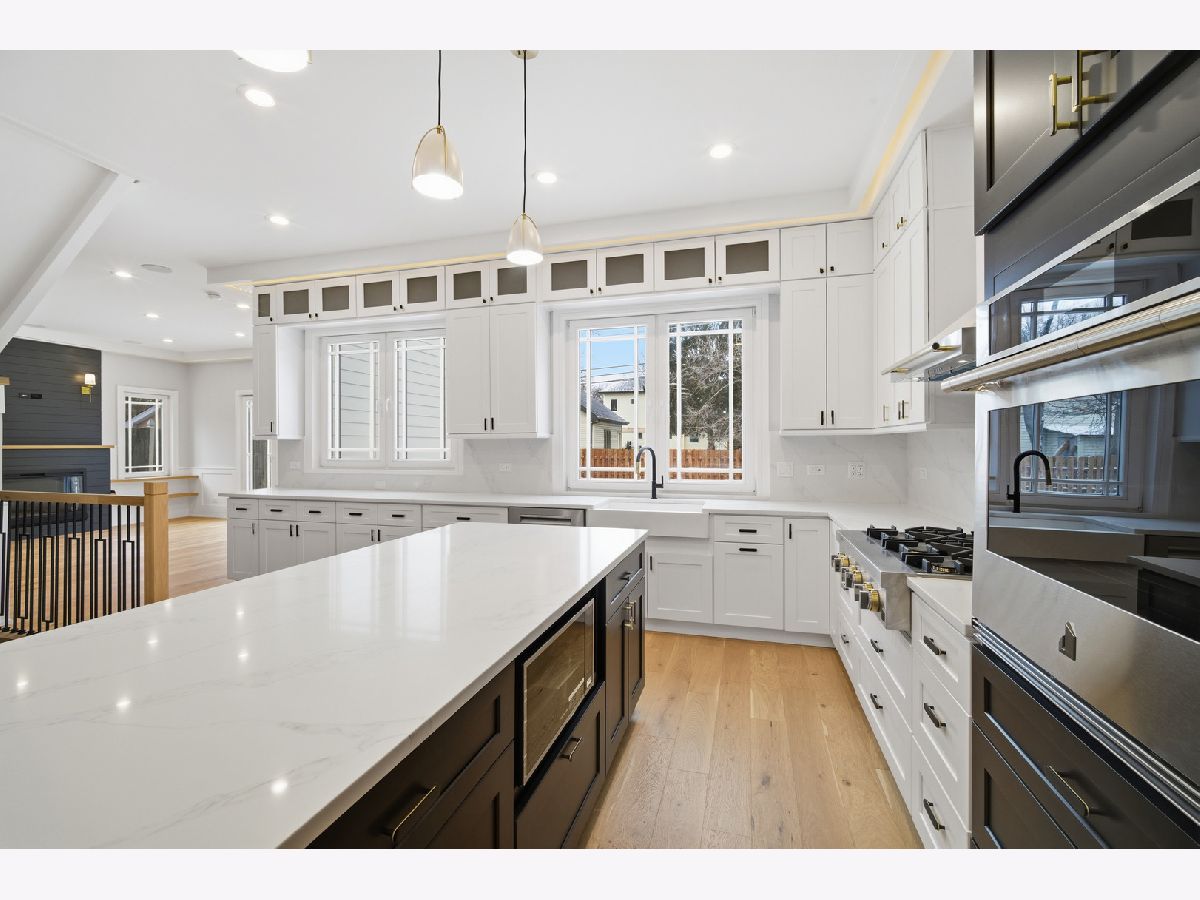 Construction is complete, and this exceptional custom home is ready to welcome its new owners! Luxury, innovation, and energy efficiency come together in this showstopping residence-truly one of Glenview's most distinctive new homes. Ideally located just steps from top-rated schools, beautiful parks, the Metra, and vibrant downtown Glenview, this home offers an unmatched combination of convenience and refined living. From the moment you arrive, the striking Ruukki metal roof sets the tone for modern sophistication and long-lasting durability. Step through the elegant oak front door into a light-filled interior where German-crafted double-pane tilt-and-turn windows flood the home with natural light while enhancing energy efficiency. Advanced insulation ensures year-round comfort and quiet living. At the heart of the home is a spectacular chef's kitchen, designed to impress. Dramatic custom cabinetry provides abundant storage, while the oversized breakfast island with extra-thick quartz countertops becomes a stunning centerpiece for gatherings. The seamless quartz backsplash adds a sleek, contemporary finish. The inviting family room with fireplace overlooks the backyard and opens to a beautiful patio-perfect for summer entertaining or relaxing evenings outdoors. The main level also offers a flexible bedroom or office and a full bath, ideal for guests or work-from-home living. Upstairs, the primary suite is a true retreat, featuring dual walk-in closets and a luxurious oversized European shower. Three additional bedrooms include a Jack-and-Jill bath, a private en-suite, and a versatile bonus room perfect for a playroom, study space, or second office. The walk-out basement expands the living space with heated floors, a relaxing sauna, a full bath, a spacious recreation room, and an additional bedroom-perfect for guests or extended family. Additional highlights include heated floors, two laundry rooms, 400-amp electrical service, and CAT5 wiring for seamless smart-home integration. This remarkable home offers the rare combination of modern design, cutting-edge efficiency, and everyday luxury.