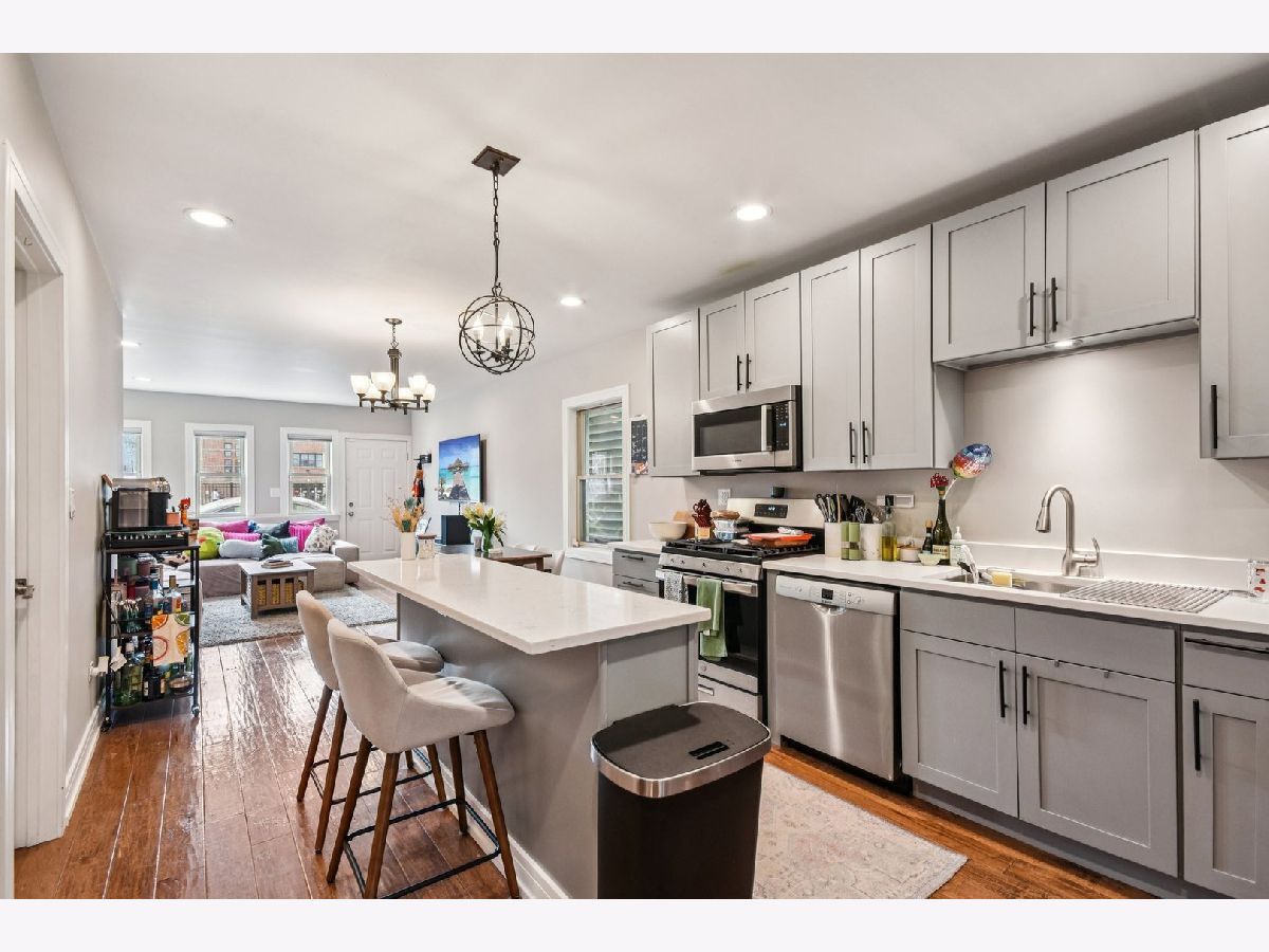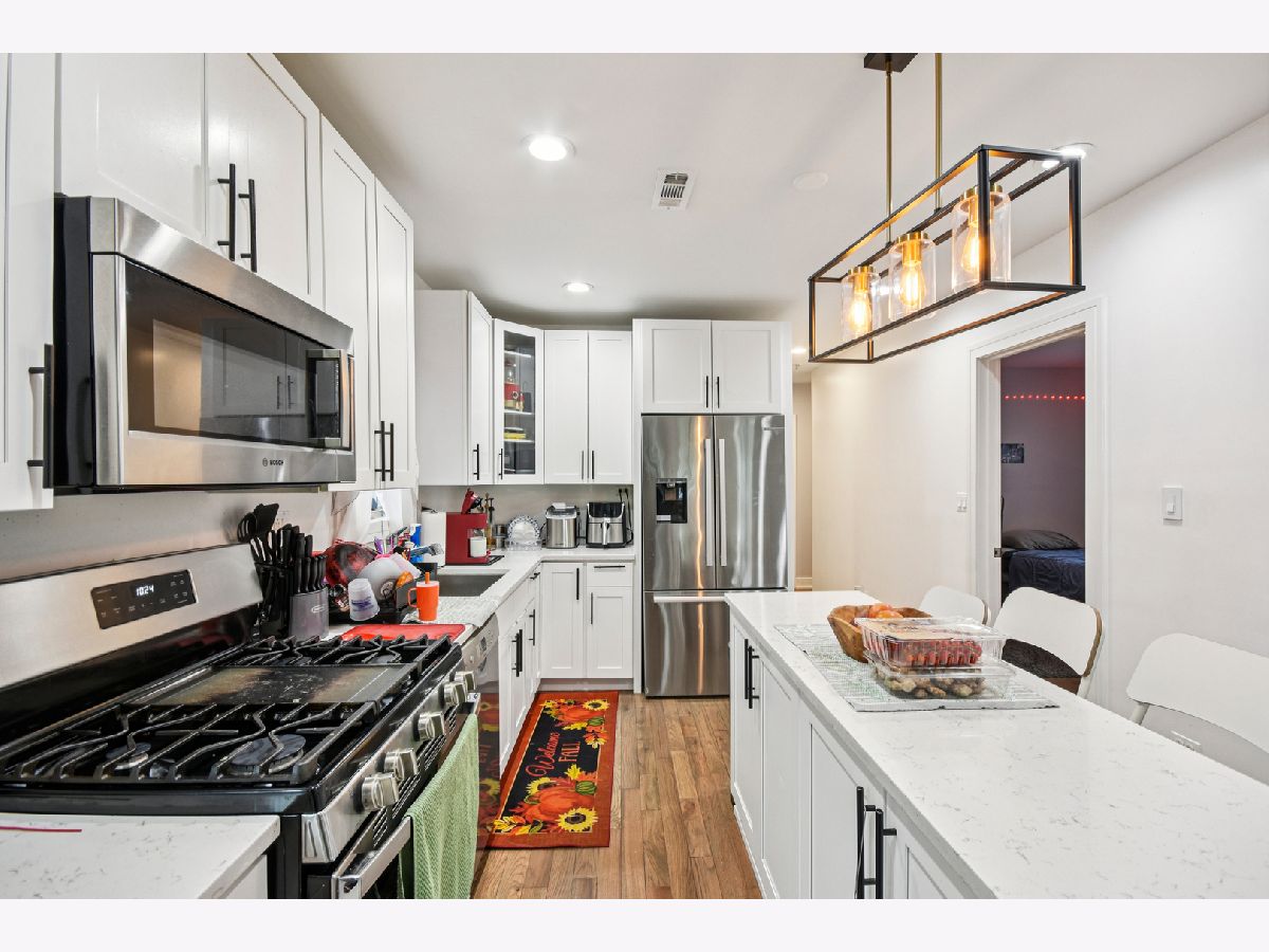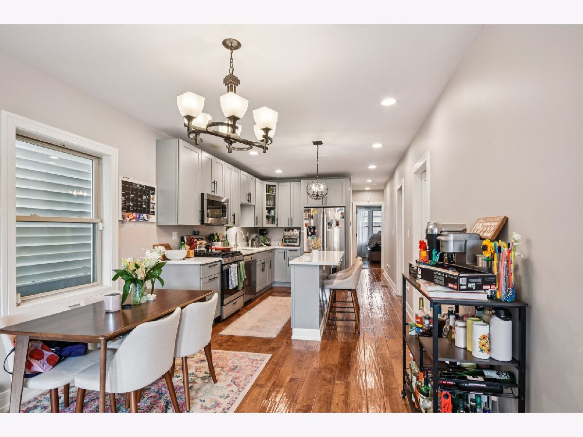 This exceptional two-unit property in the heart of Logan Square represents a Perfect owner-occupancy with rental or premier investment opportunity with both units currently leased and producing income. Entirely rehabbed from the studs in 2019, the residence showcases high-end craftsmanship and gleaming hardwood flooring throughout. Unit 1 offers a spacious layout with three bedrooms and two bathrooms, while Unit 2 is an expansive residence with four bedrooms and three bathrooms. Duplex up with a primary suite on the second level. A standout highlight of the second unit is the stunning third-floor primary suite, which encompasses the entire top level and includes a custom-built walk-in closet installed in 2022. The exterior provides a private fenced yard and a detached two-car garage, offering a rare combination of modern luxury and functional urban living just steps from The 606 trail and the vibrant dining scene of Logan Square.